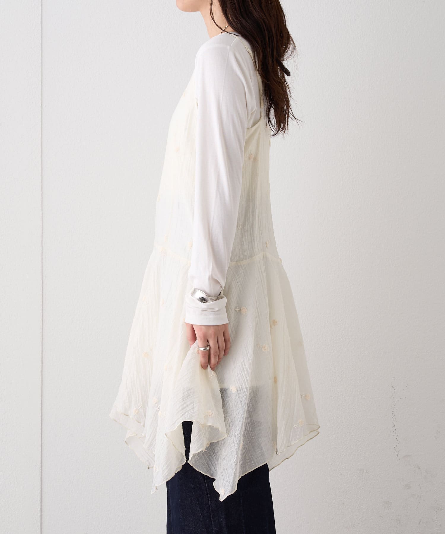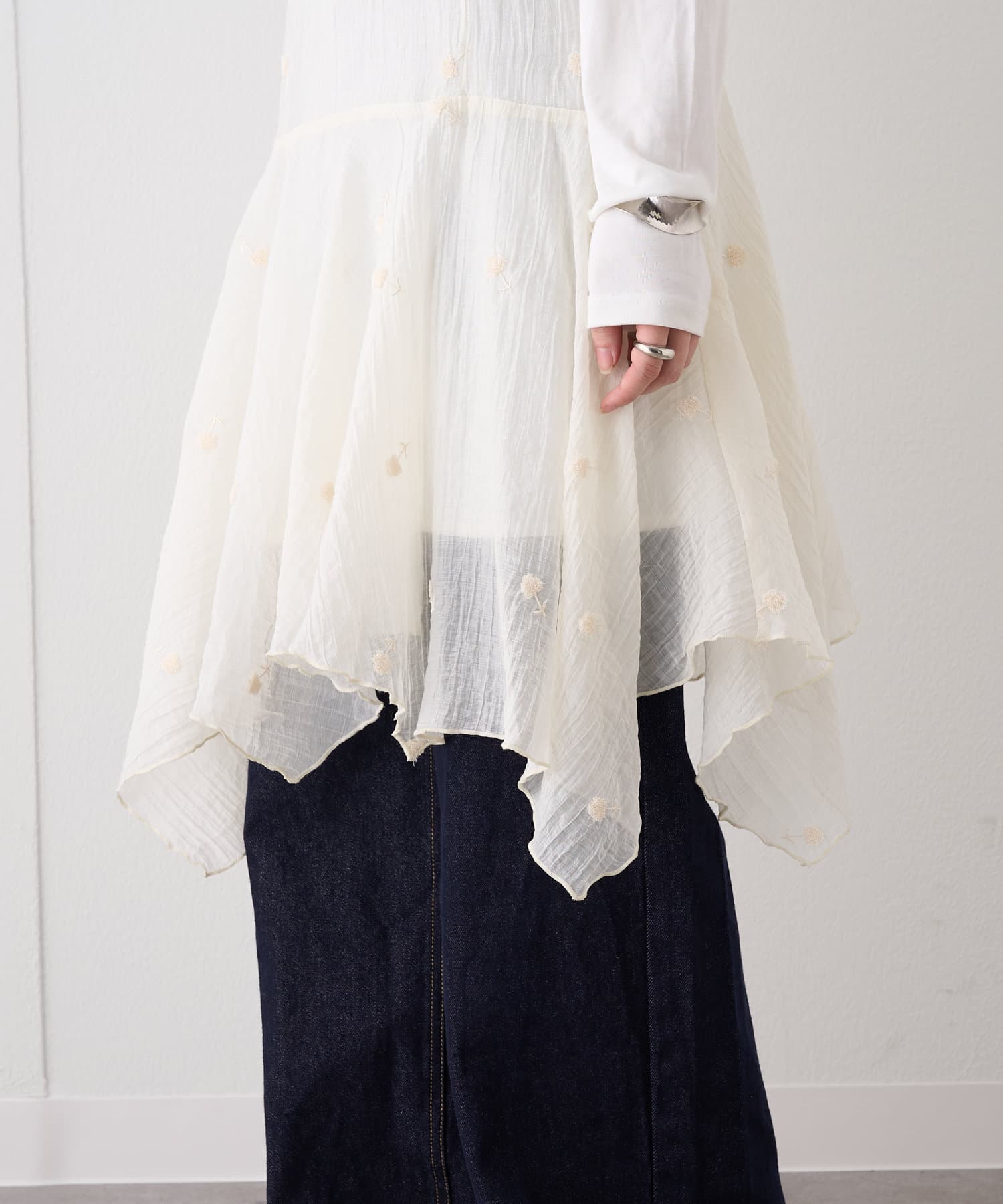 ・歩くたびに揺れる裾のデザインと透け感がより女の子らしさを出してくれる1枚です◎