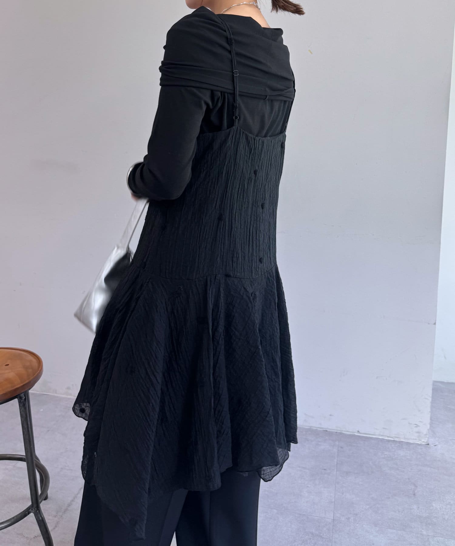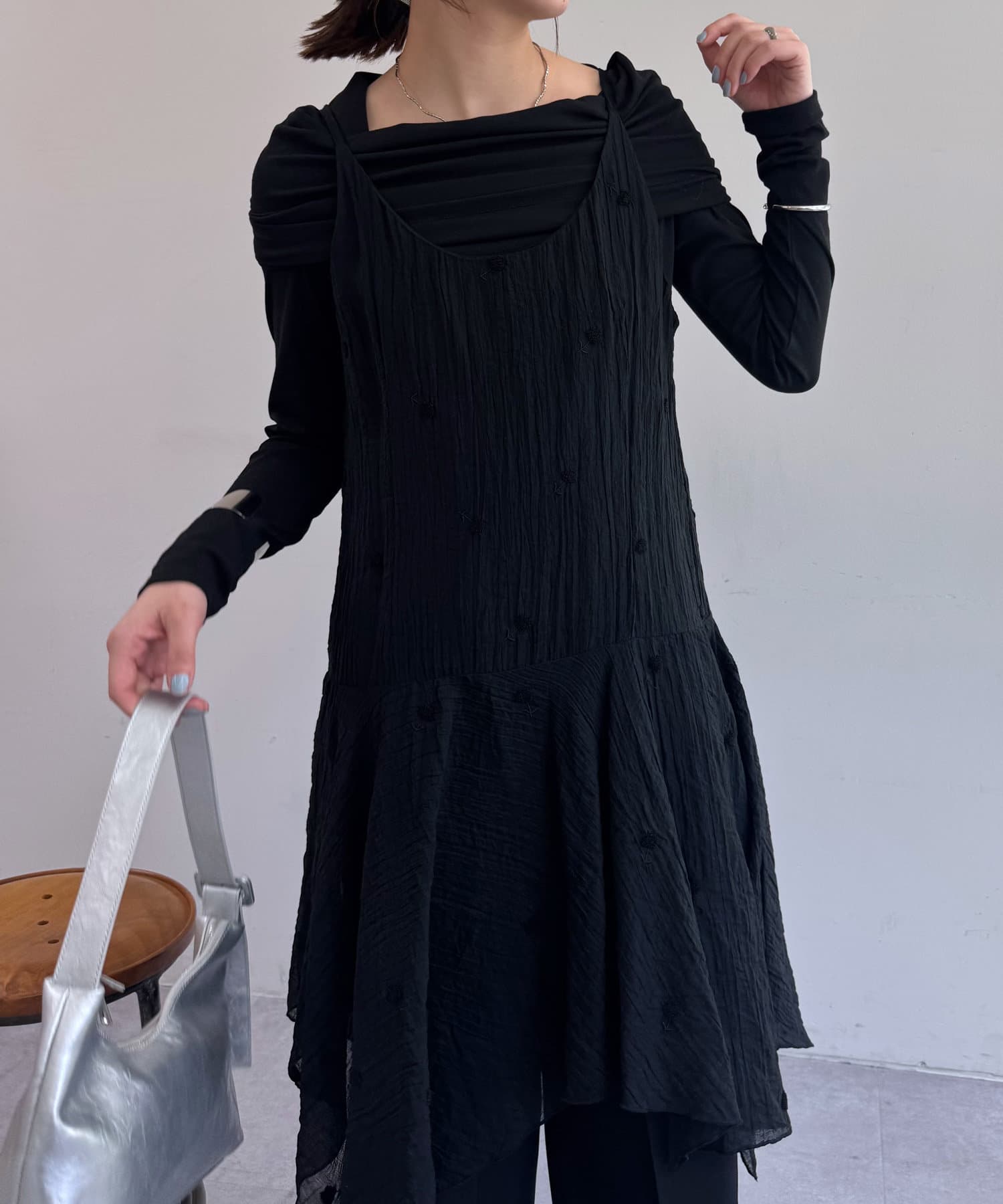 ・肩紐部分で丈感の調節が可能なのが嬉しいポイント◎