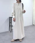ヘンリーネックとスリットで女性らしい印象のワンピースが登場!