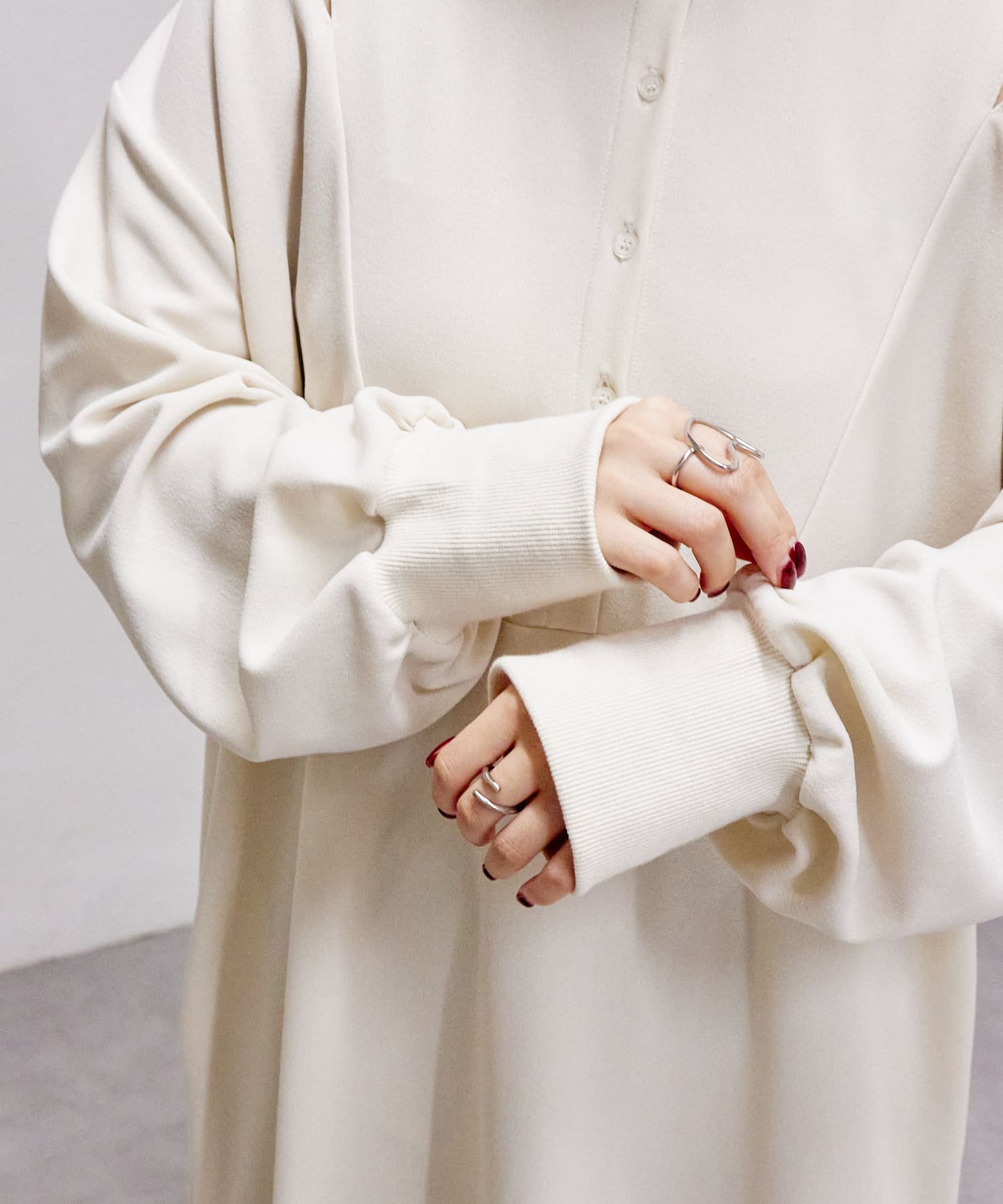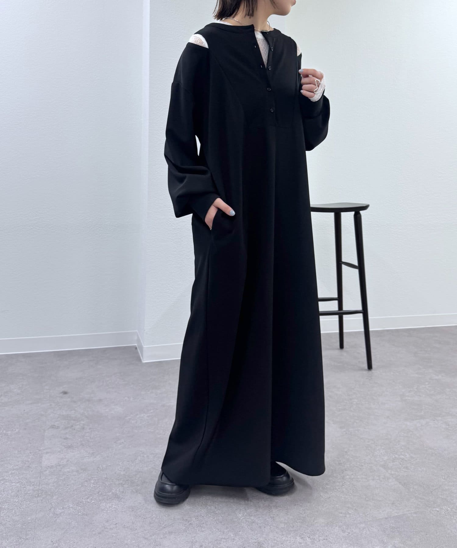ヘンリーネックとスリットで女性らしい印象のワンピースが登場!