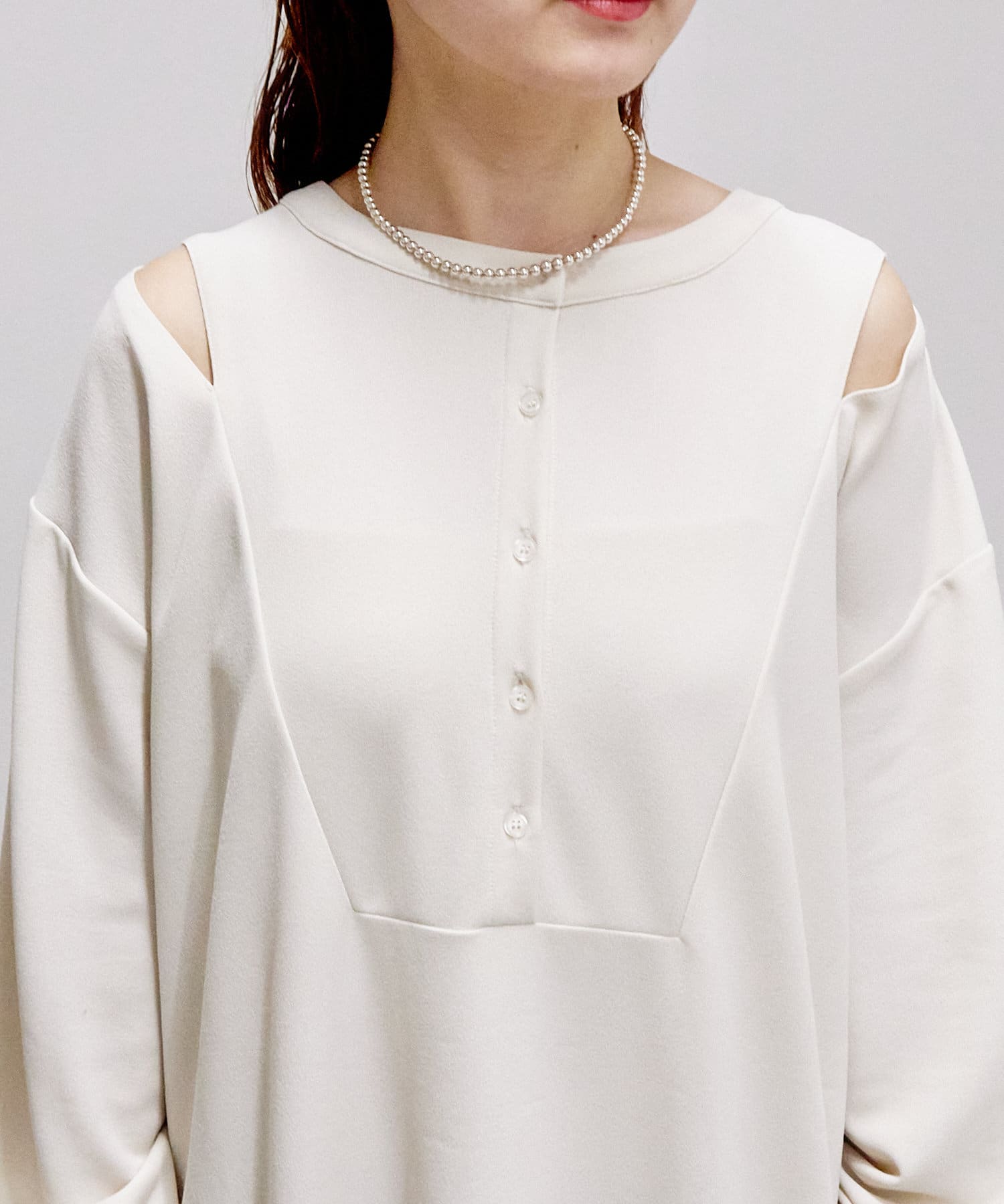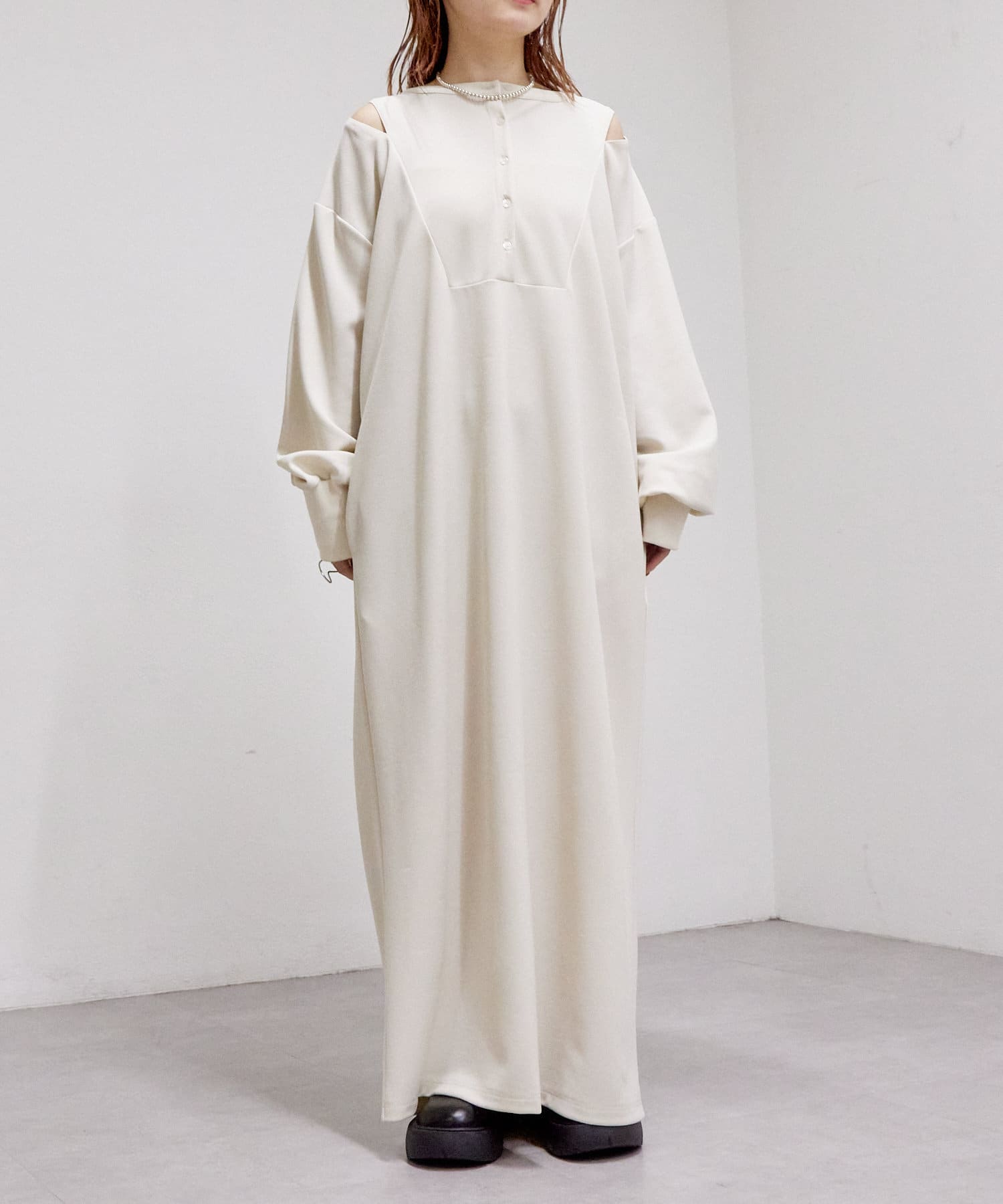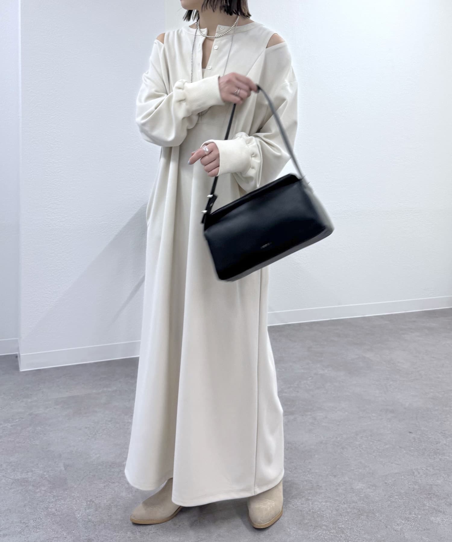 ・ショルダー部分のスリットで抜け感のあるワンピース。