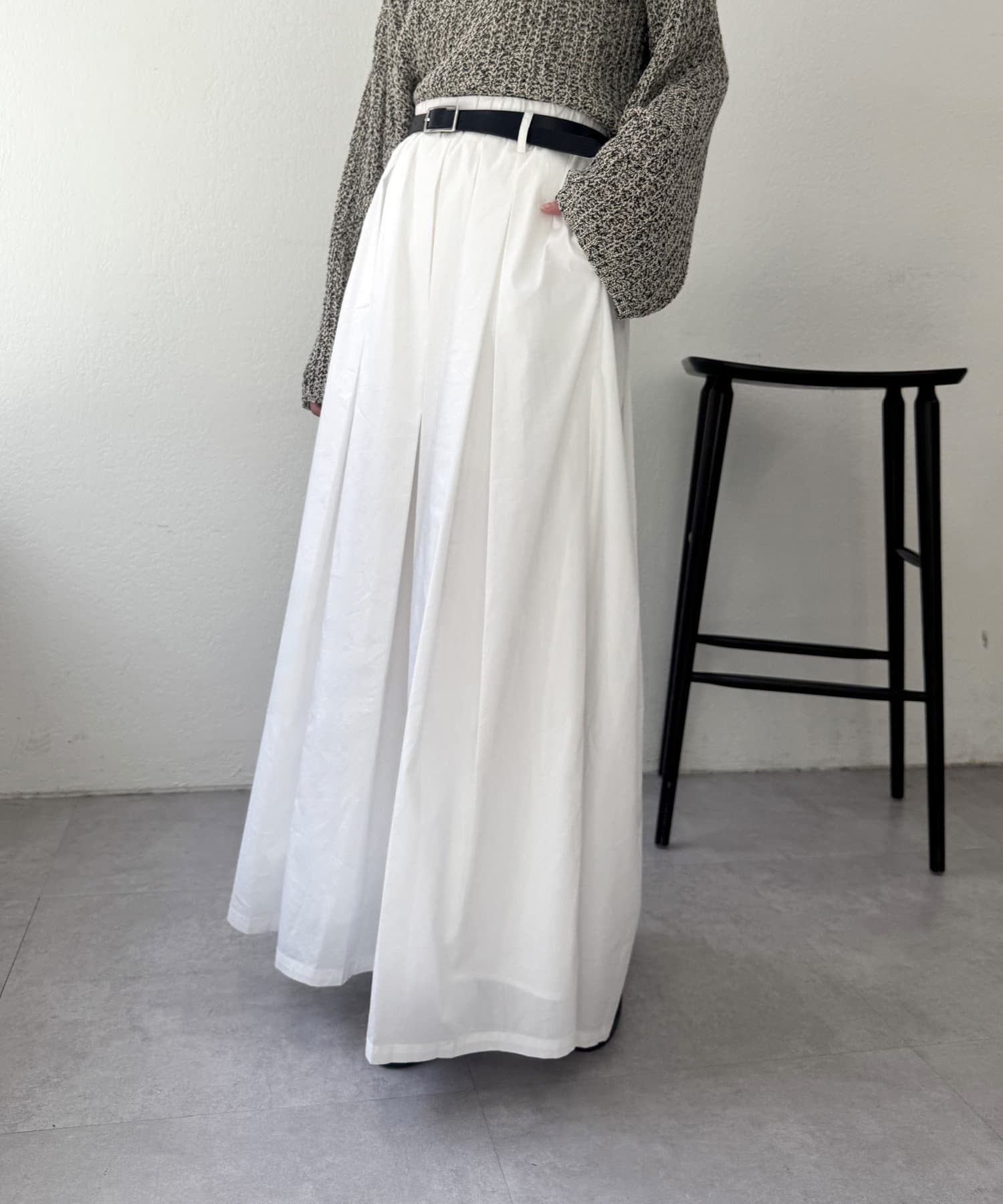 ・ゆったりとしたボリューム感のあるシルエットが特徴のベルト付きスカート。