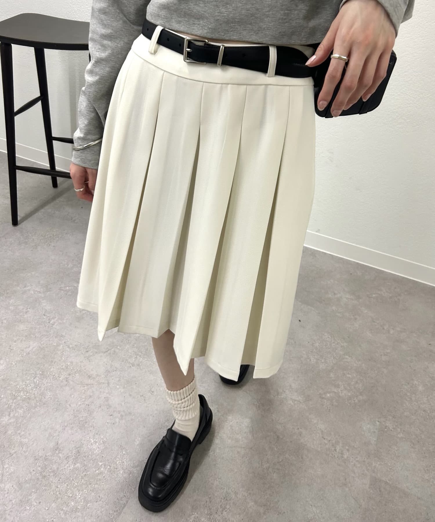 ・膝までのミドル丈が感度高めのプリーツスカートは、シンプルなデザインで着回し力抜群◎