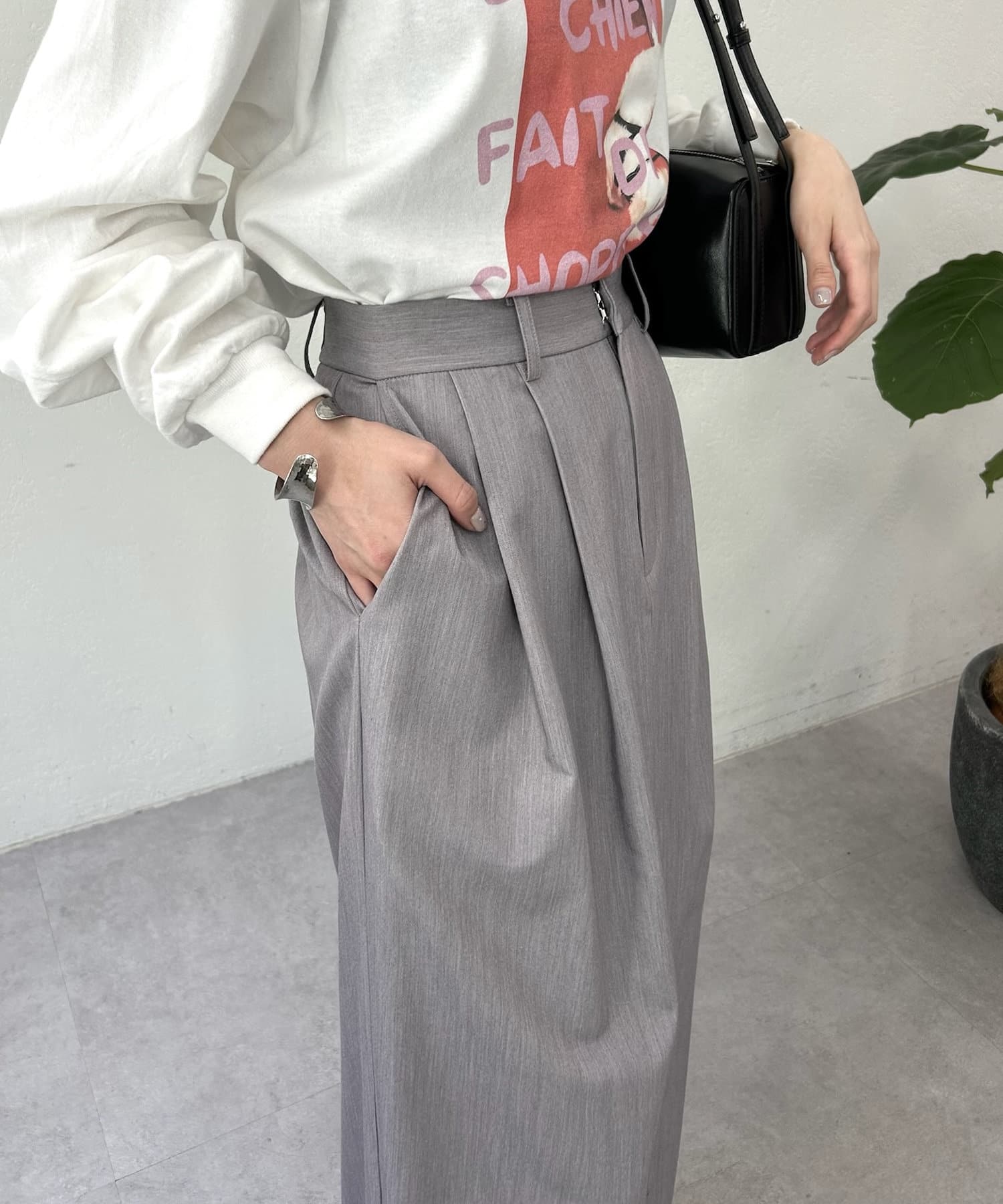 ウエストはタック入りですっきりとしたシルエットで、脚長効果も期待できます。