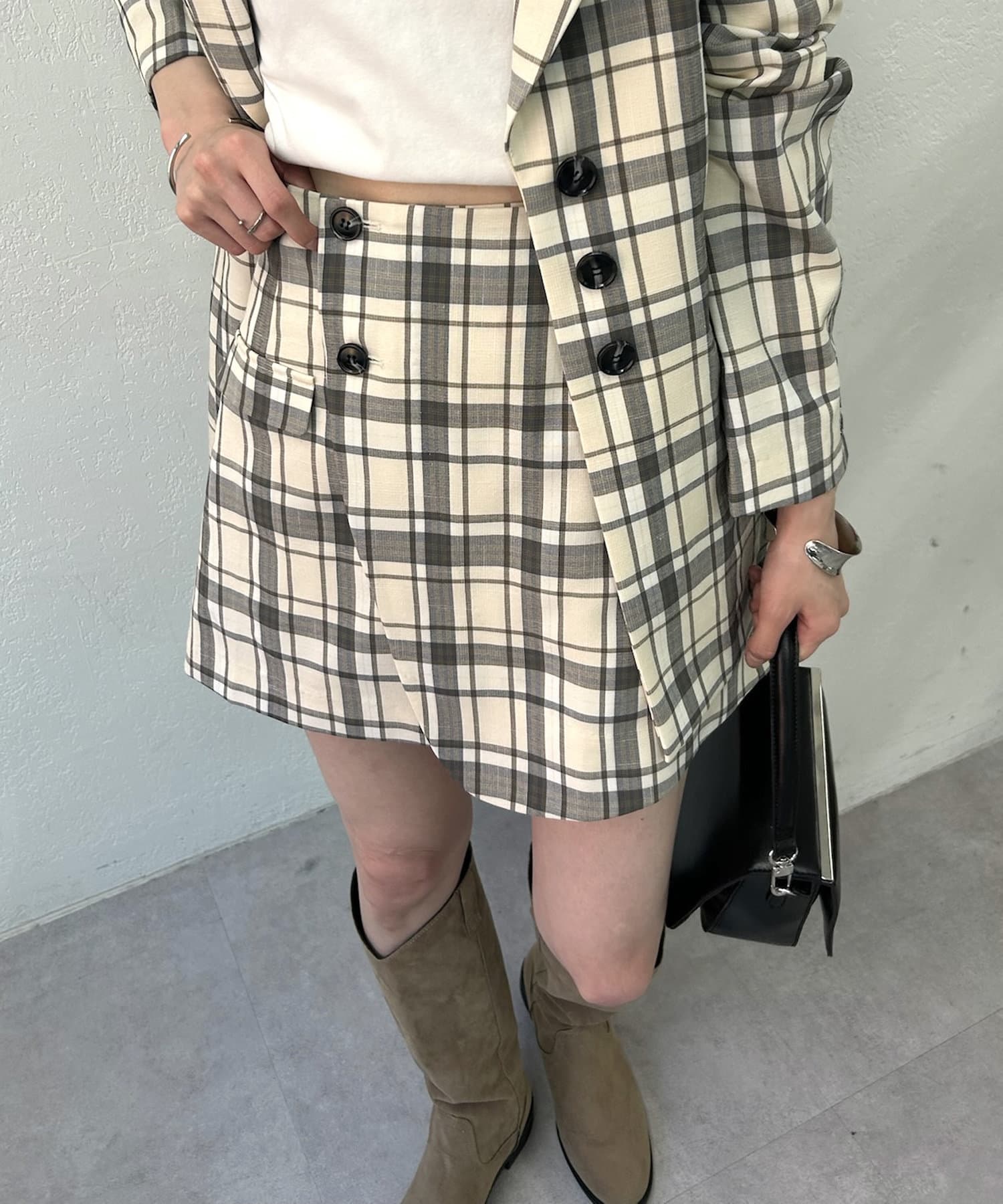 フェイクポケットとラップデザインでこなれ感たっぷりなミニスカート。