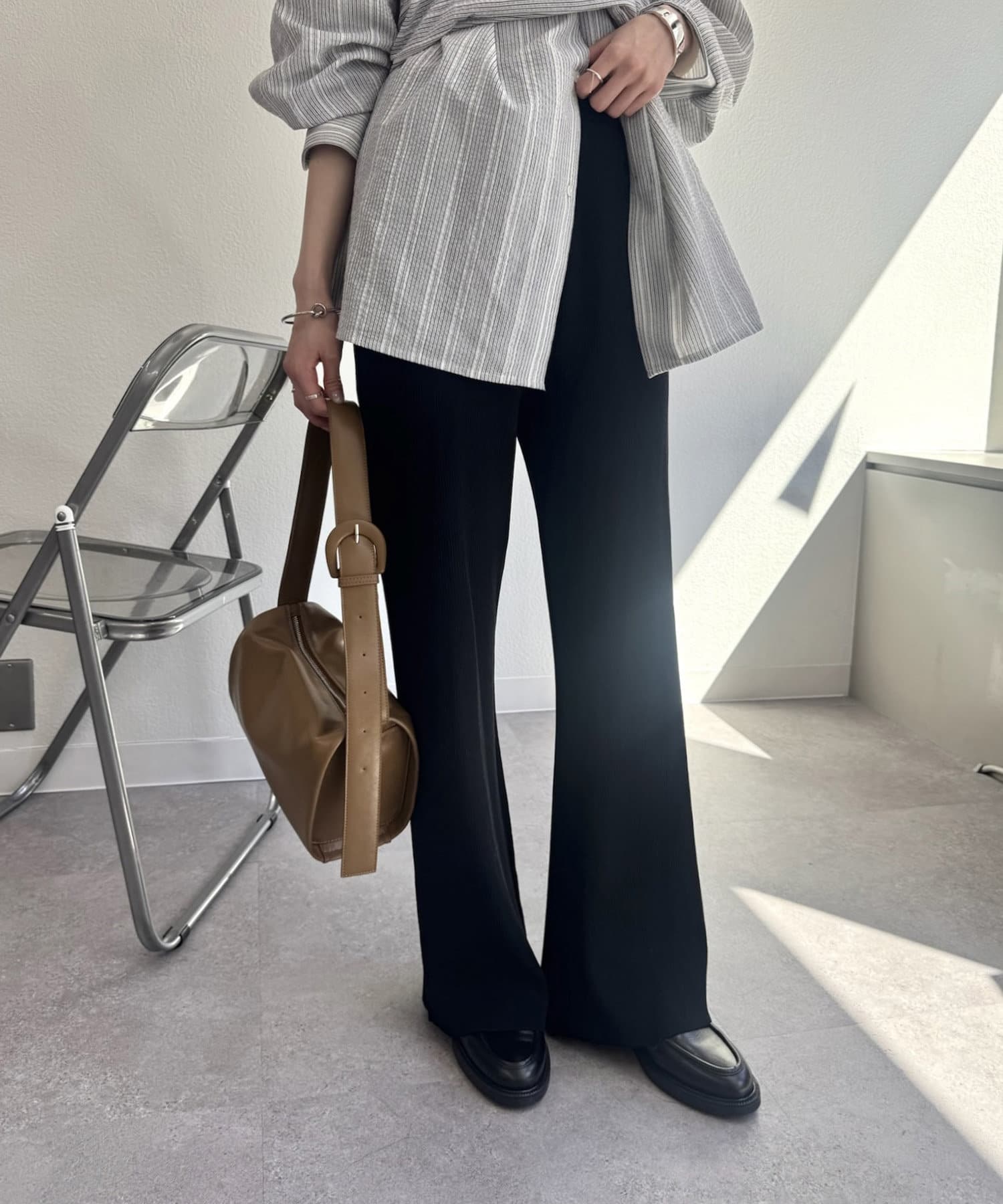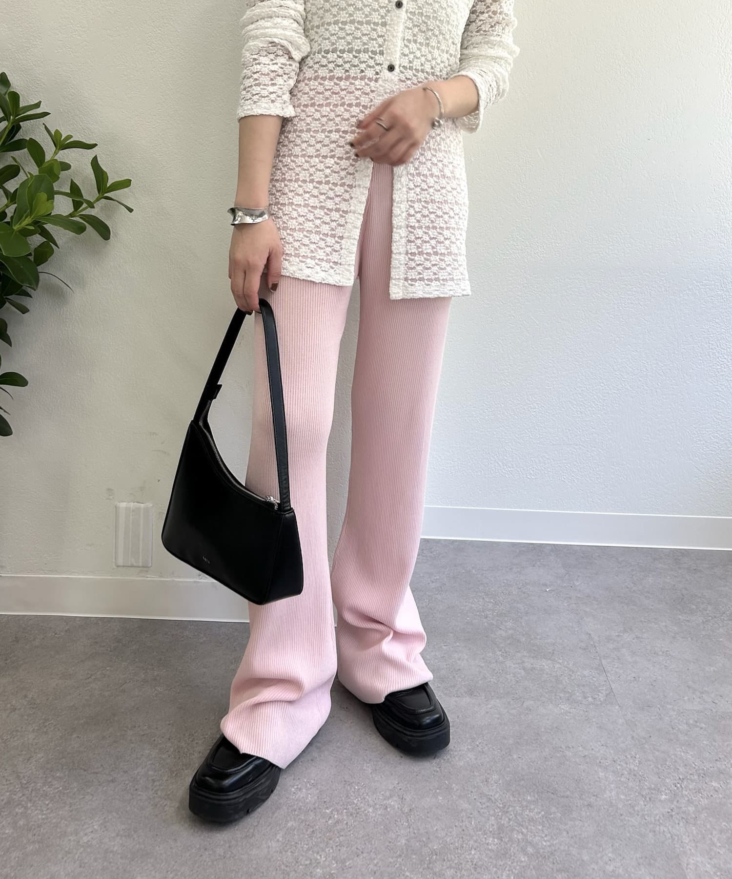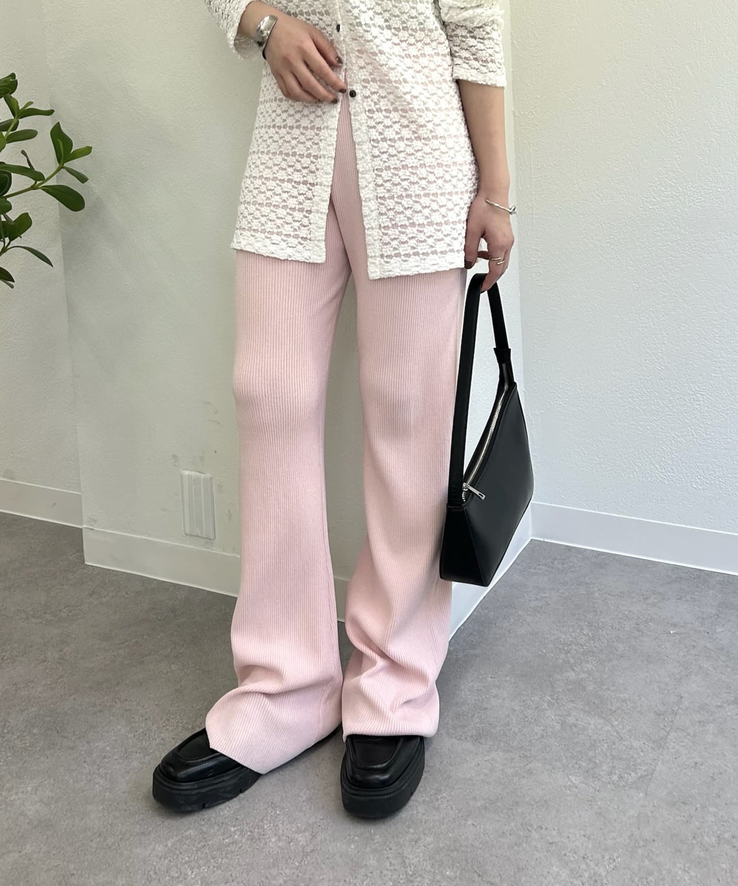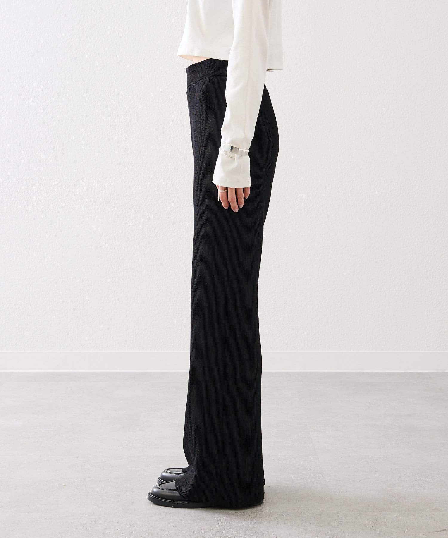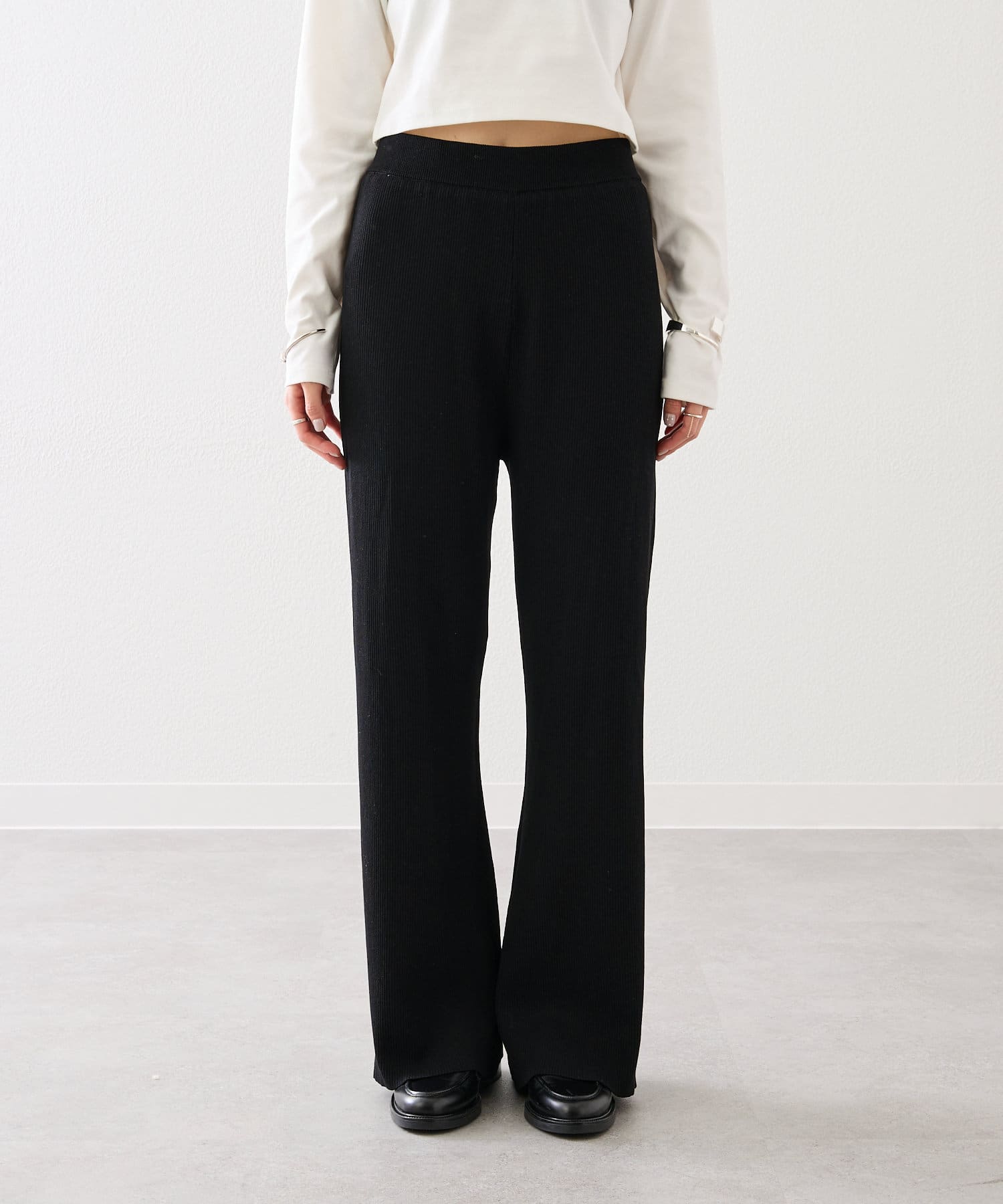 ・縦リブのシンプルなデザインが特徴的なニットパンツ。