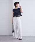 シアー素材のトップスや、クロップド丈のトップスと合わせて、トレンド感のあるスタイルに!