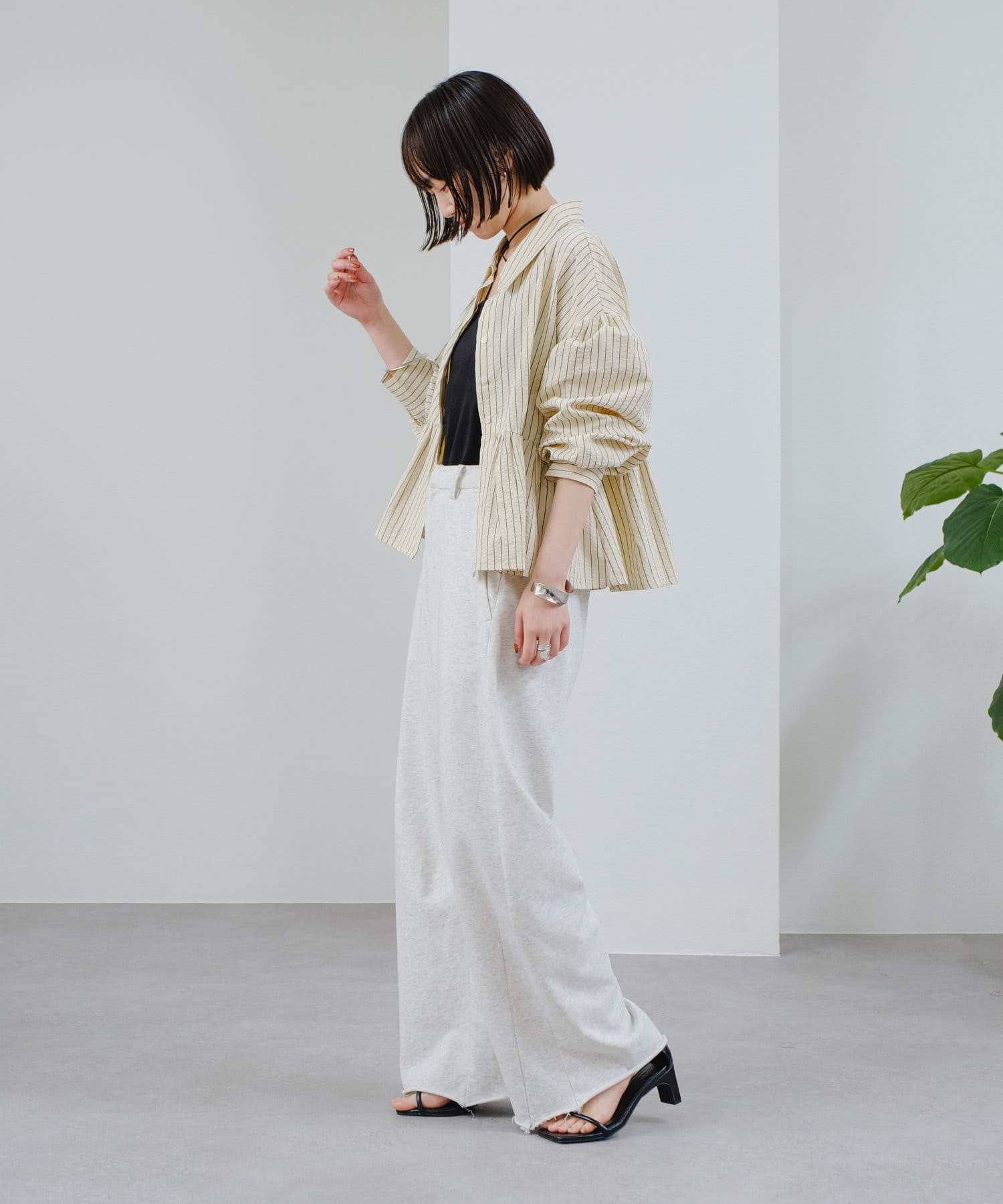 裾は自然なラフ感を演出する切りっぱなしデザインで、カジュアルスタイルにも綺麗めスタイルにも合わせていただけます!