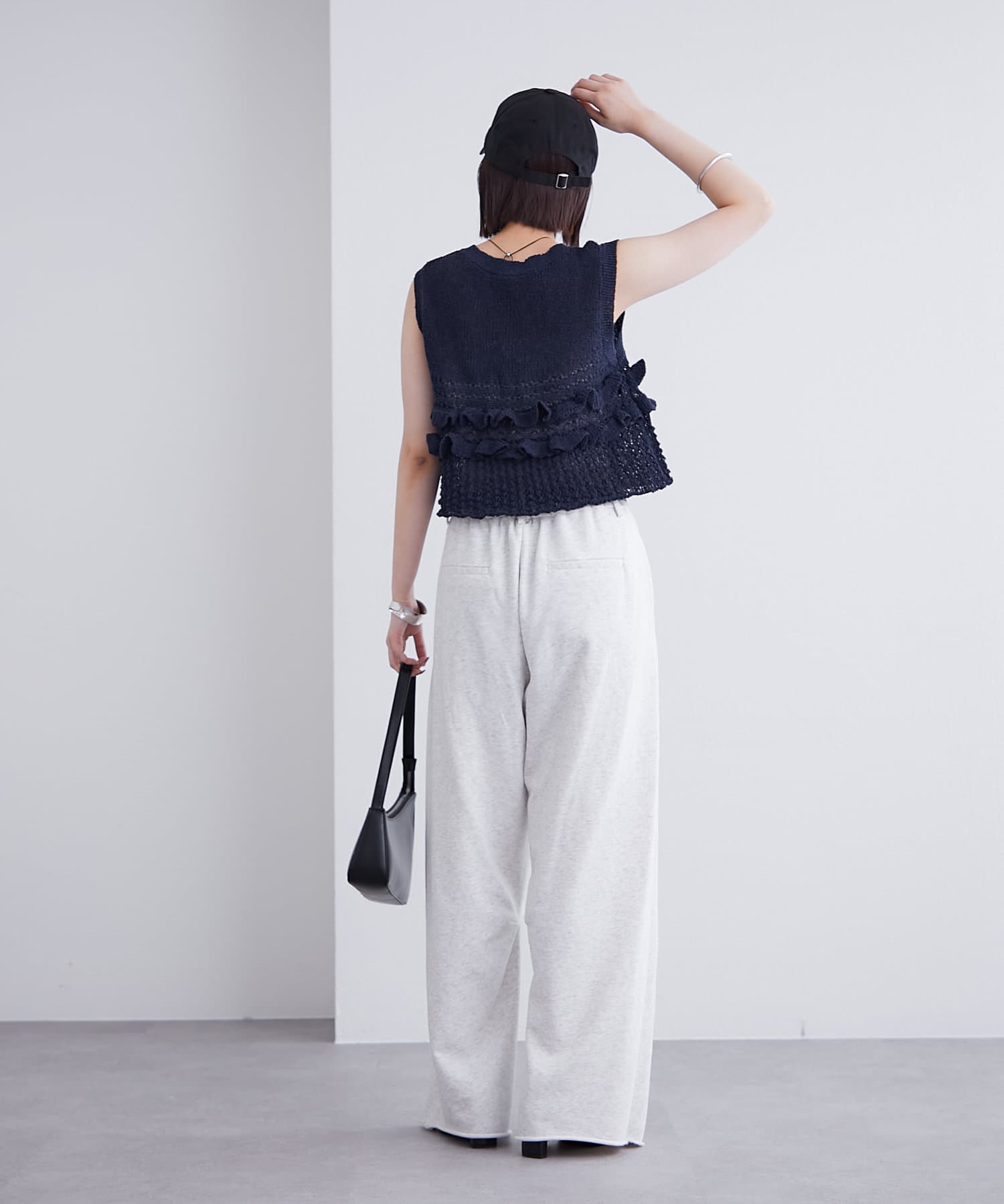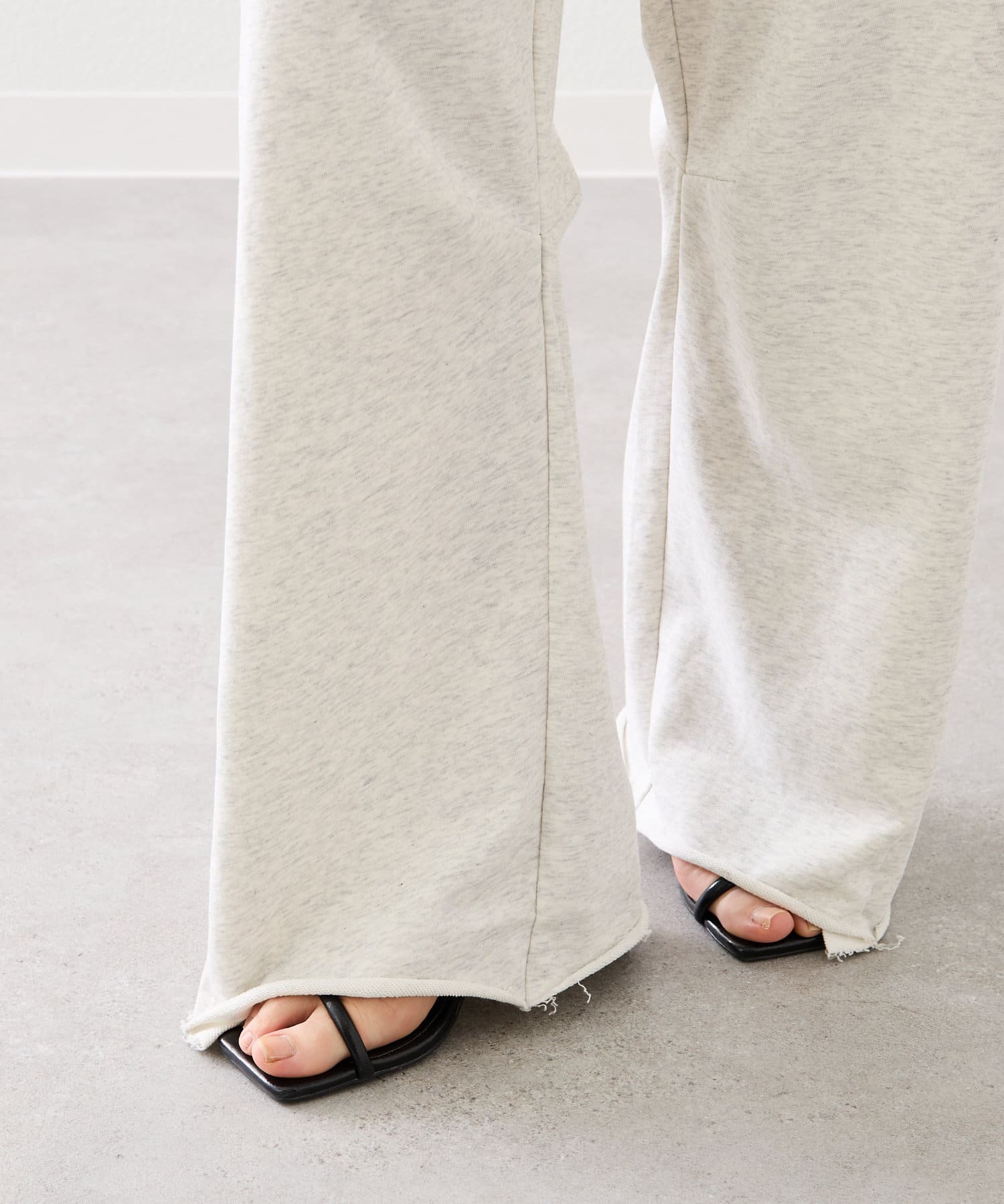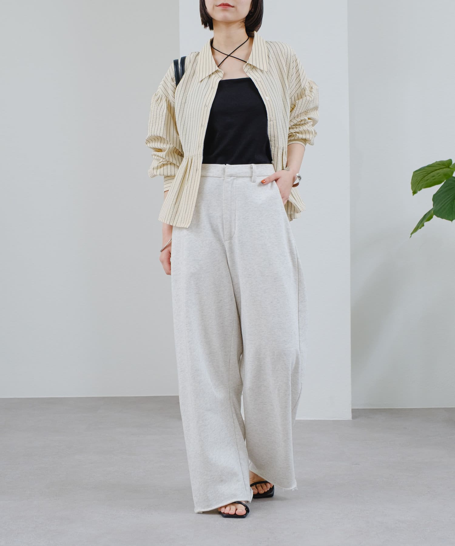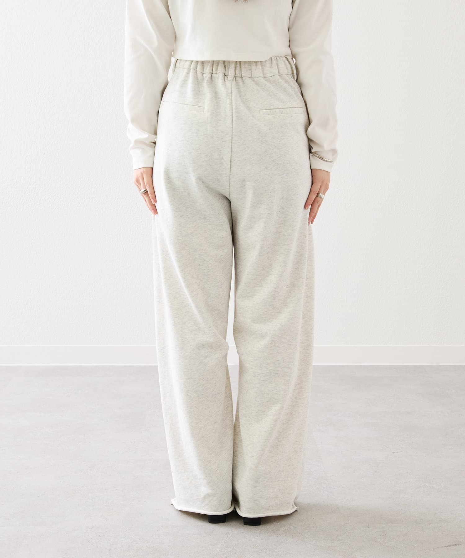 ウエスト後ろがゴム仕様になっており、スウェット生地でストレスフリーな着心地です◎