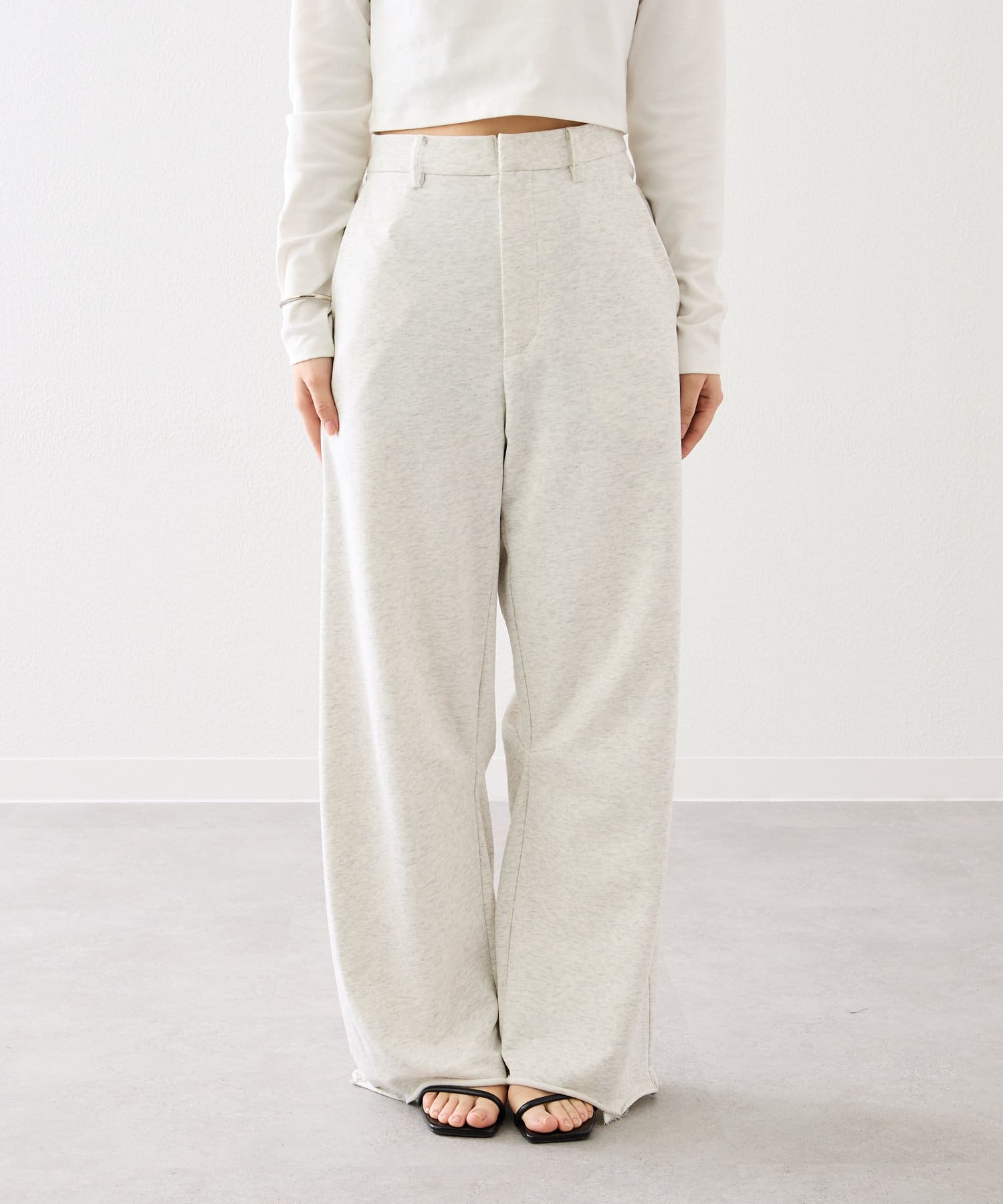 スウェット生地ながらウエスト部分にベルトループが付いているので、インスタイルでもアウトスタイルでもすっきり着ていただけます!