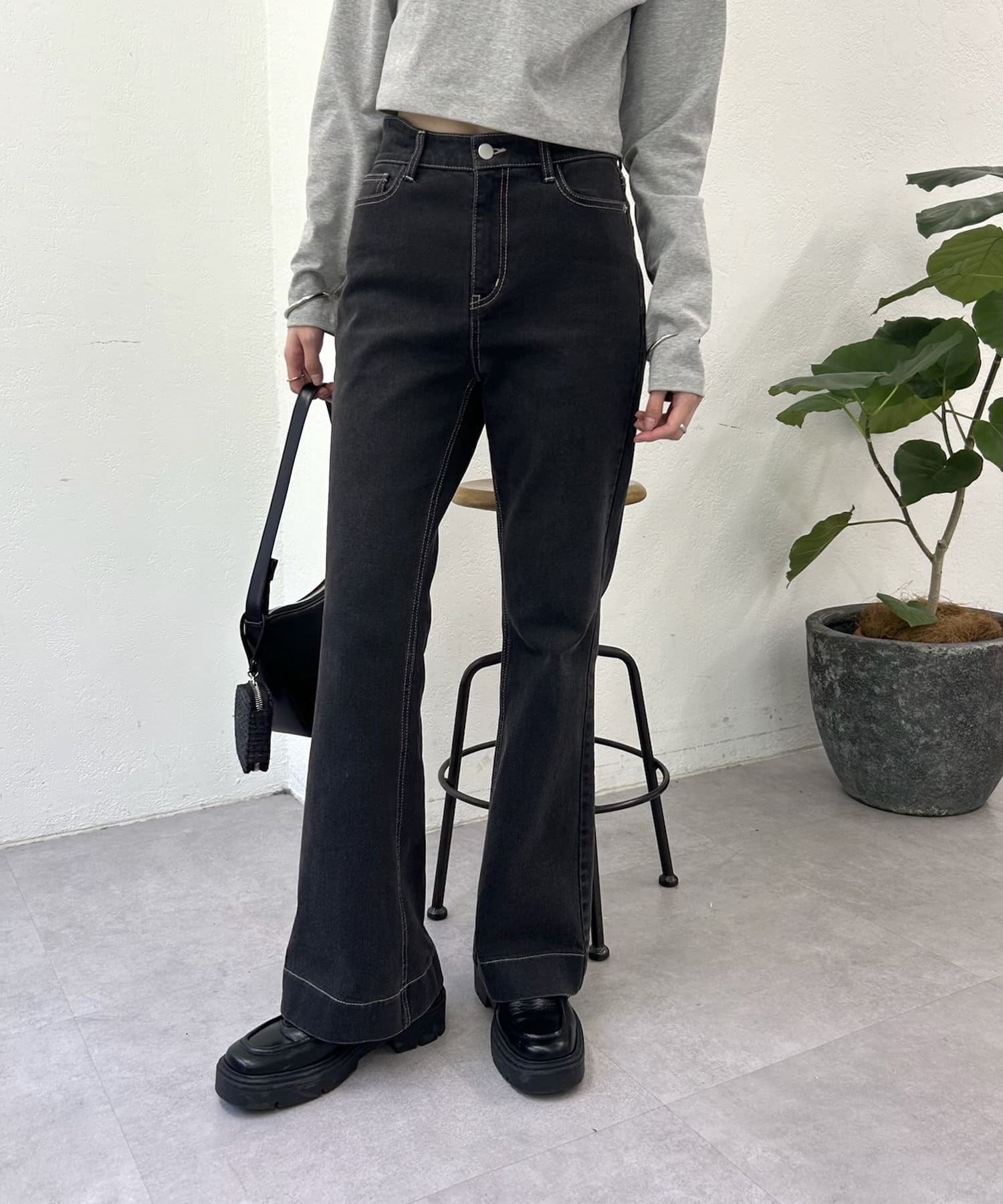 ・フレアシルエットがトレンド感あるスタイリングに仕上げてくれるデニム。