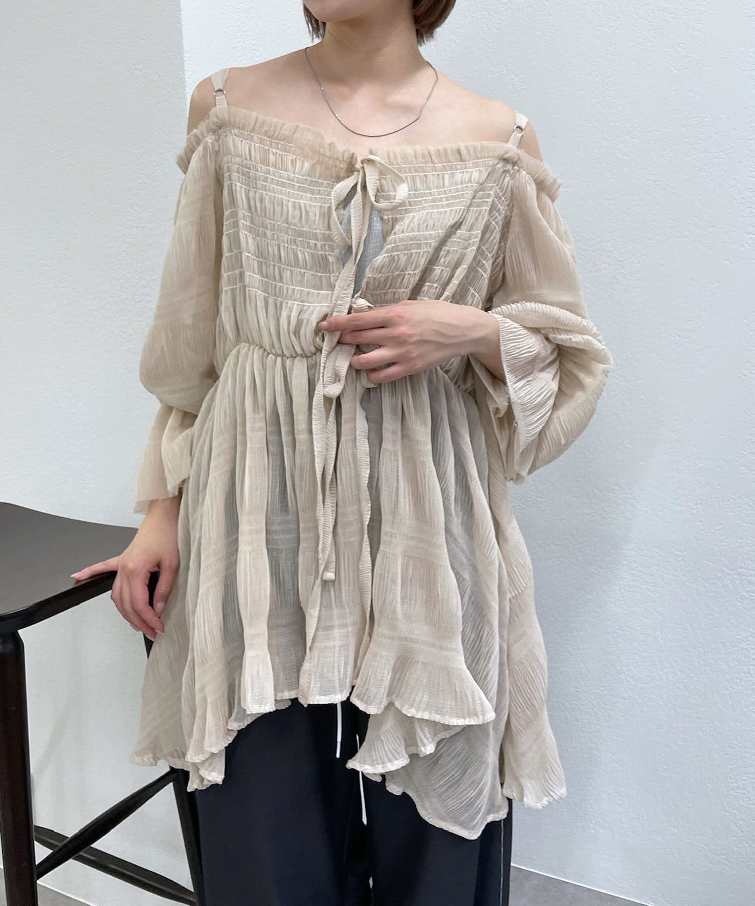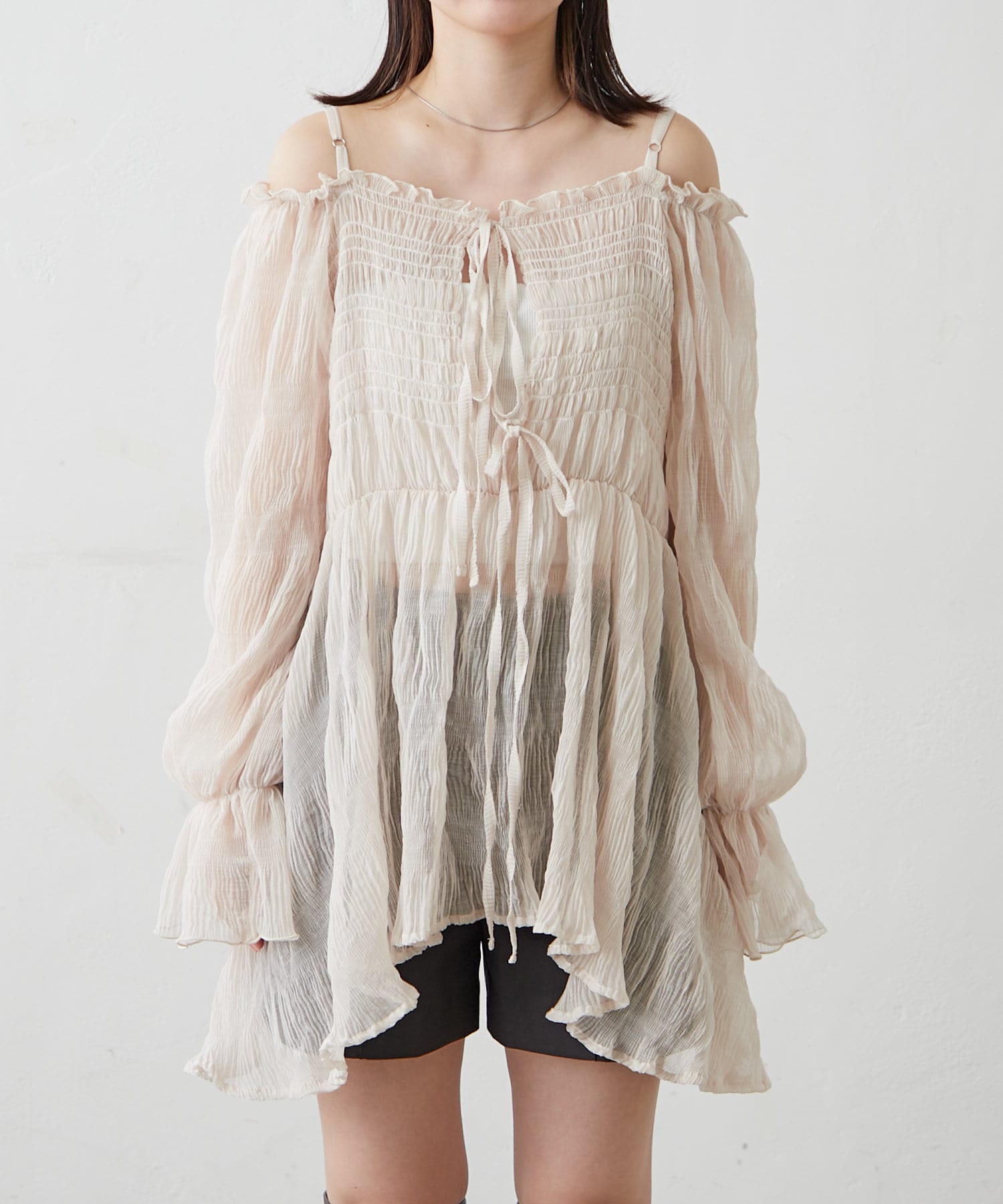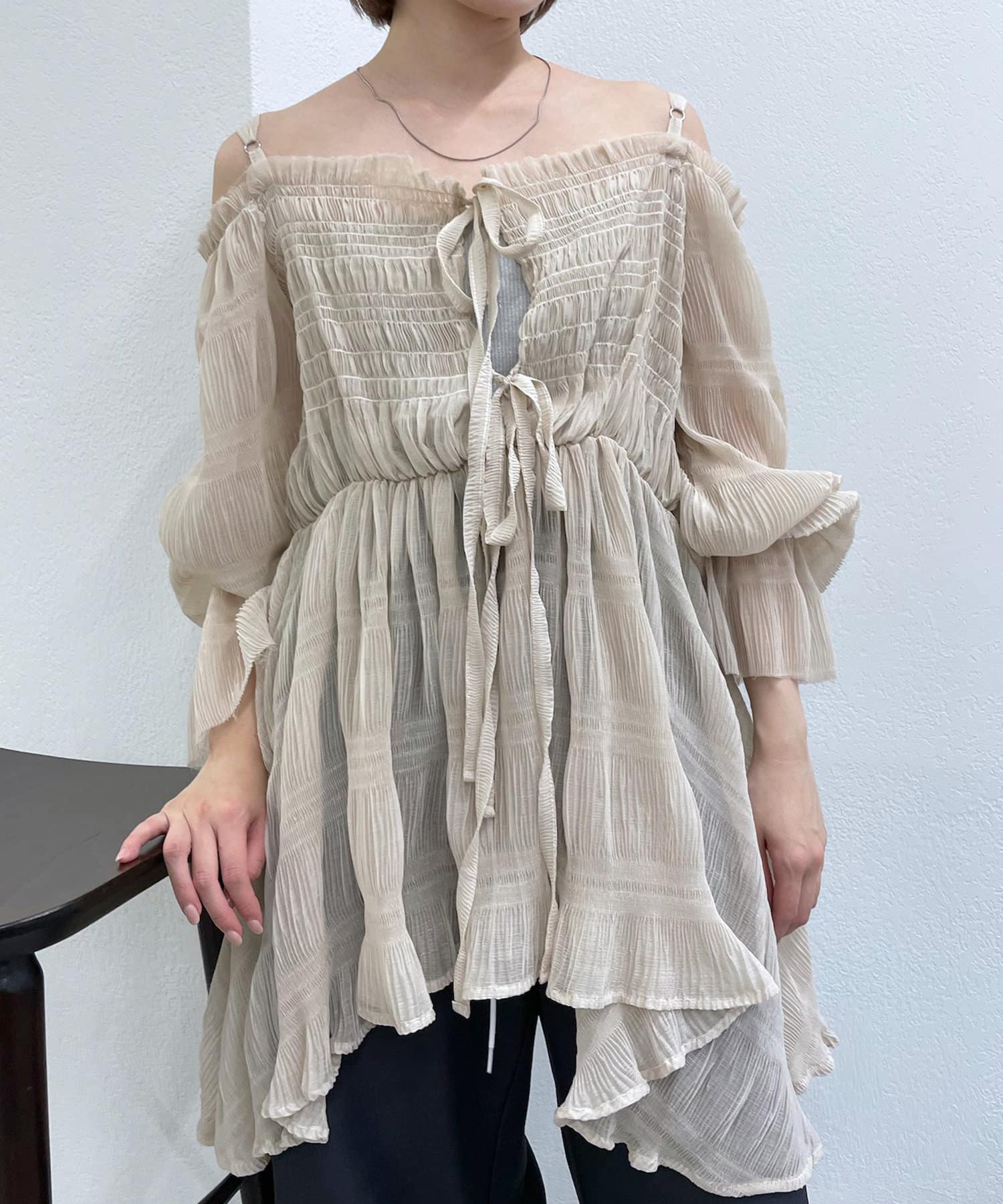 • mystic(ミスティック) [mline]シアー楊柳ティアードブラウス