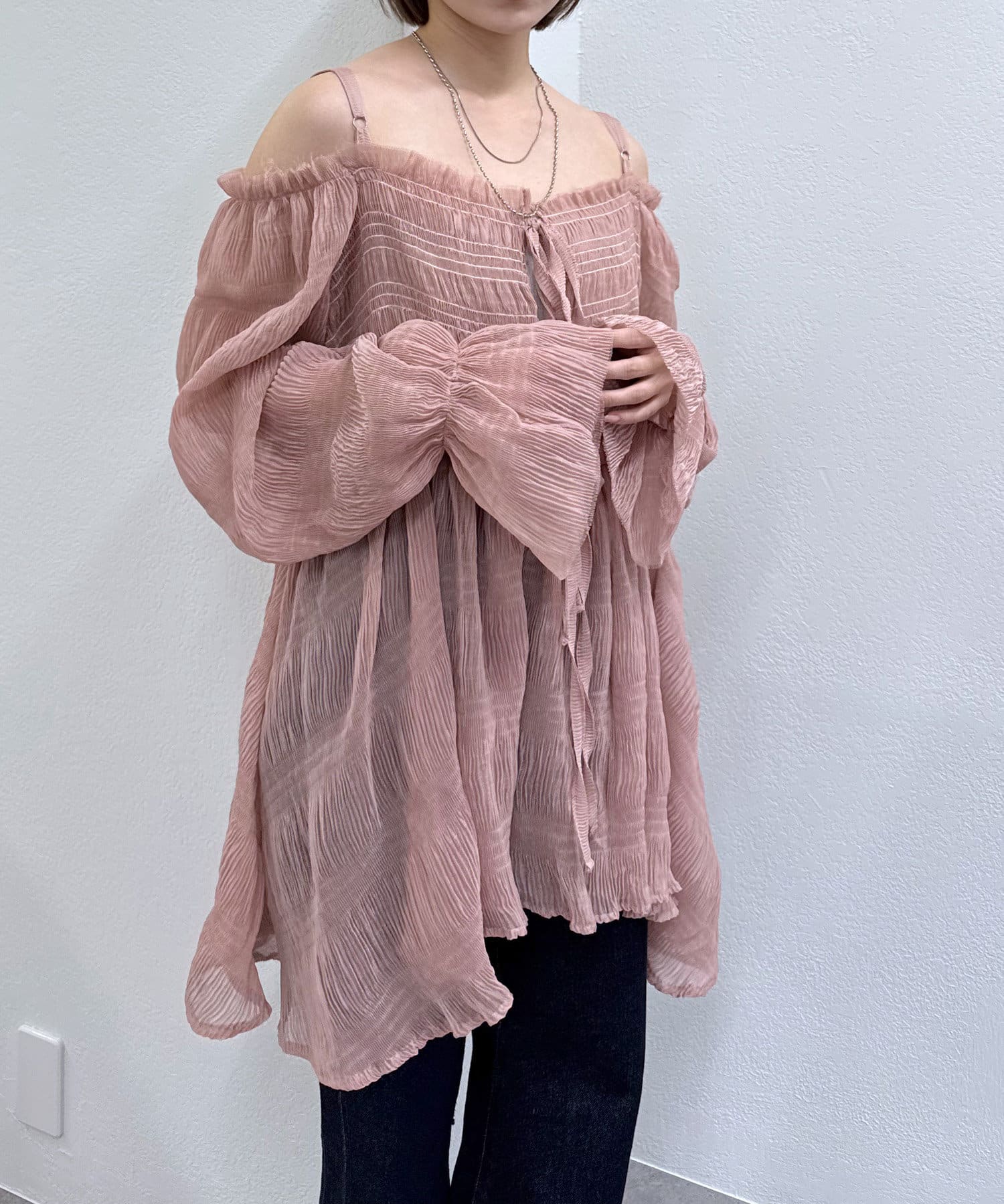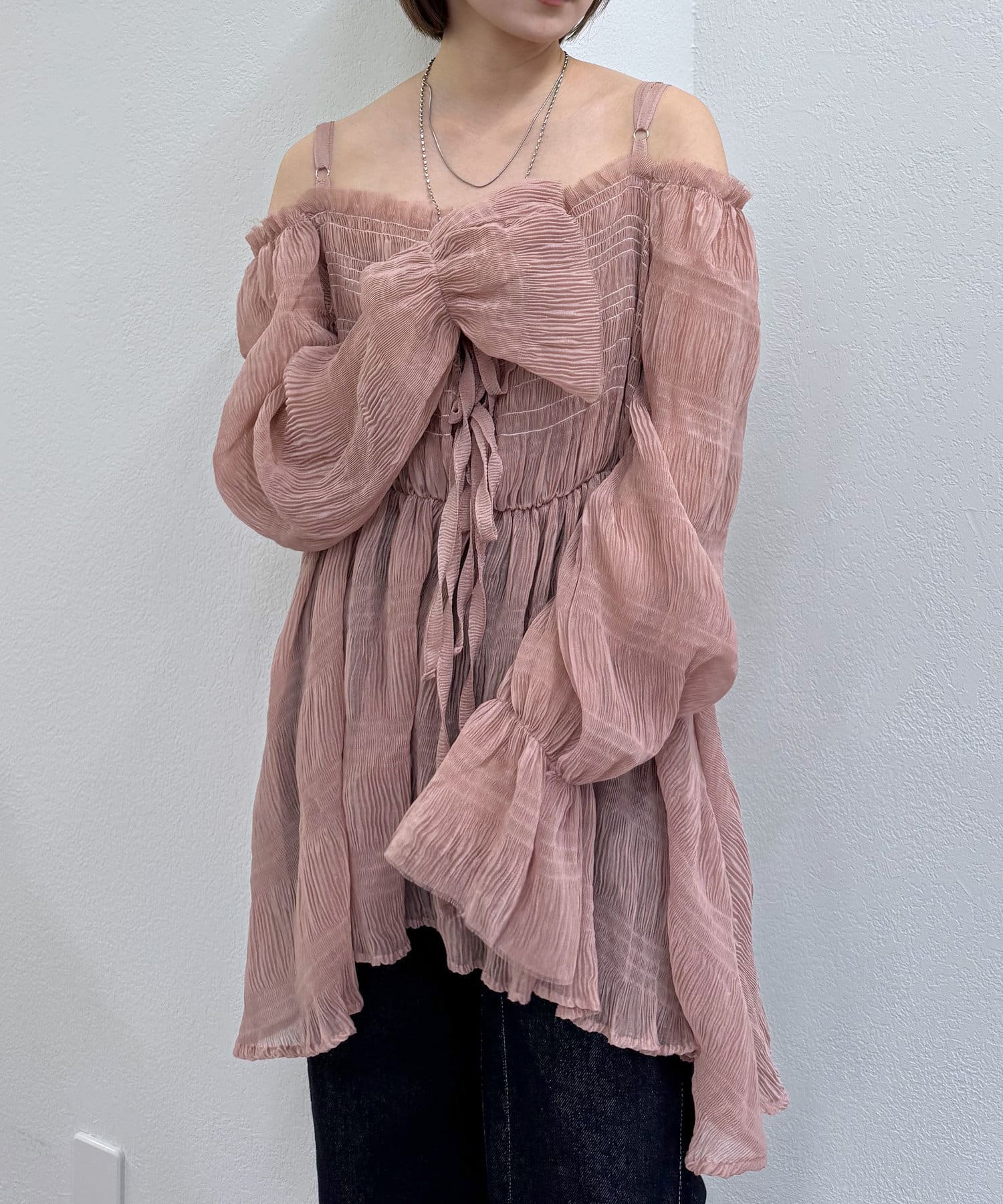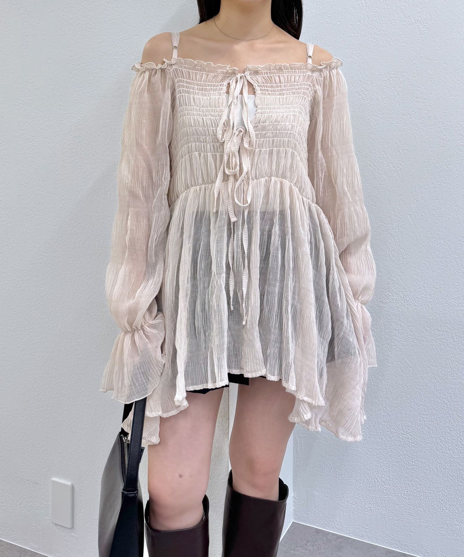 • mystic(ミスティック) [mline]シアー楊柳ティアードブラウス
