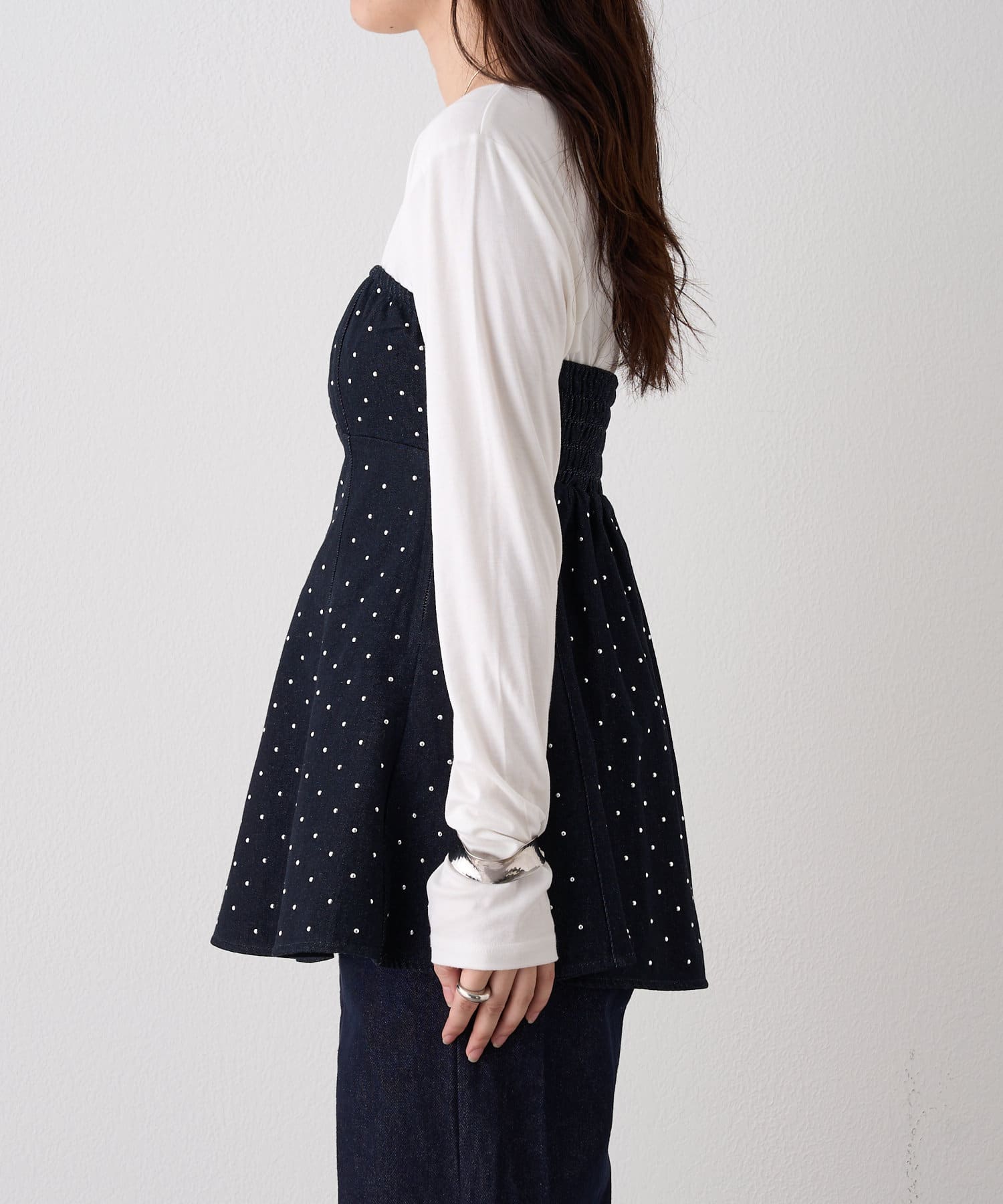 ・全体に散りばめられたスタッズが目を惹くビスチェ。