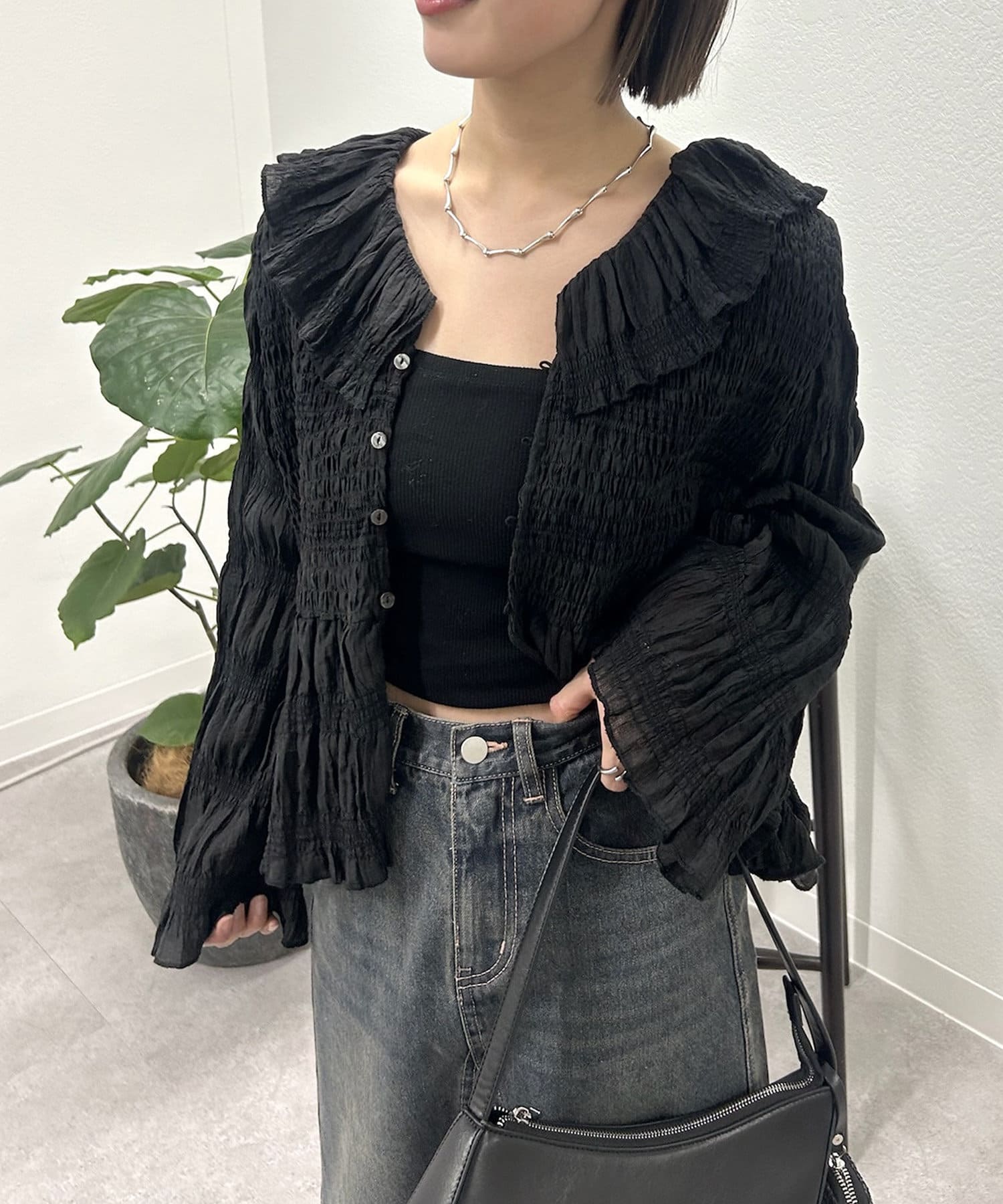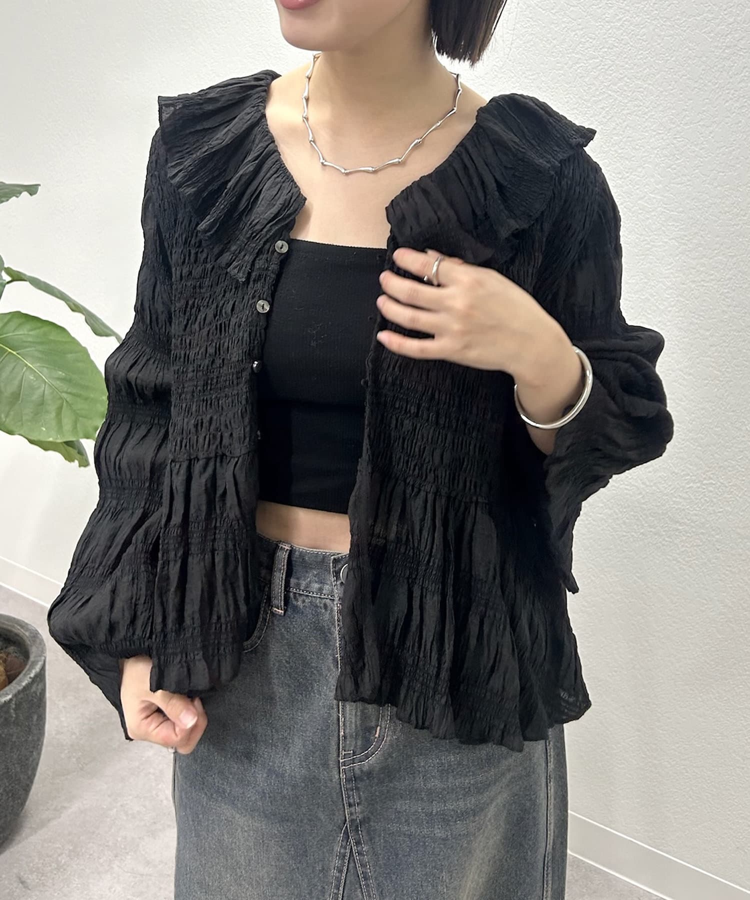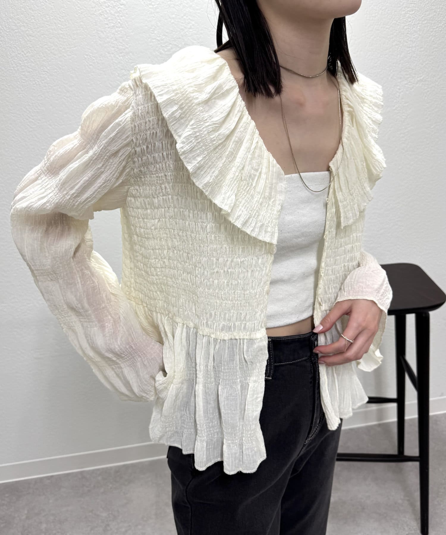 【1着で着映え◎/羽織りとしても◎】シャーリングフリルブラウス