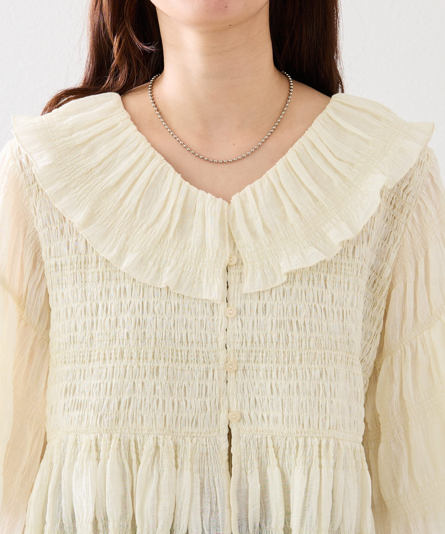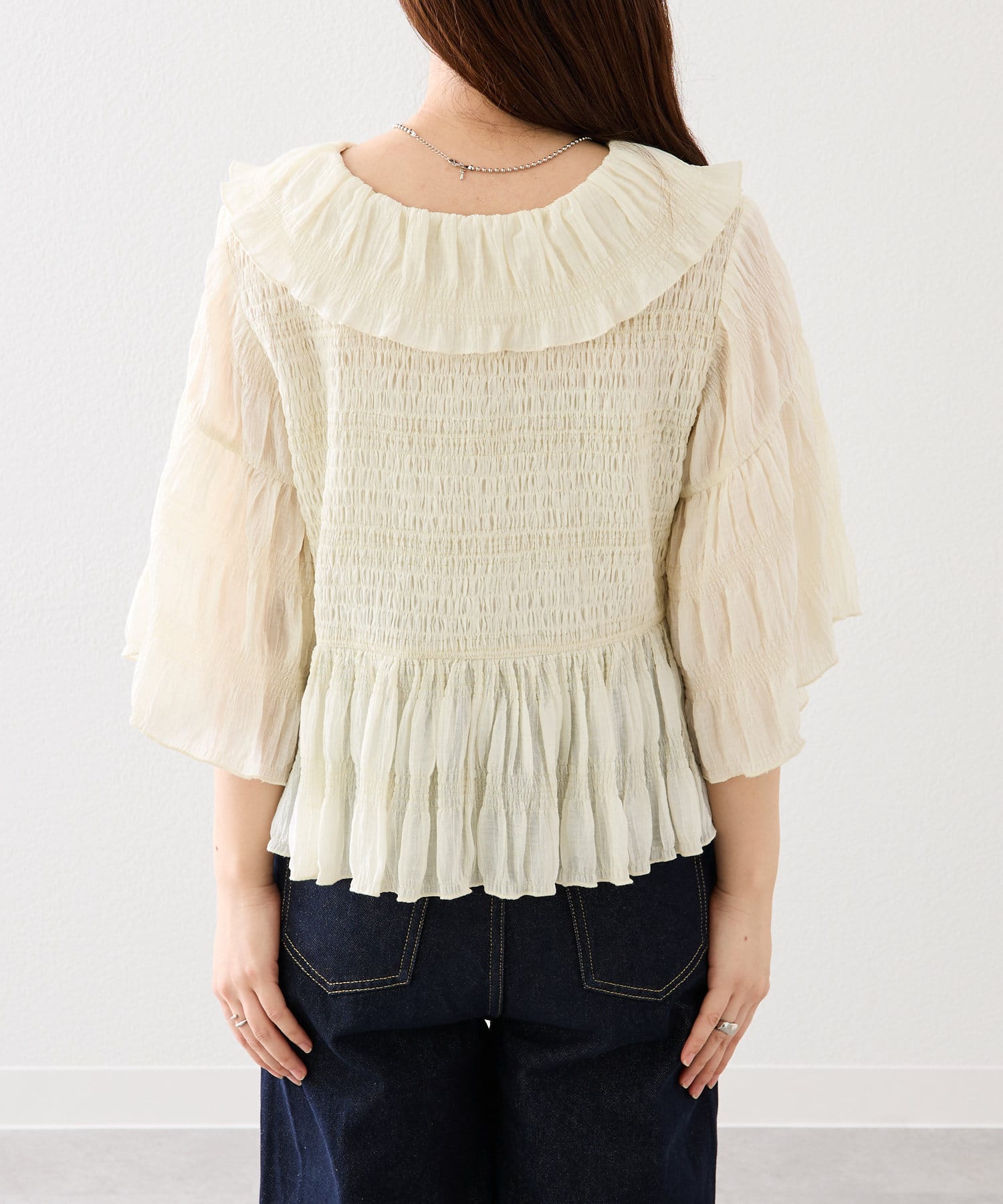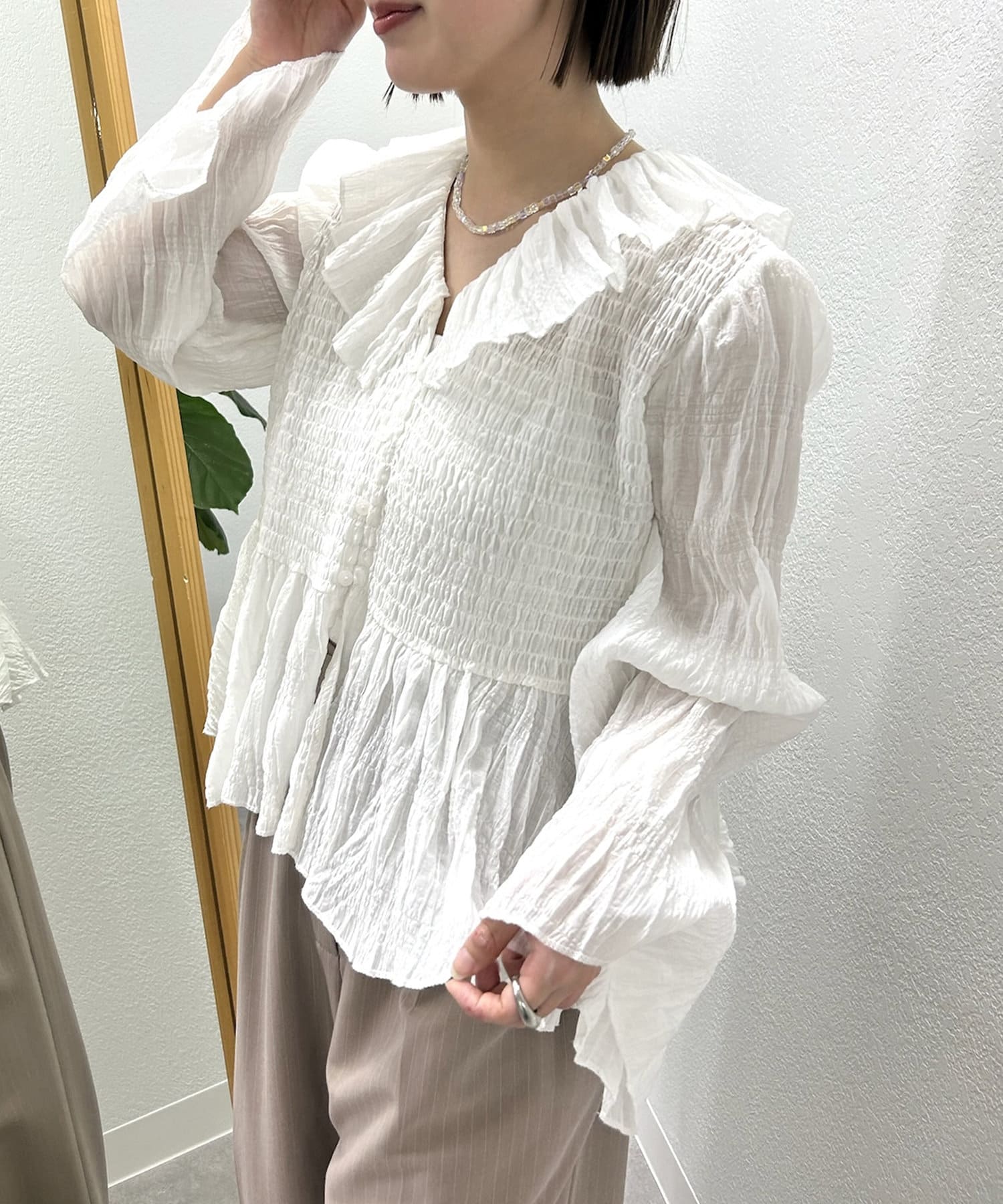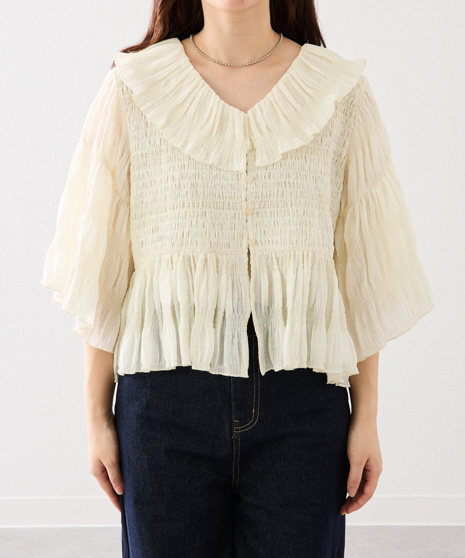 【1着で着映え◎/羽織りとしても◎】シャーリングフリルブラウス