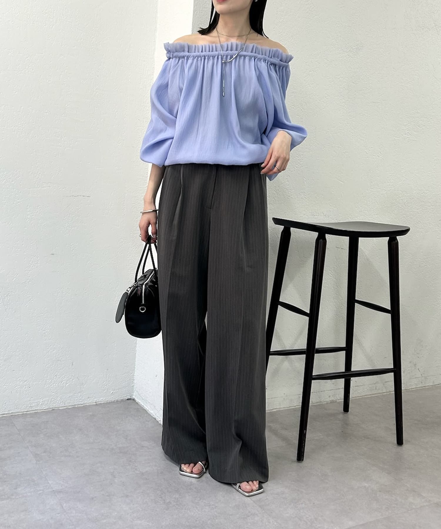ややボリューム感のあるトップスなので、すっきりシルエットのボトムス合わせ◎