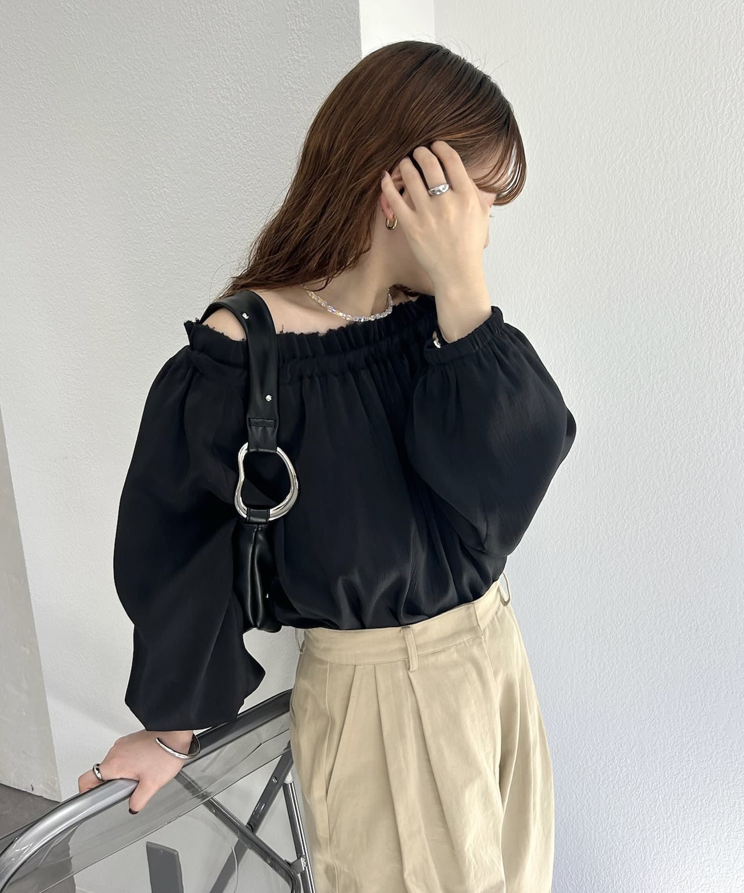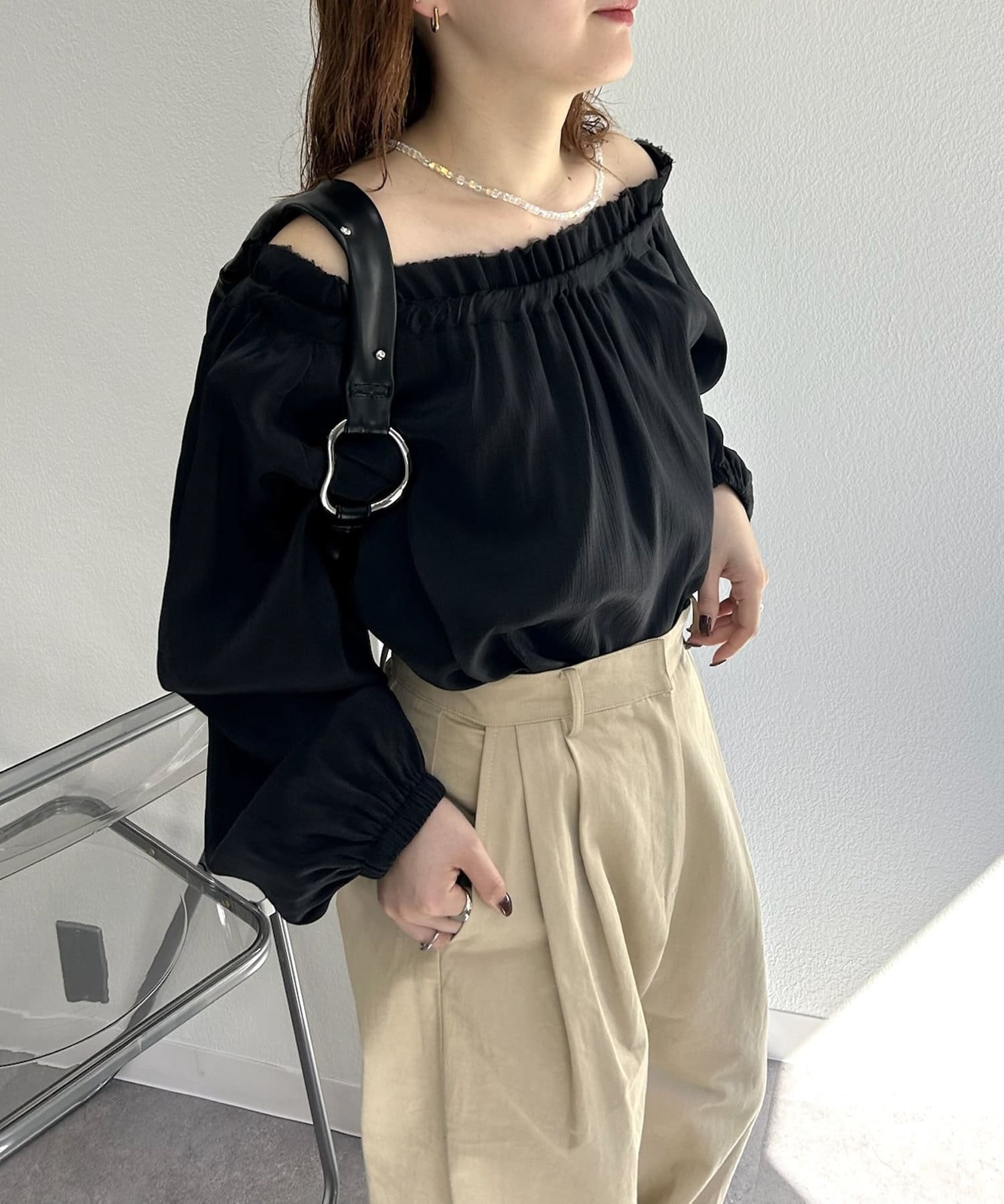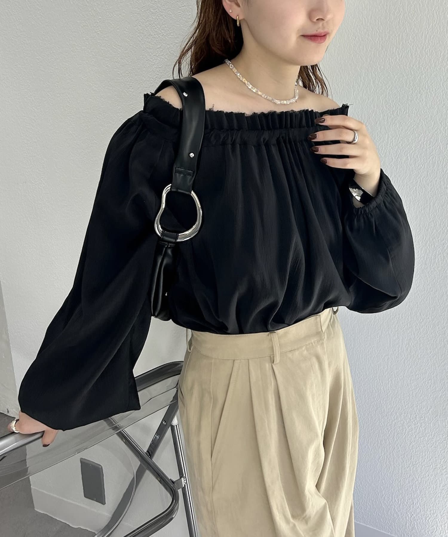 肩を落としてオフショルで抜け感を出して着るのがおすすめ♡