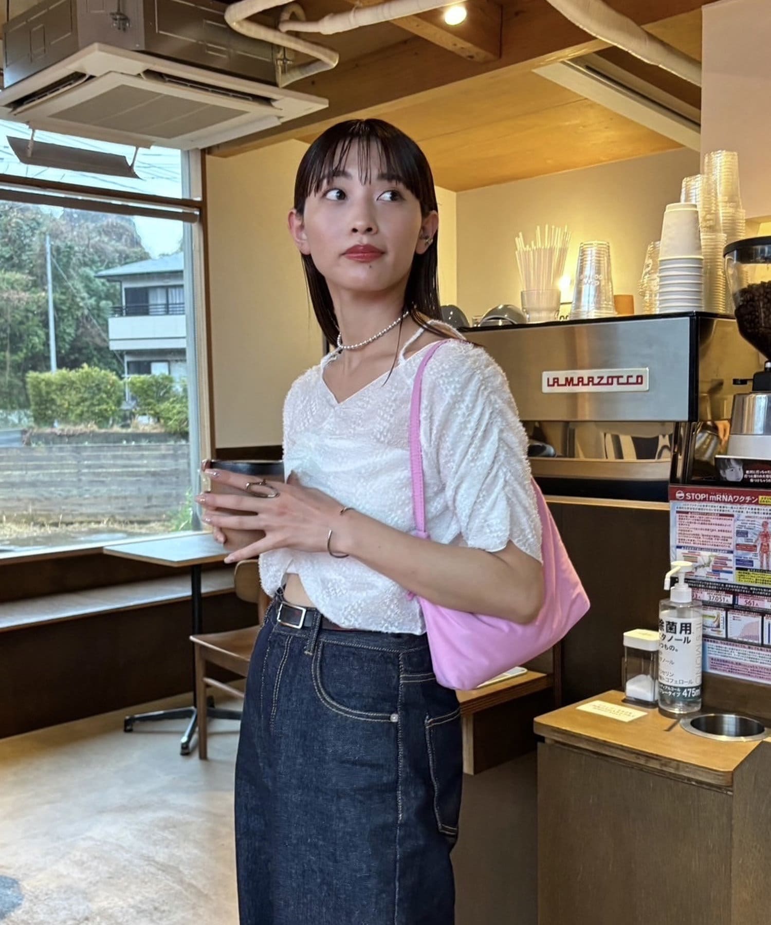 ・デニムにレイヤードしてこなれ感のあるスタイリングに◎