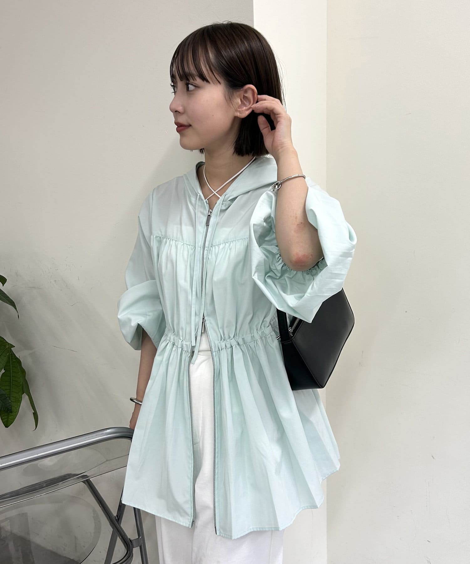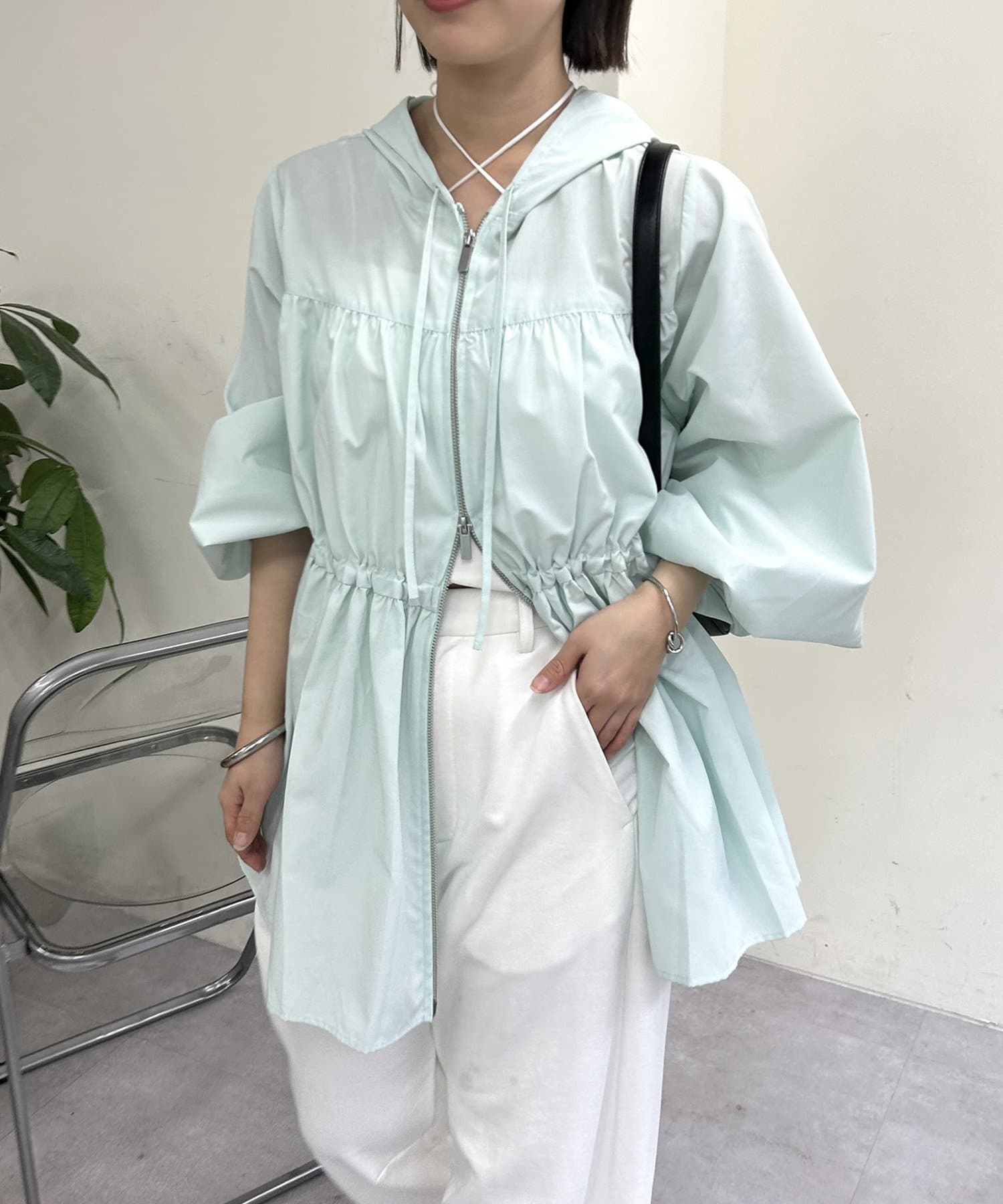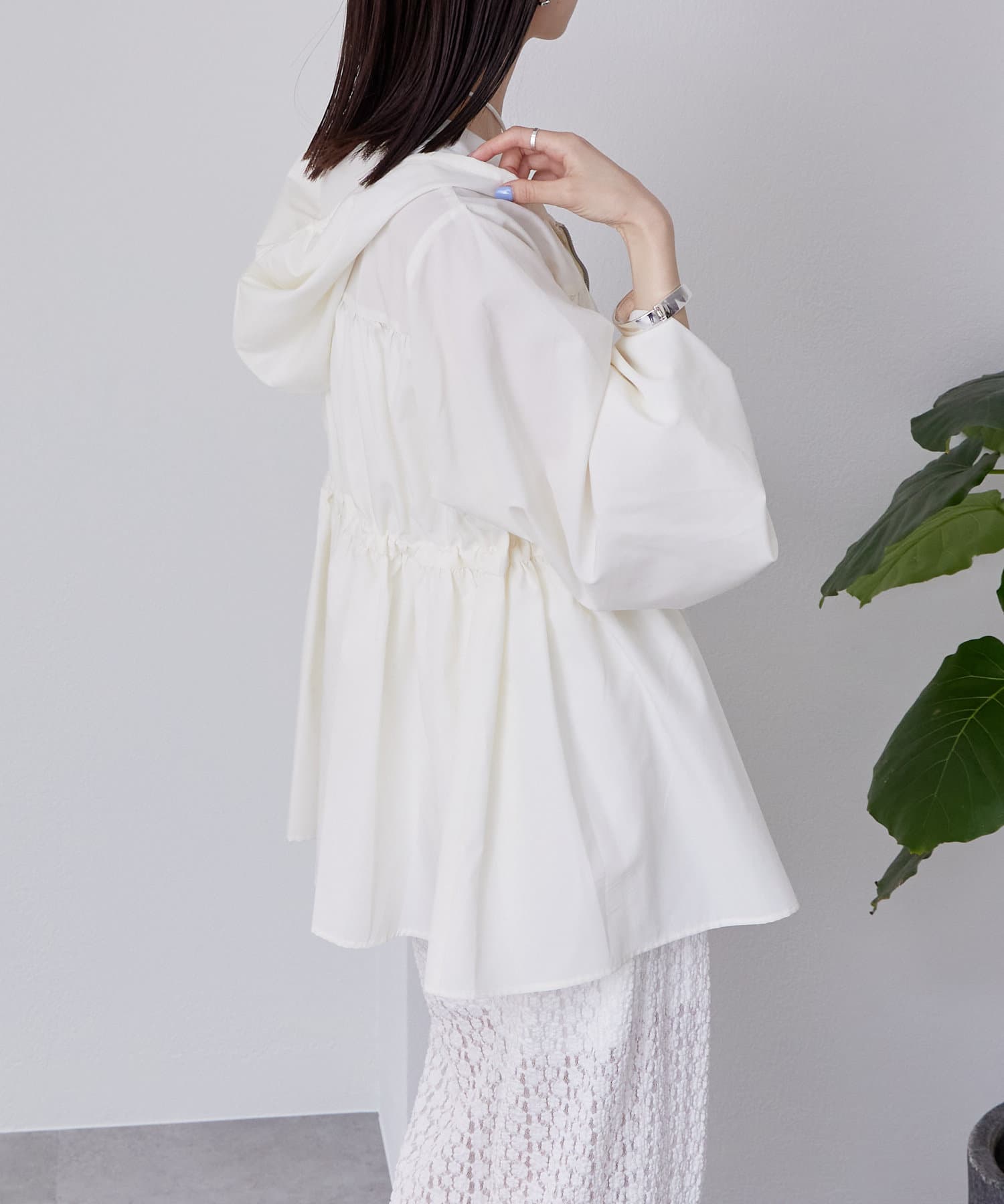表面感のあるギャザーが可愛いお洒落見えパーカーが登場!