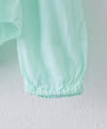 後ろ面にはギャザーが入っており、シンプルながらも可愛らしいさも表現。