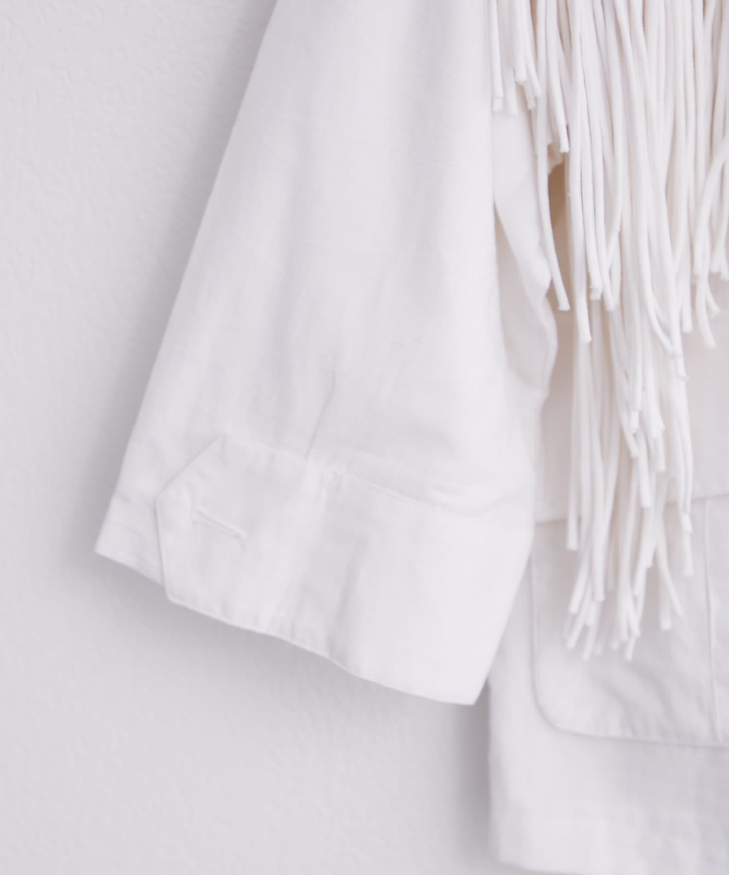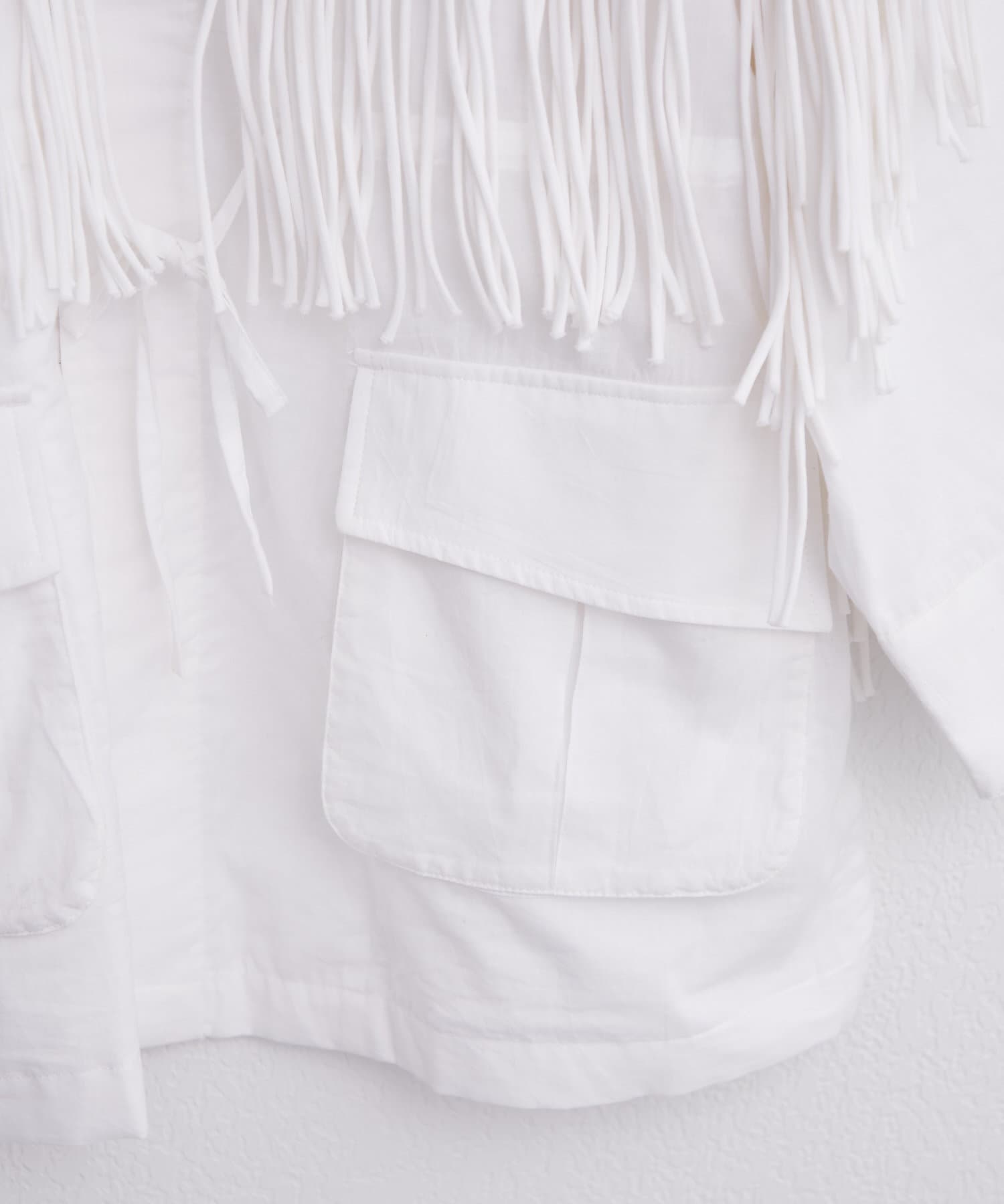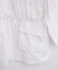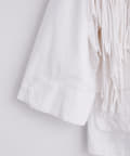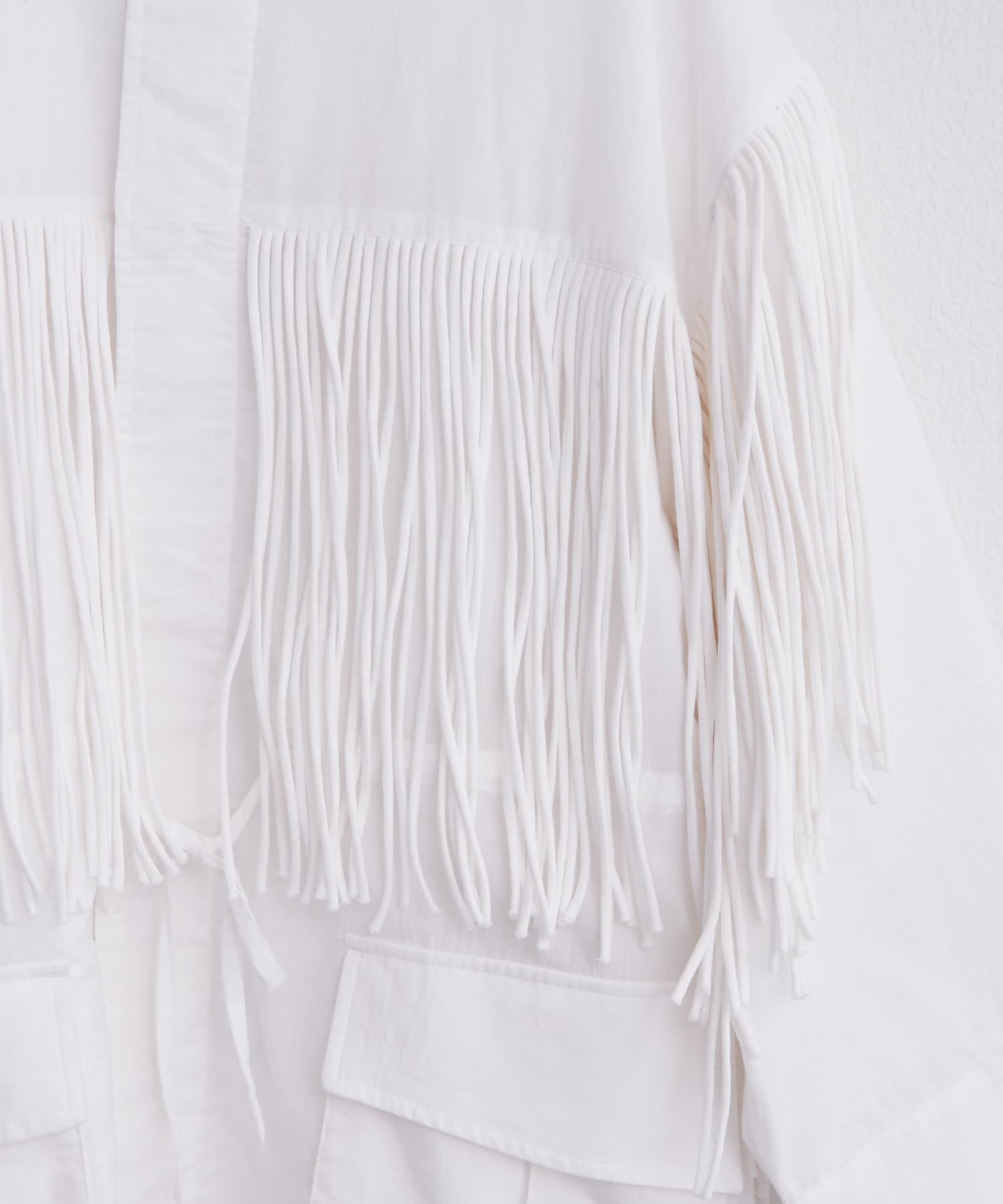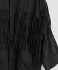 フリンジは胸元から裾にかけて施されており、存在感がありながらも、上品な印象のアイテムです。