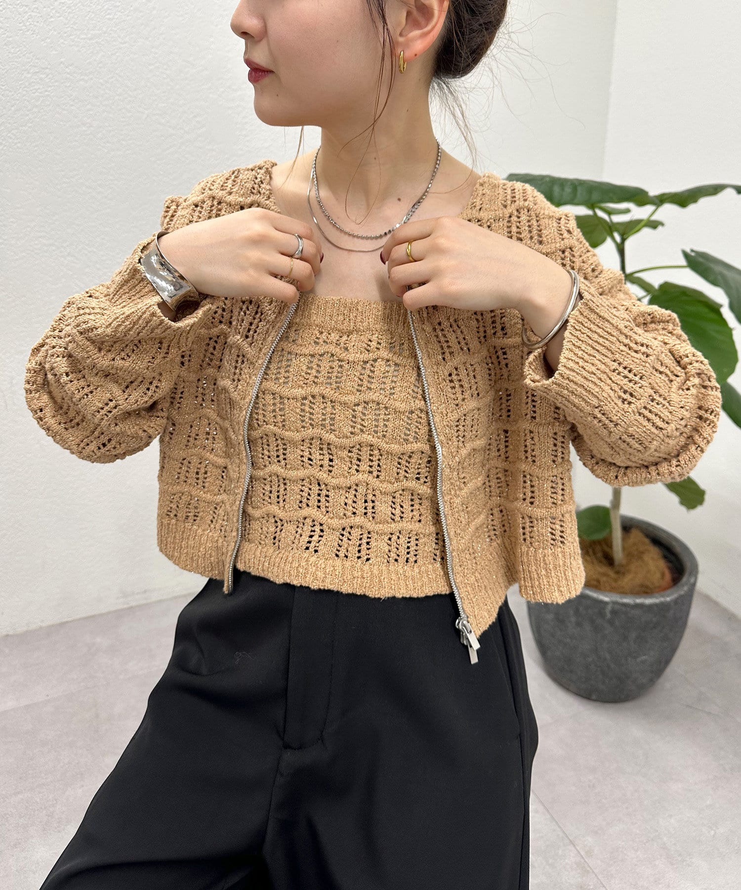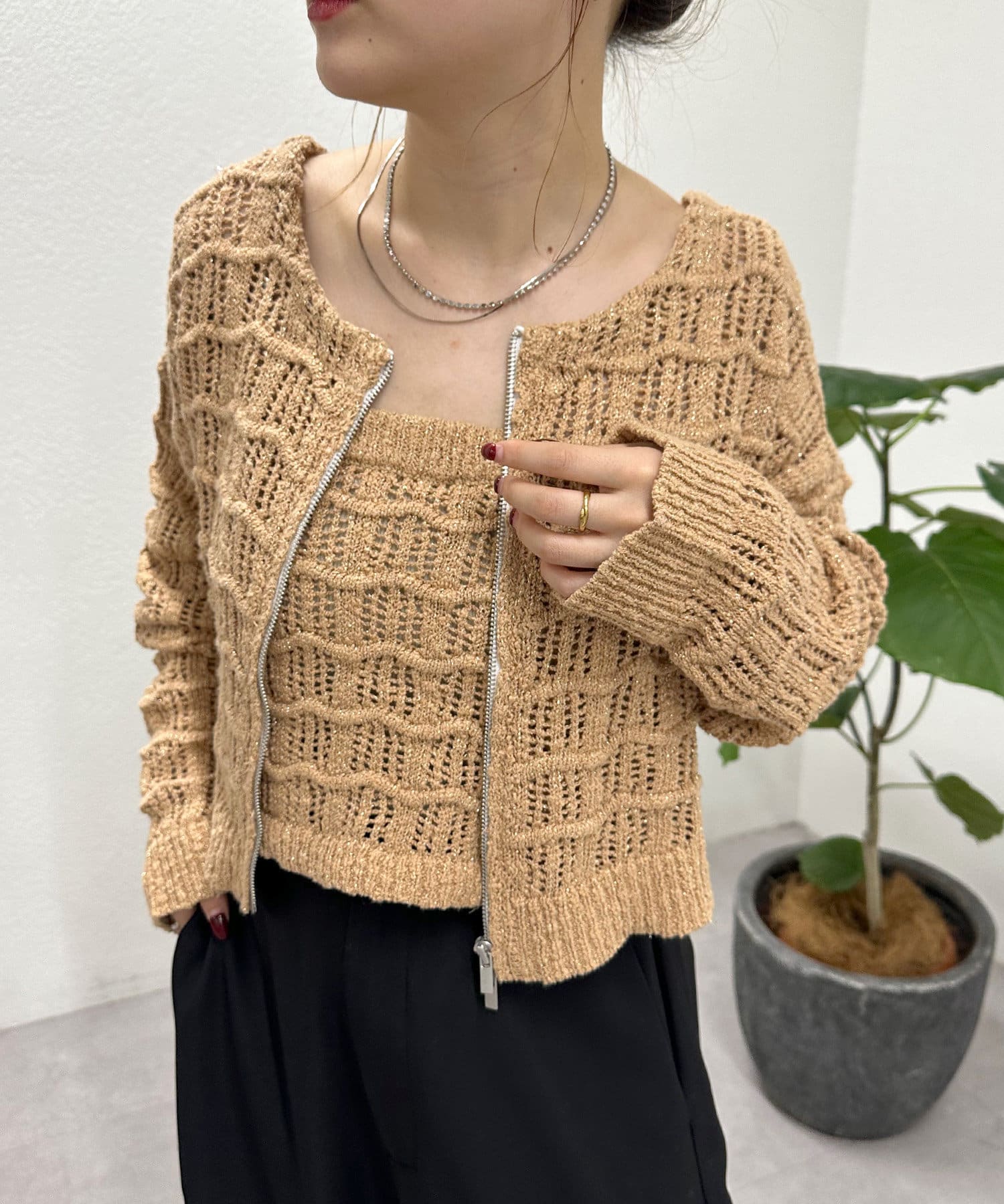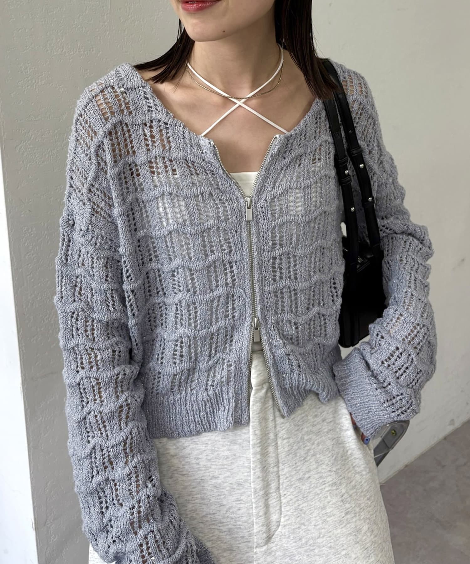ラメ感と透かし編みが魅力的なニットカーディガンが登場!