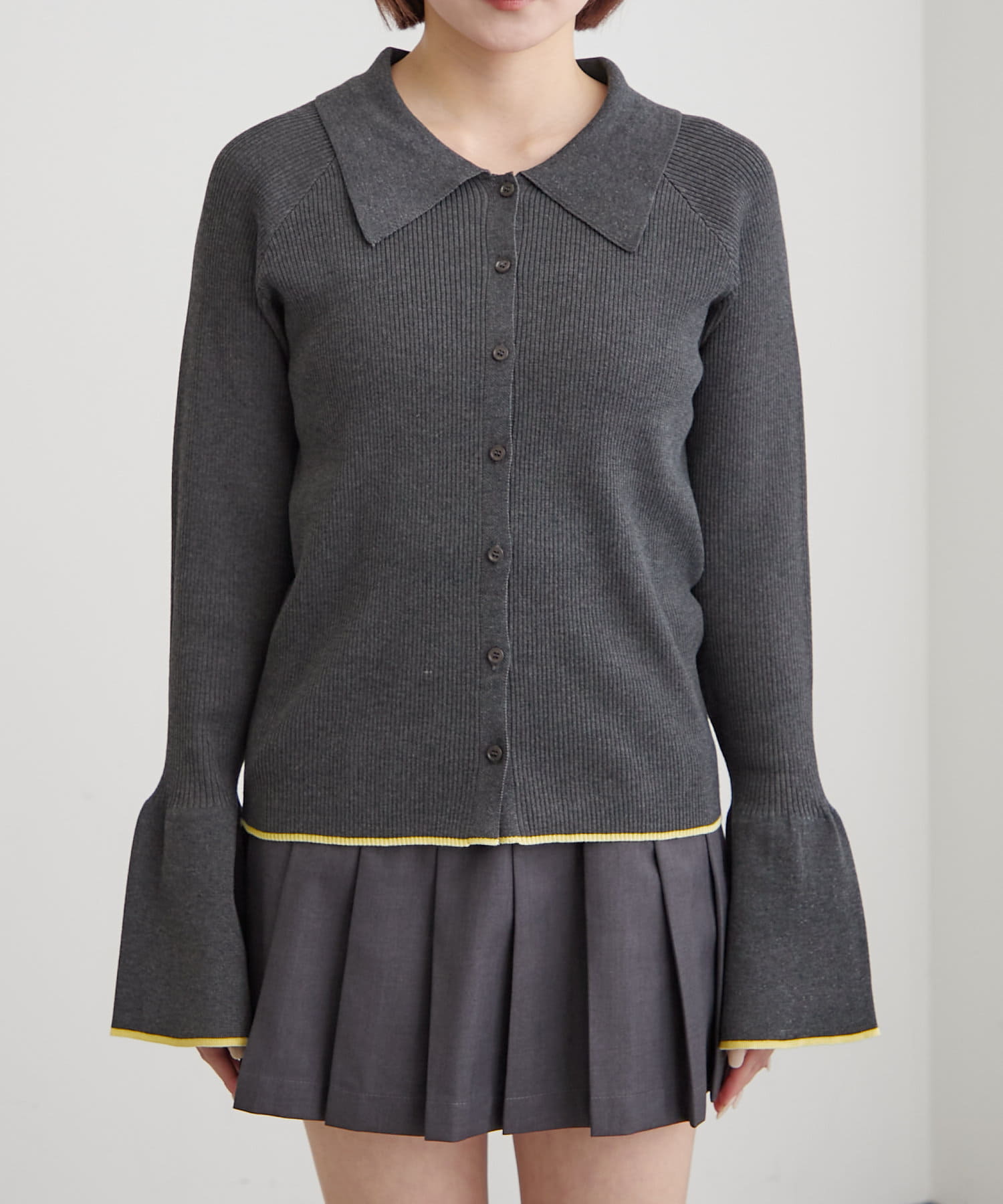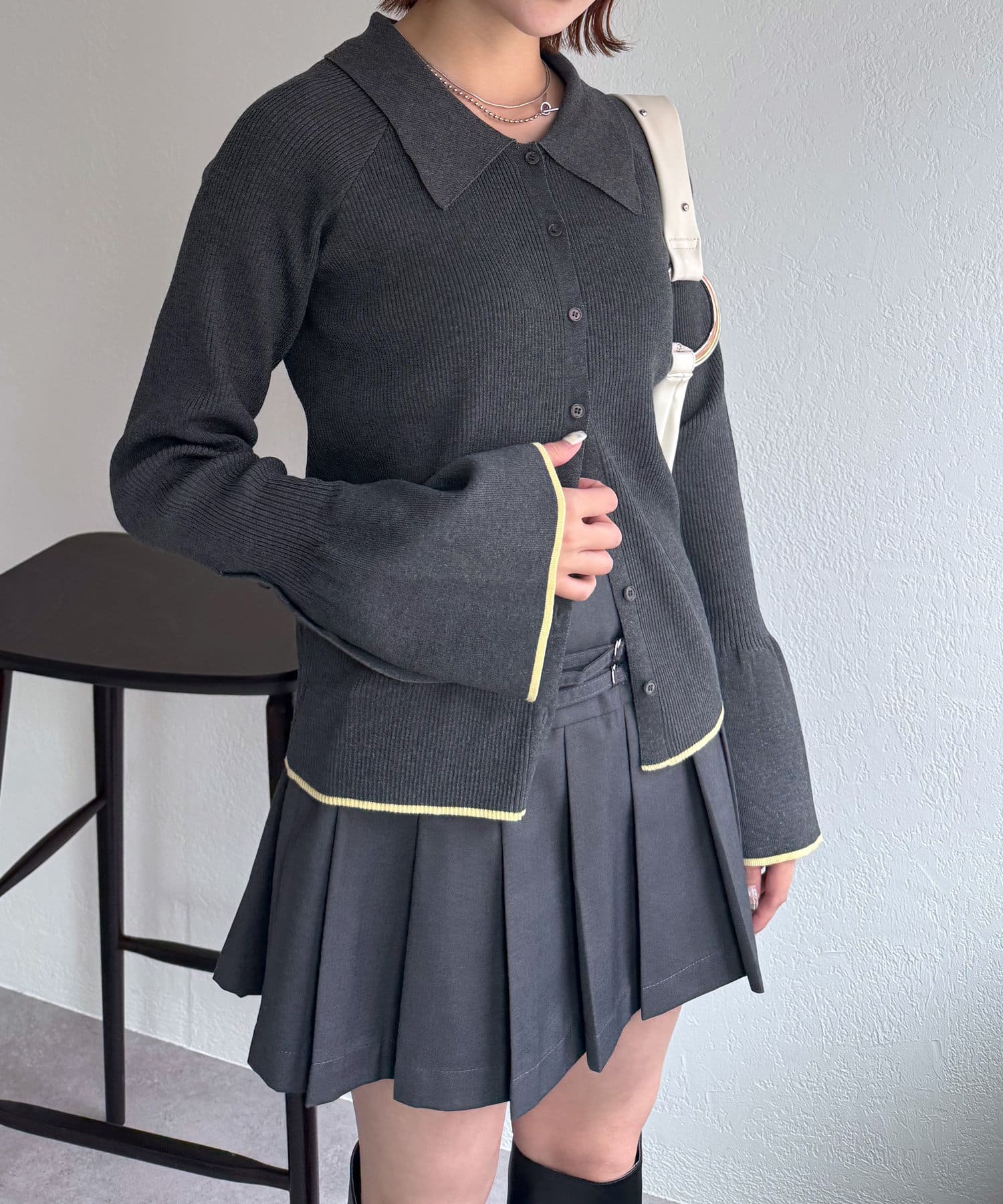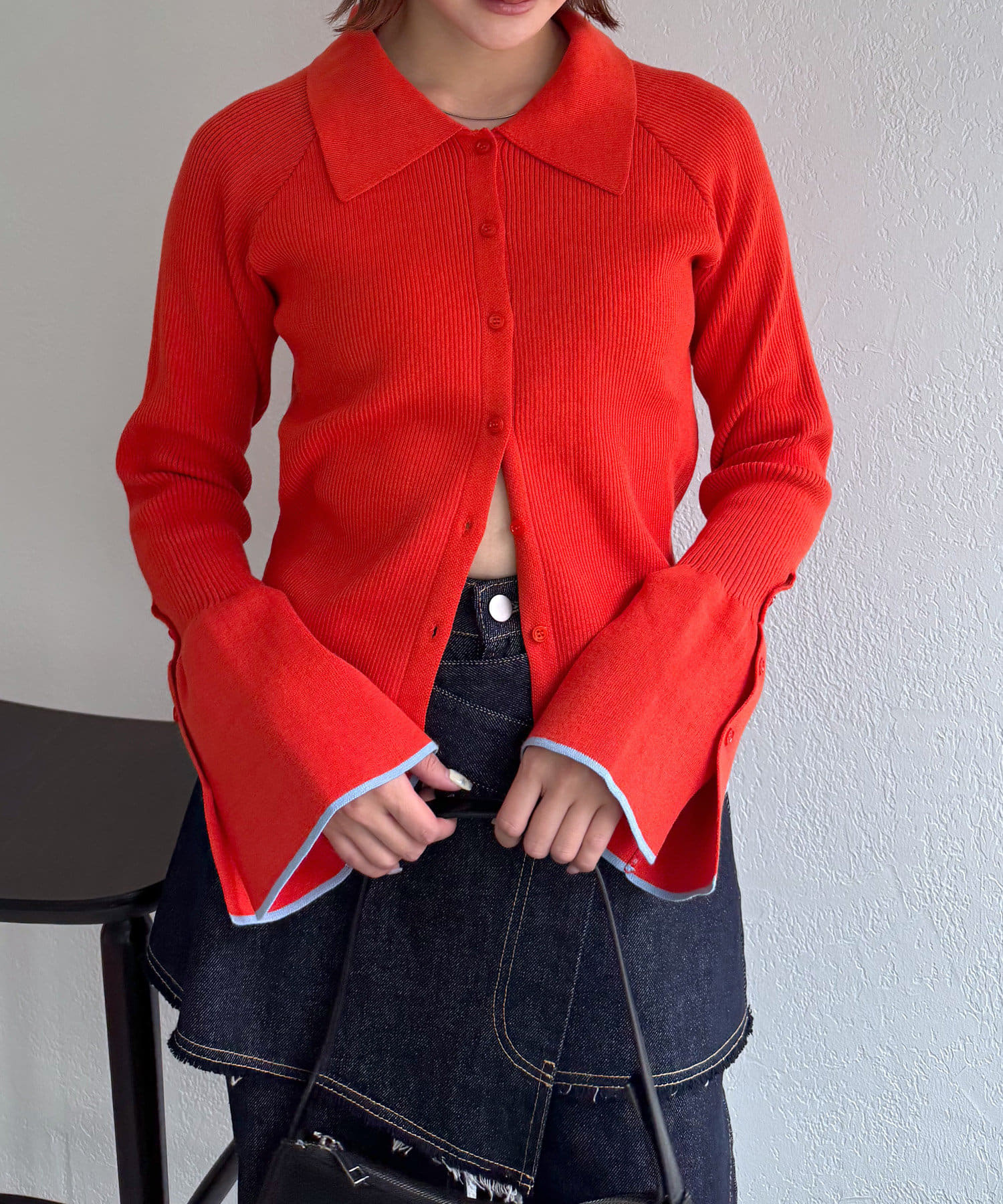 配色がアクセントになるボタンニットカーディガン