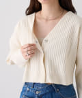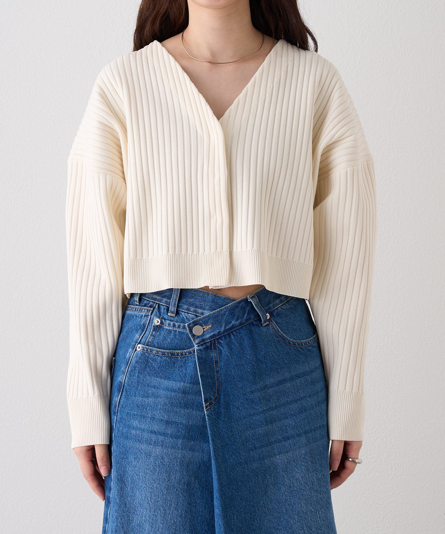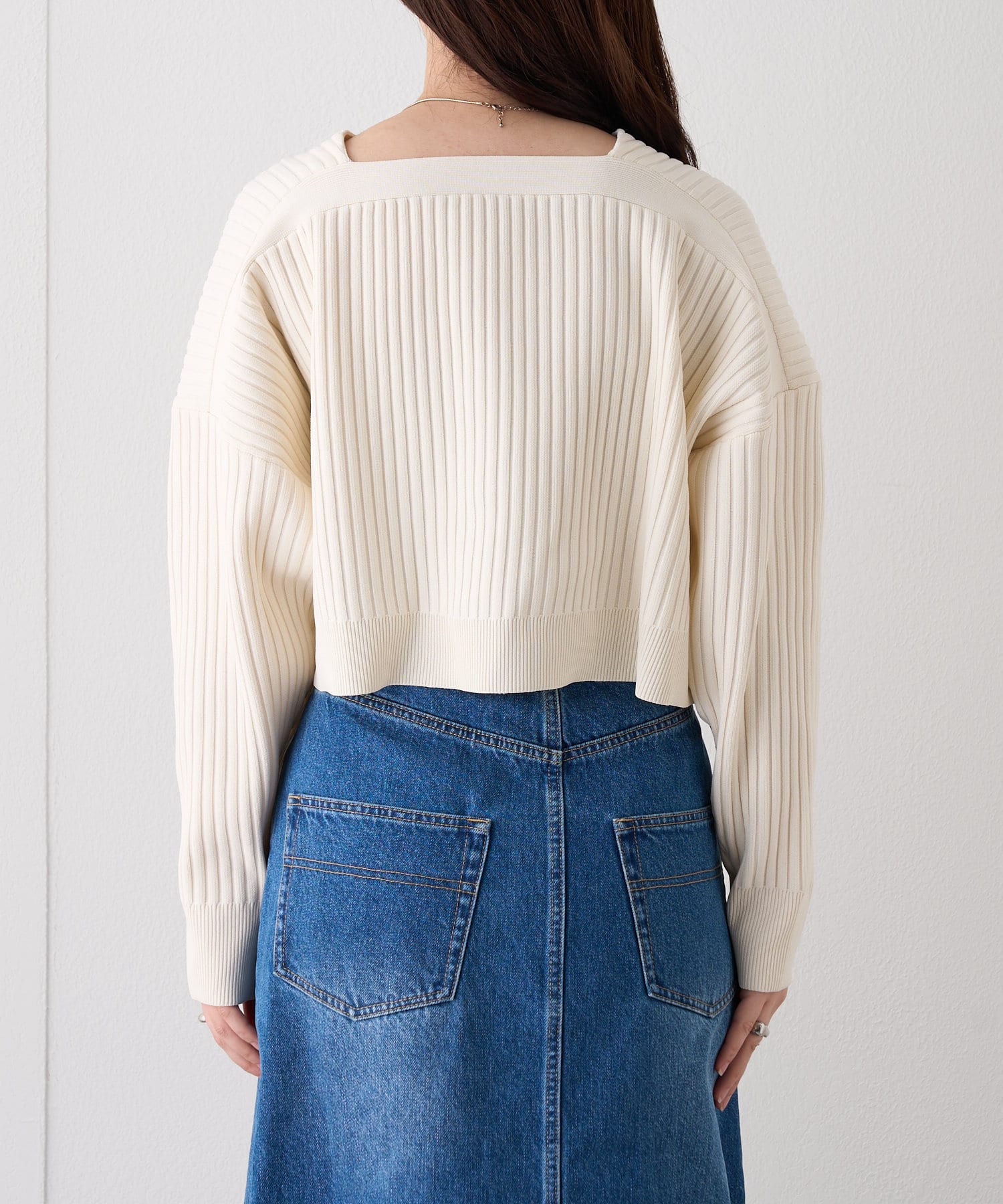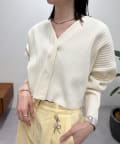 ・前後両前で着られる仕様でVネックとスクエアネックそれぞれ違う雰囲気を楽しんでいただけけるカーディガン。