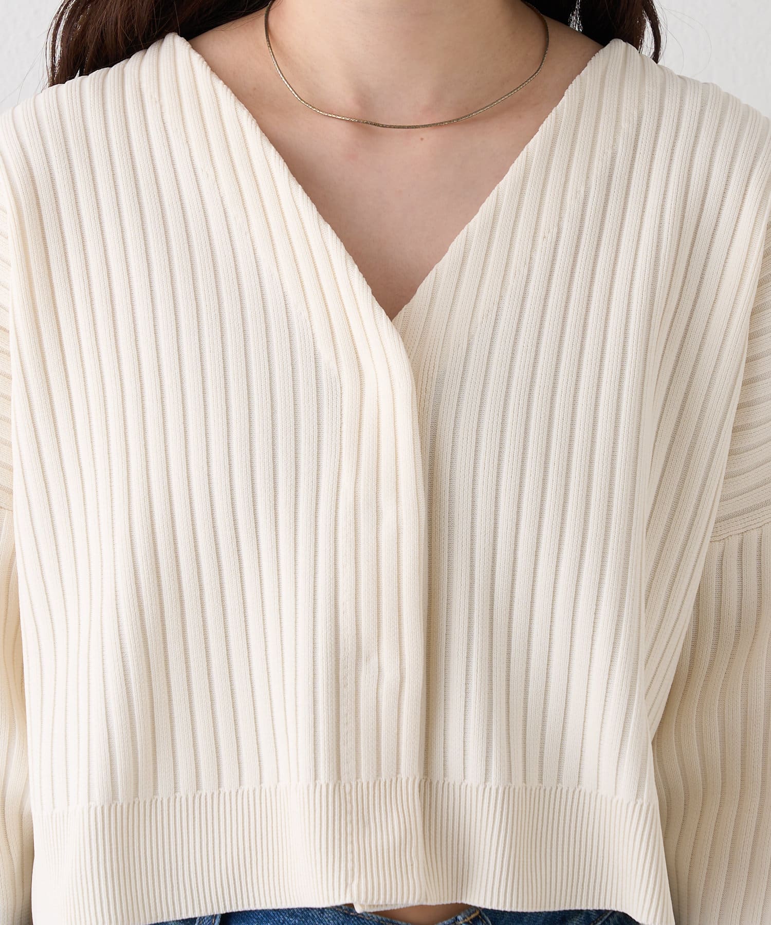 ・Vネックの方はボタンが隠れている仕様になっていて羽織りとしてもお使いいただけます◎