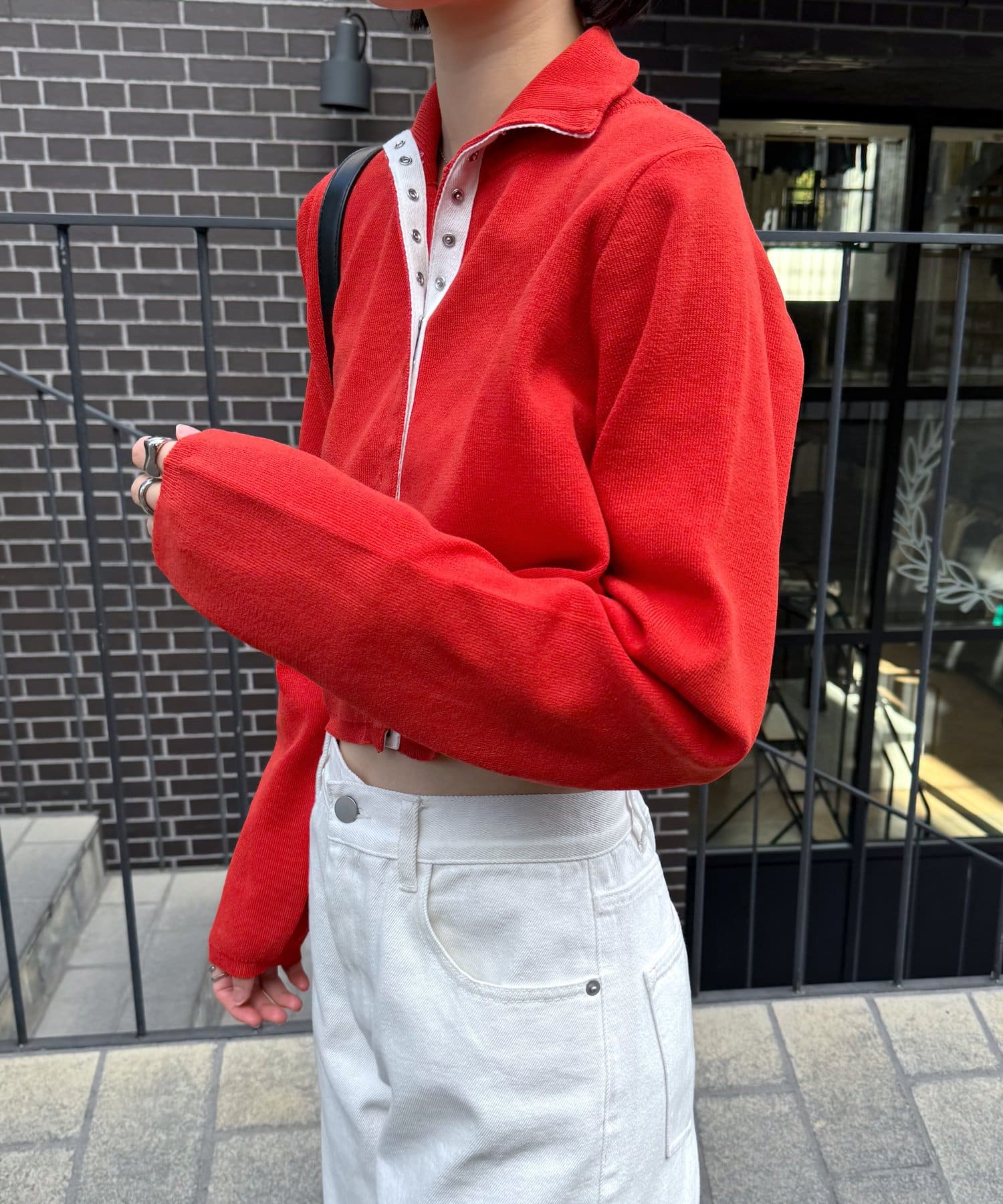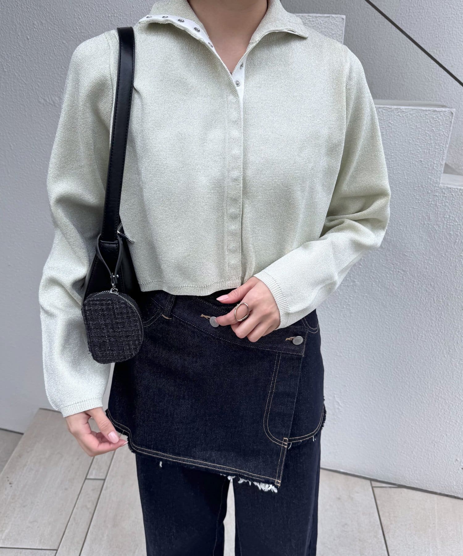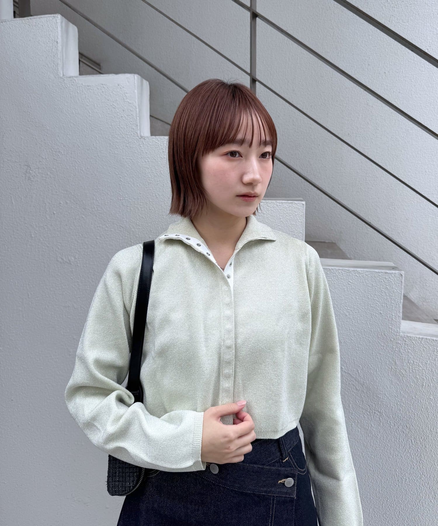 表面のラメ感が目を惹く◎ネックの配色が映えるニットが登場!