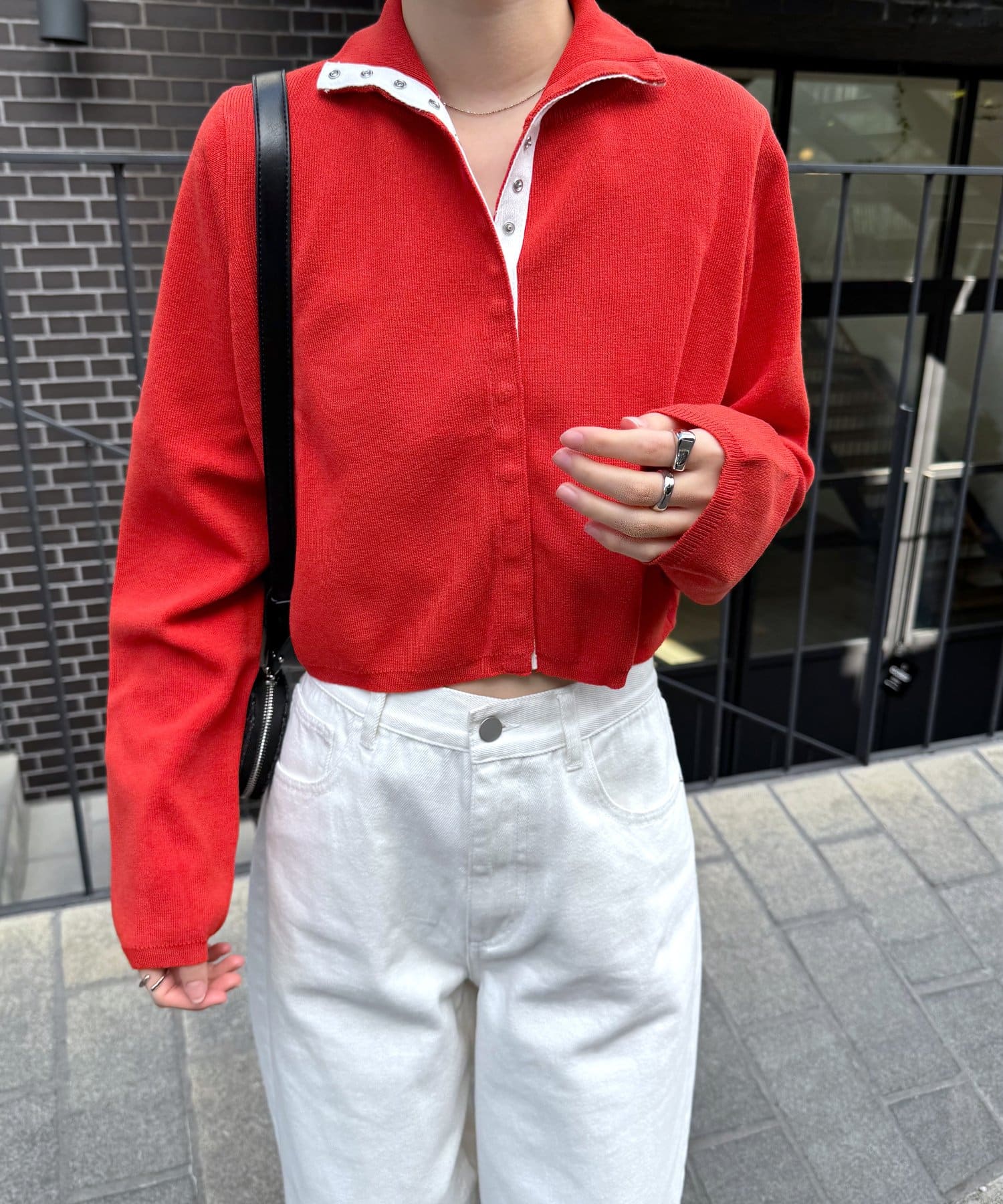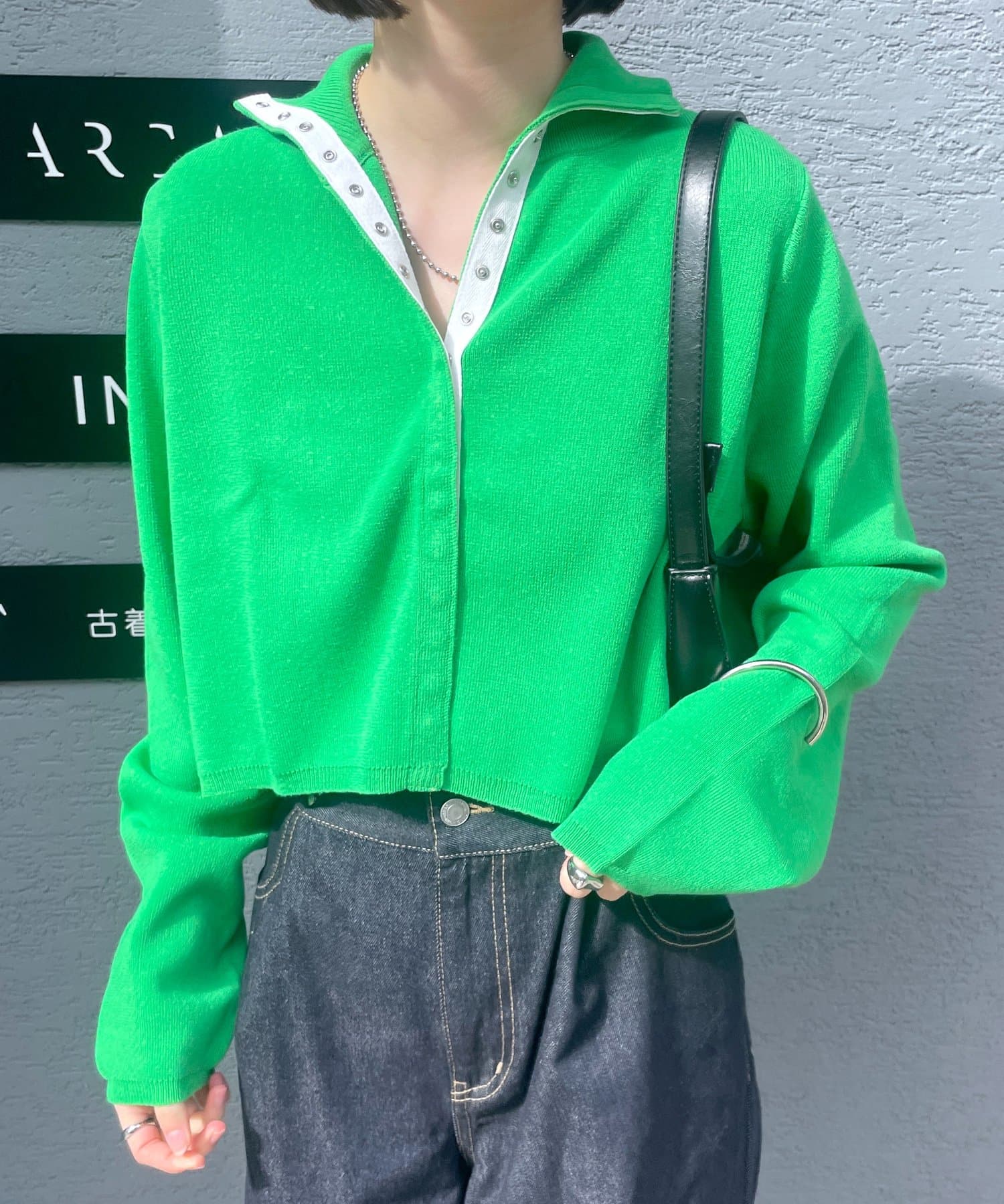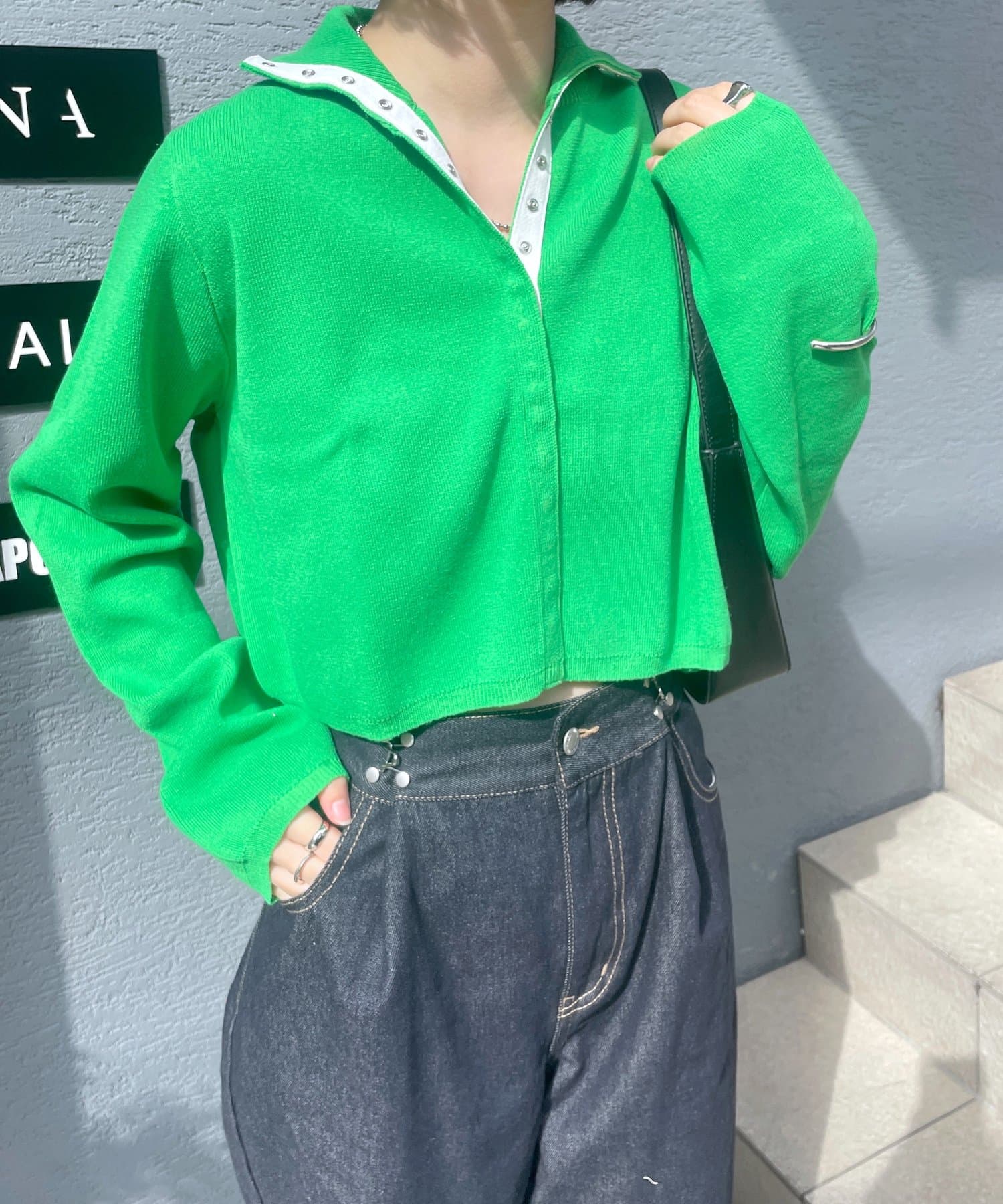 表面のラメ感が目を惹く◎ネックの配色が映えるニットが登場!