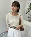 袖の透かし編みがアクセントとなり、着こなしに華やかさをプラスしてくれます◎