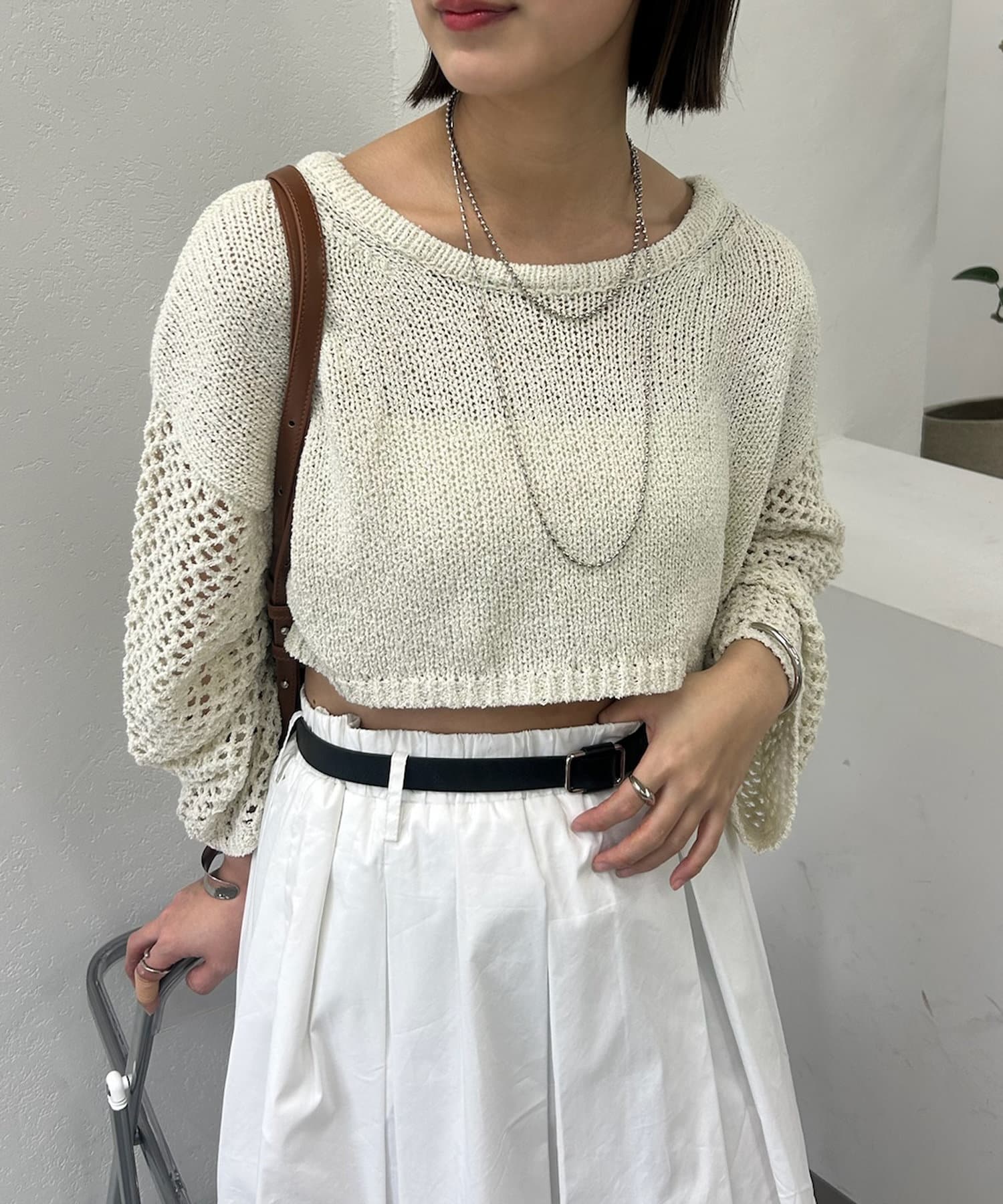 透かし編みのデザインが可愛いショート丈ニットが登場!