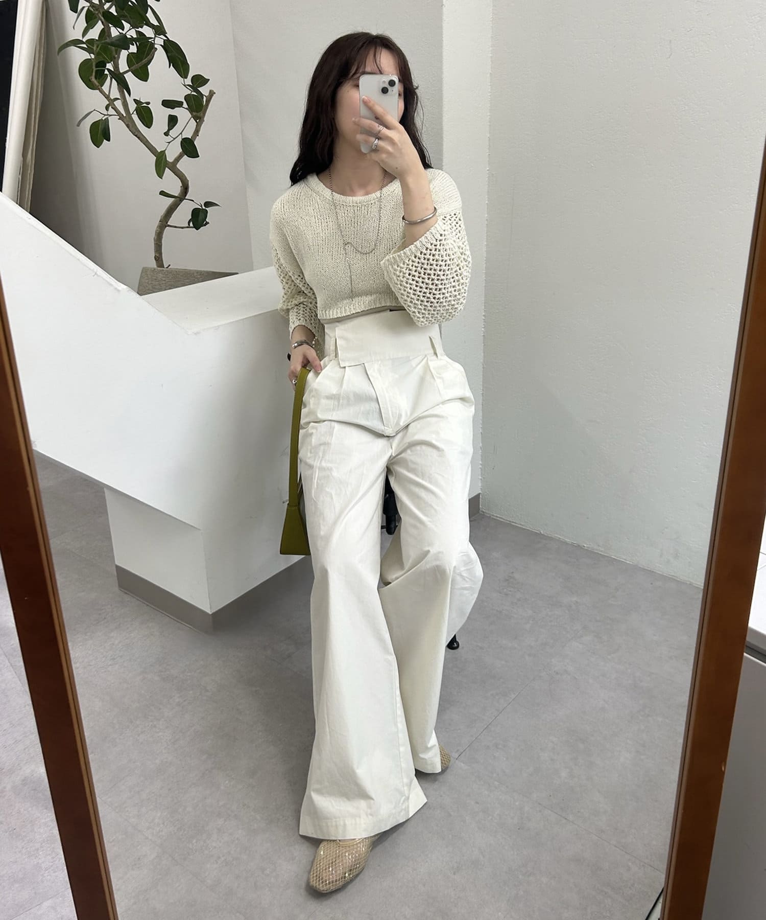 コンパクトなクロップド丈なので、ハイウエストボトムスとの相性抜群。