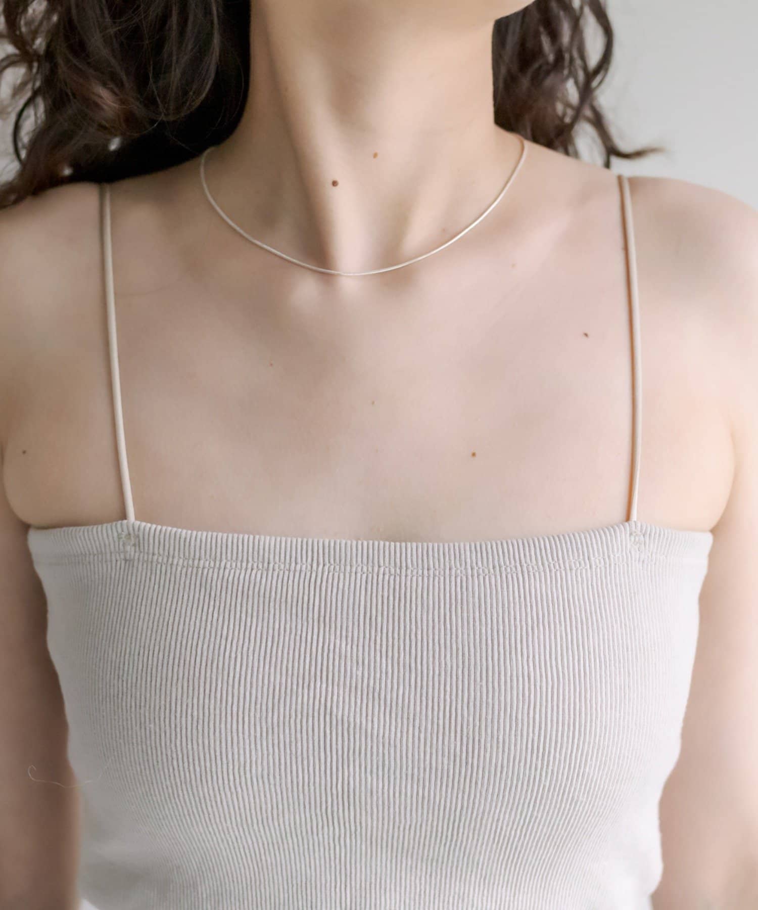 ・肩紐が細めでベアトップ風のシンプルなデザインがコーディネートに響きにくいのが特徴!