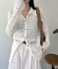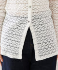 ・大きめの襟とボタンがアクセントになり、カジュアルすぎず上品な印象のカーディガン。