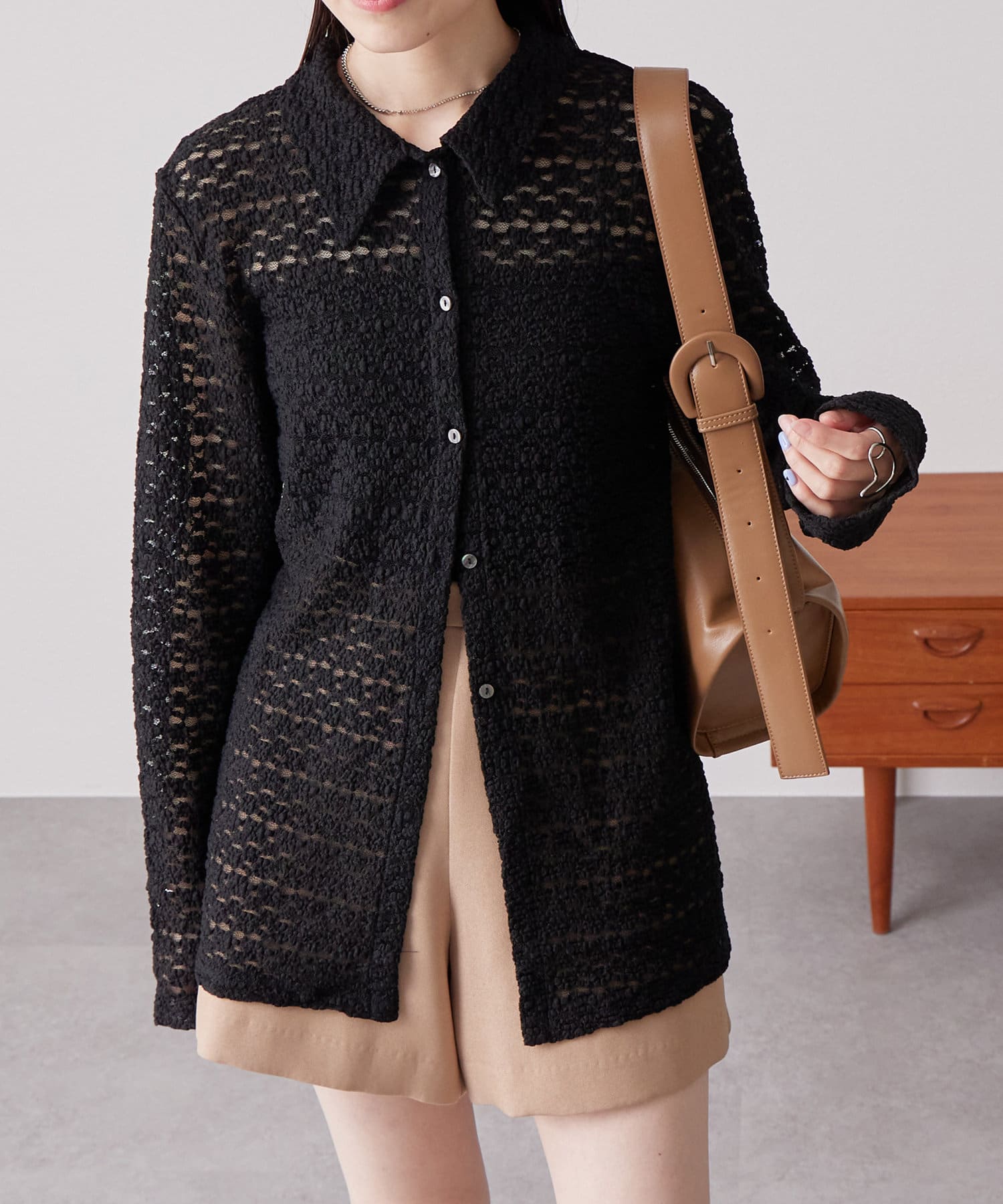 ・袖は程よくゆとりを持たせたロングスリーブで、透け感がありながらも二の腕をカバーしてくれます!