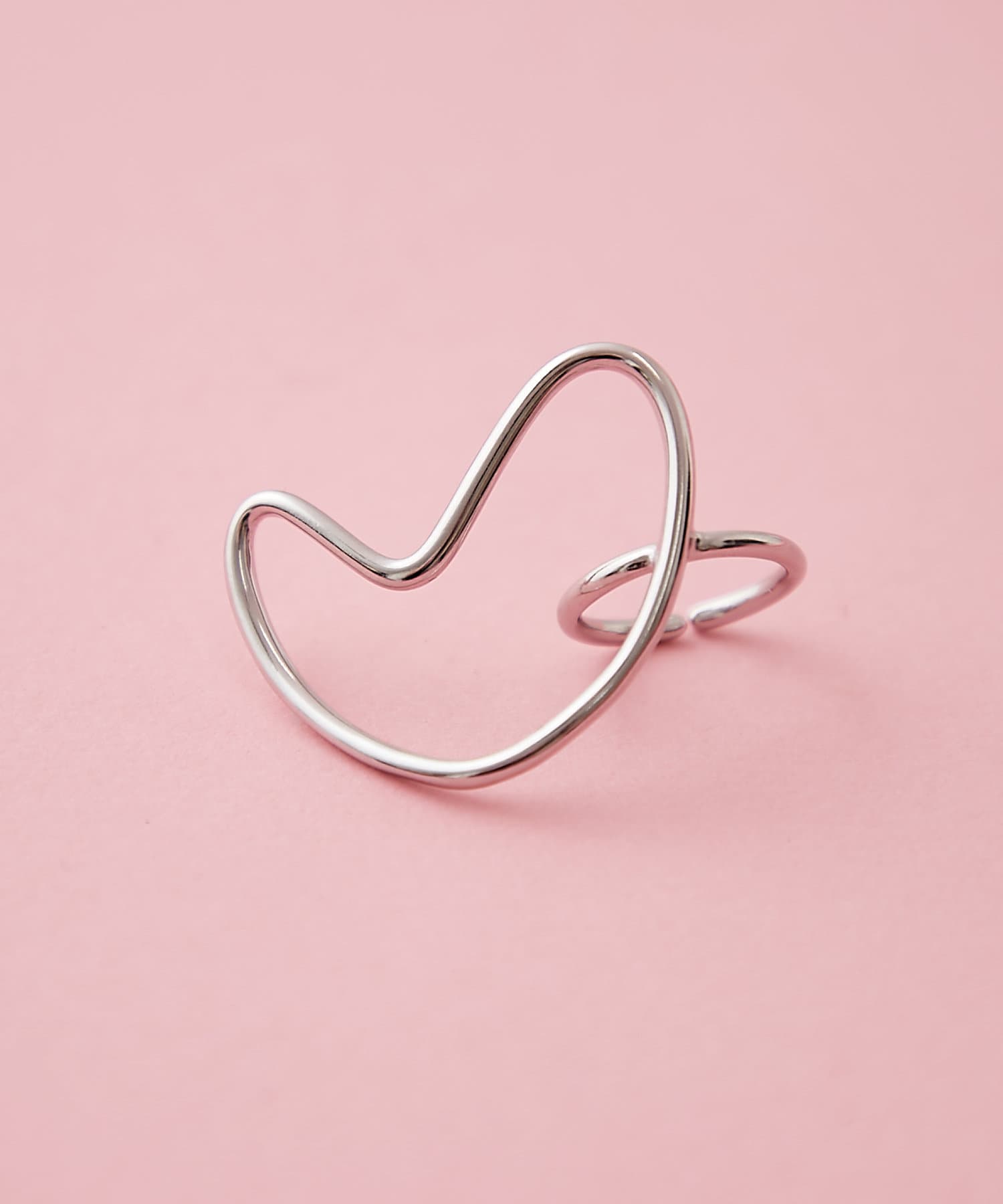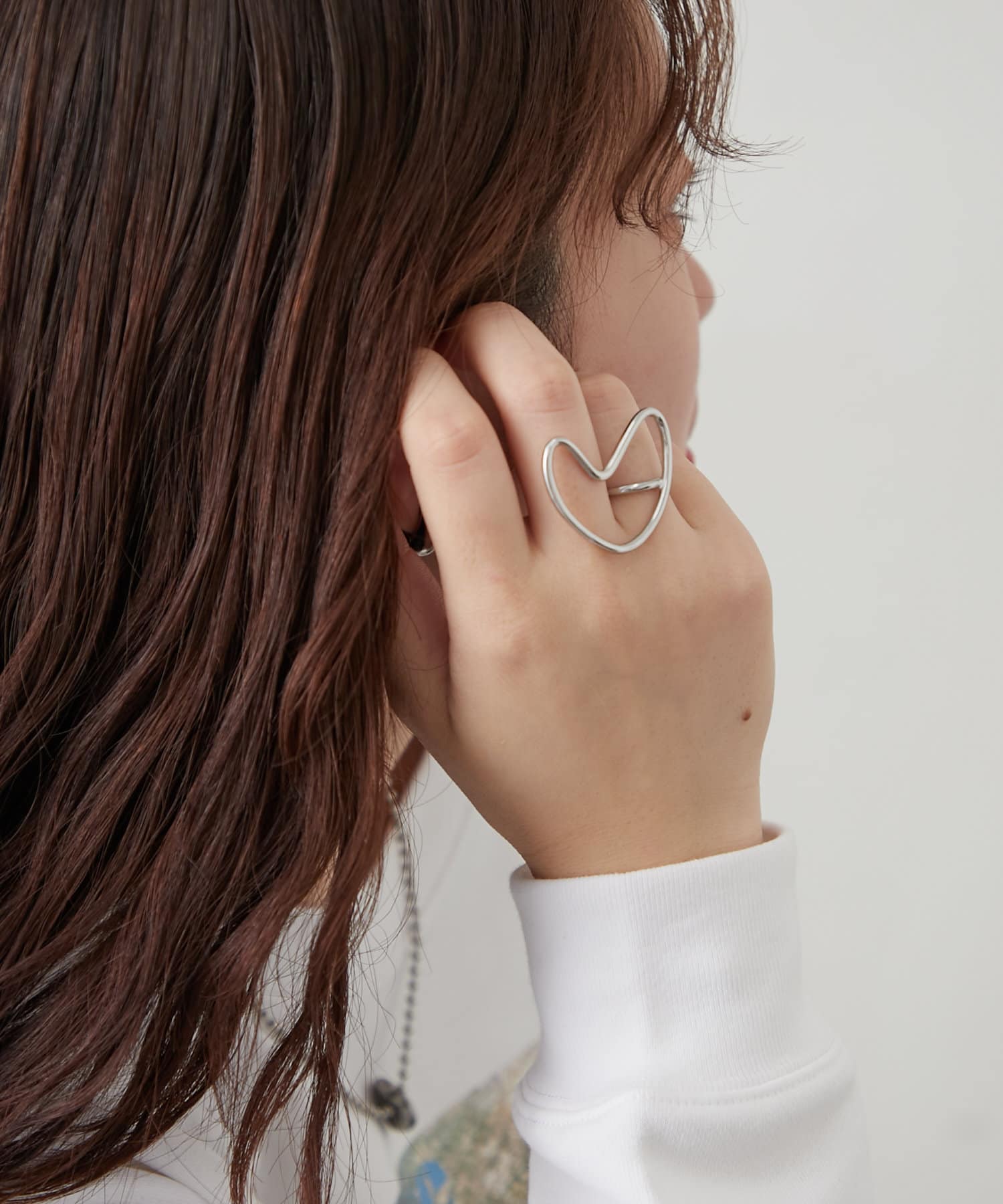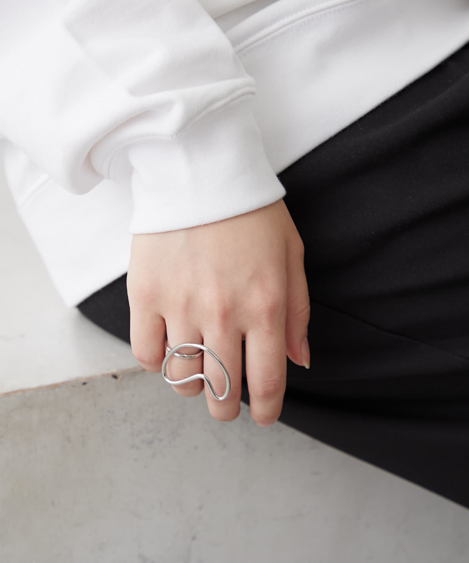 (リングとモチーフ部分がずれて大きめのデザインなので、着用時指2本分のサイズ感になります。)