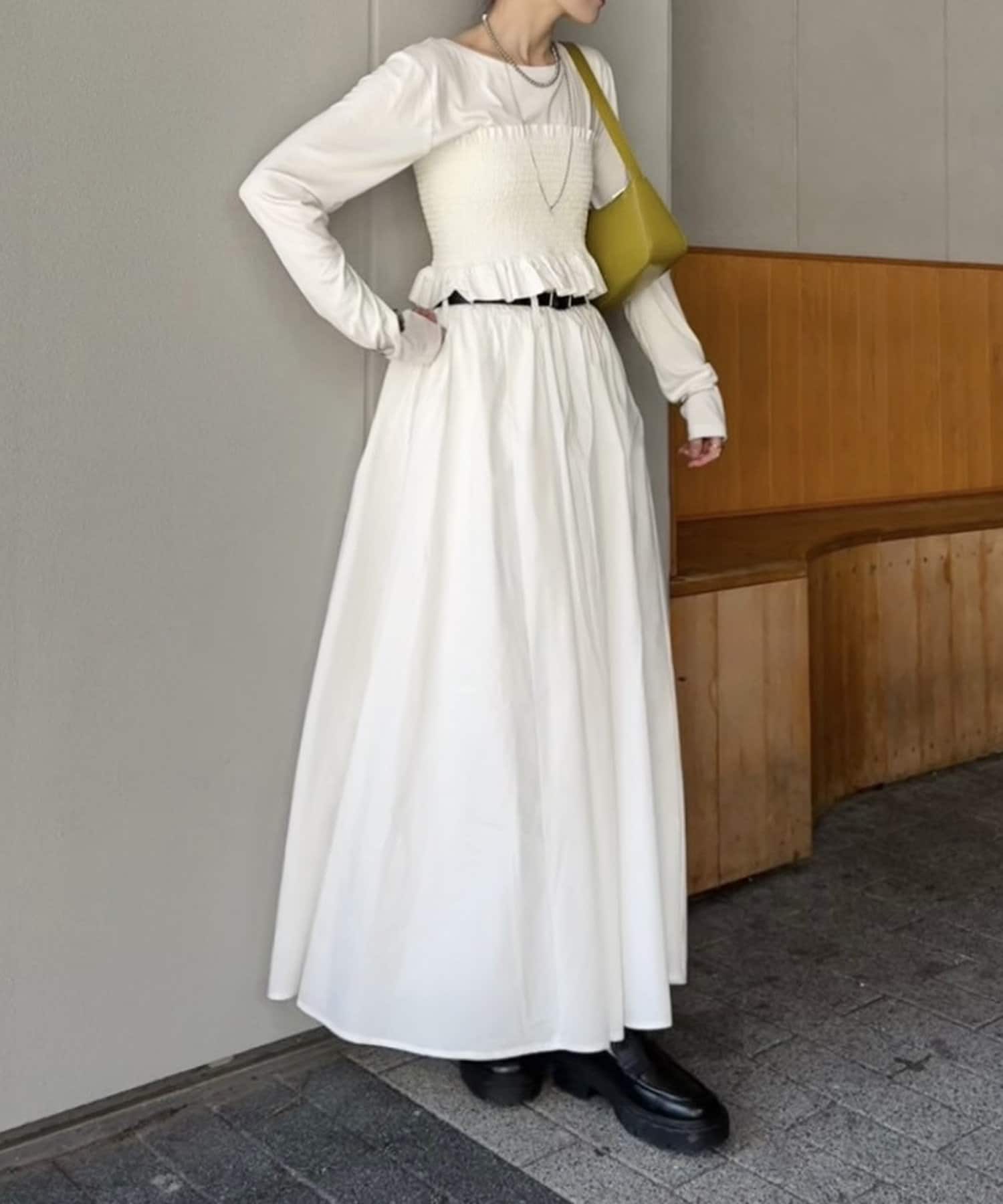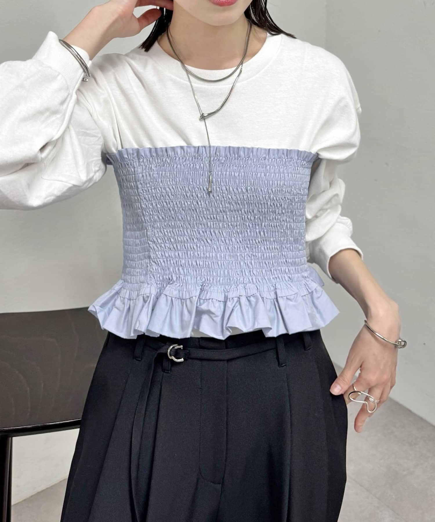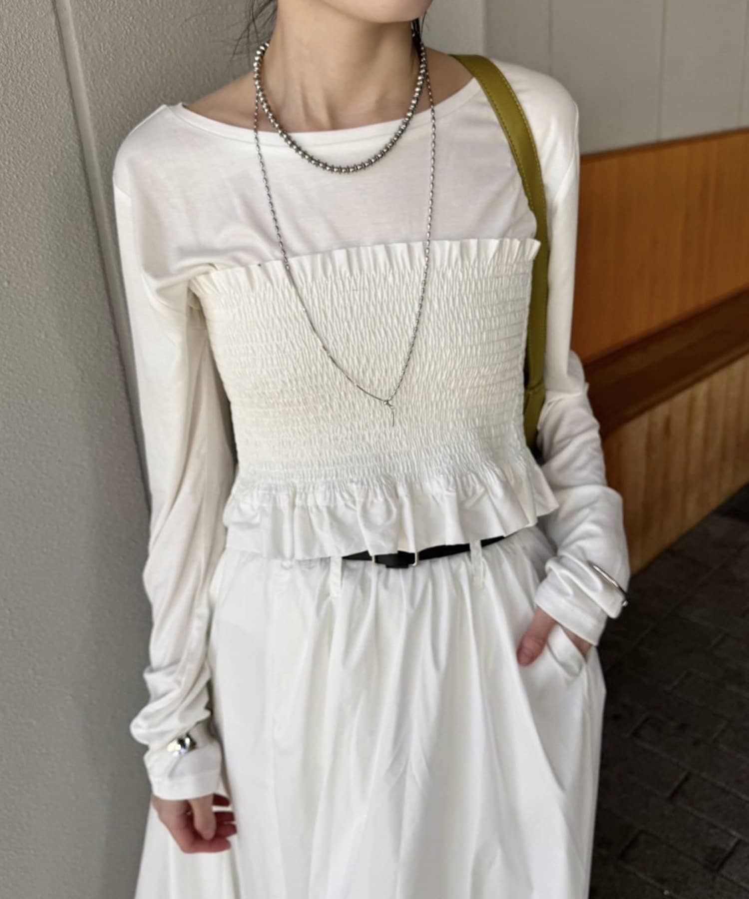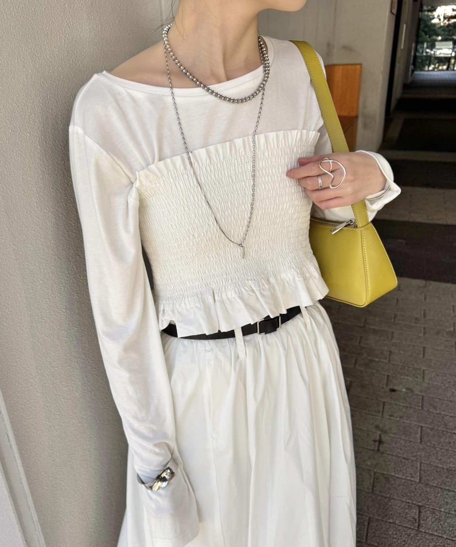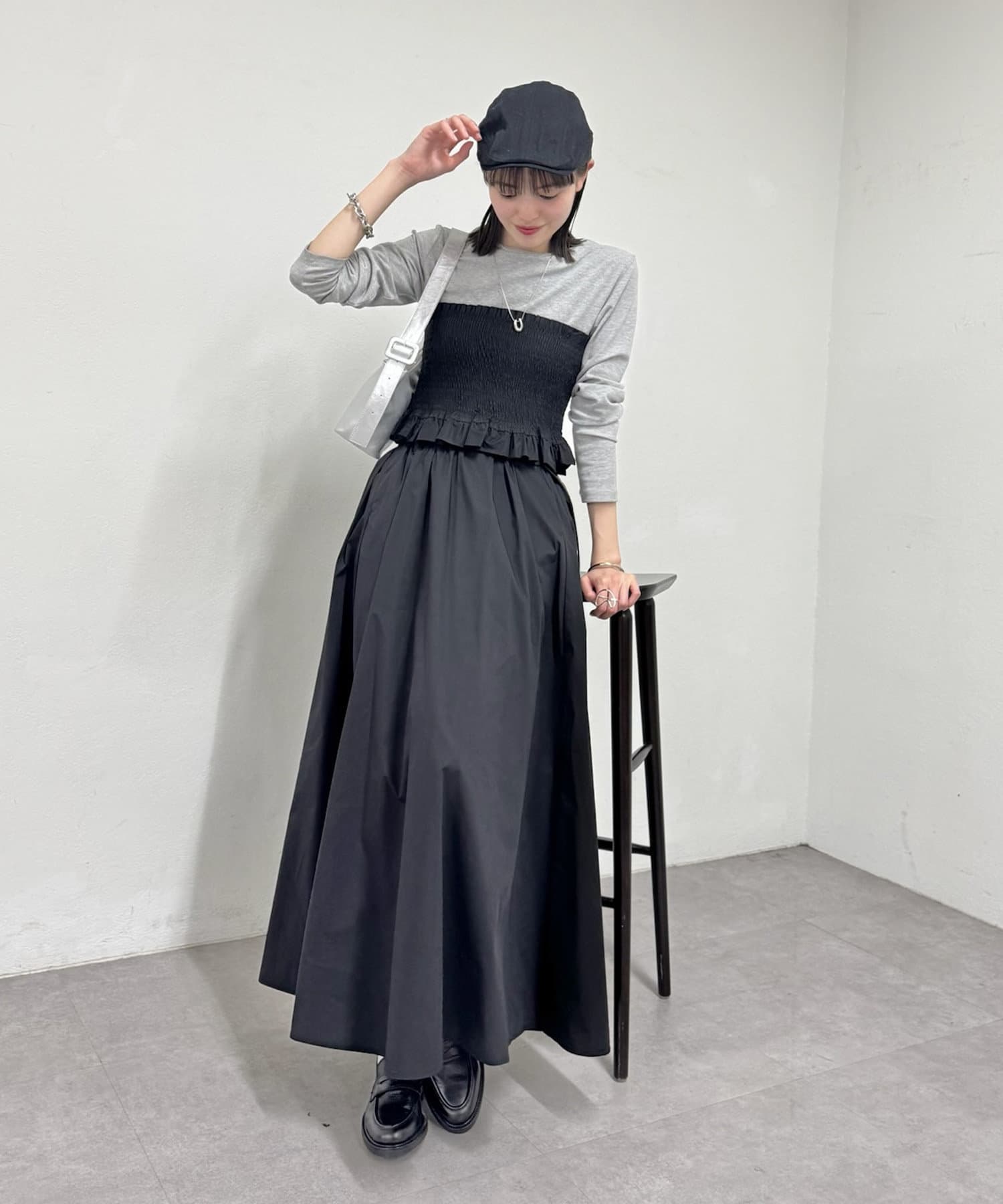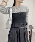 ・ビスチェをウエスト部分に付けてスカートの上から重ねるだけで変化のあるスタイリングに!