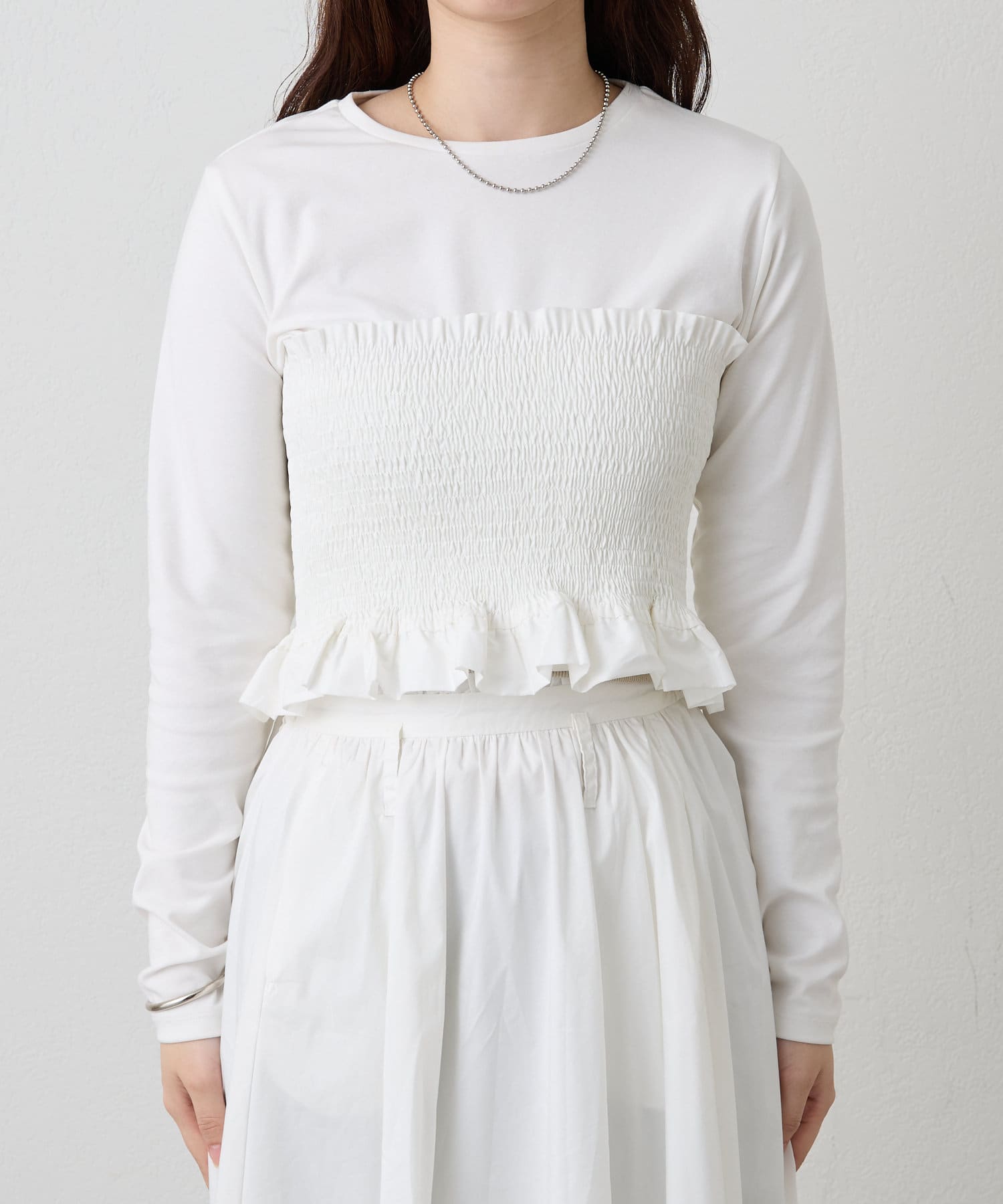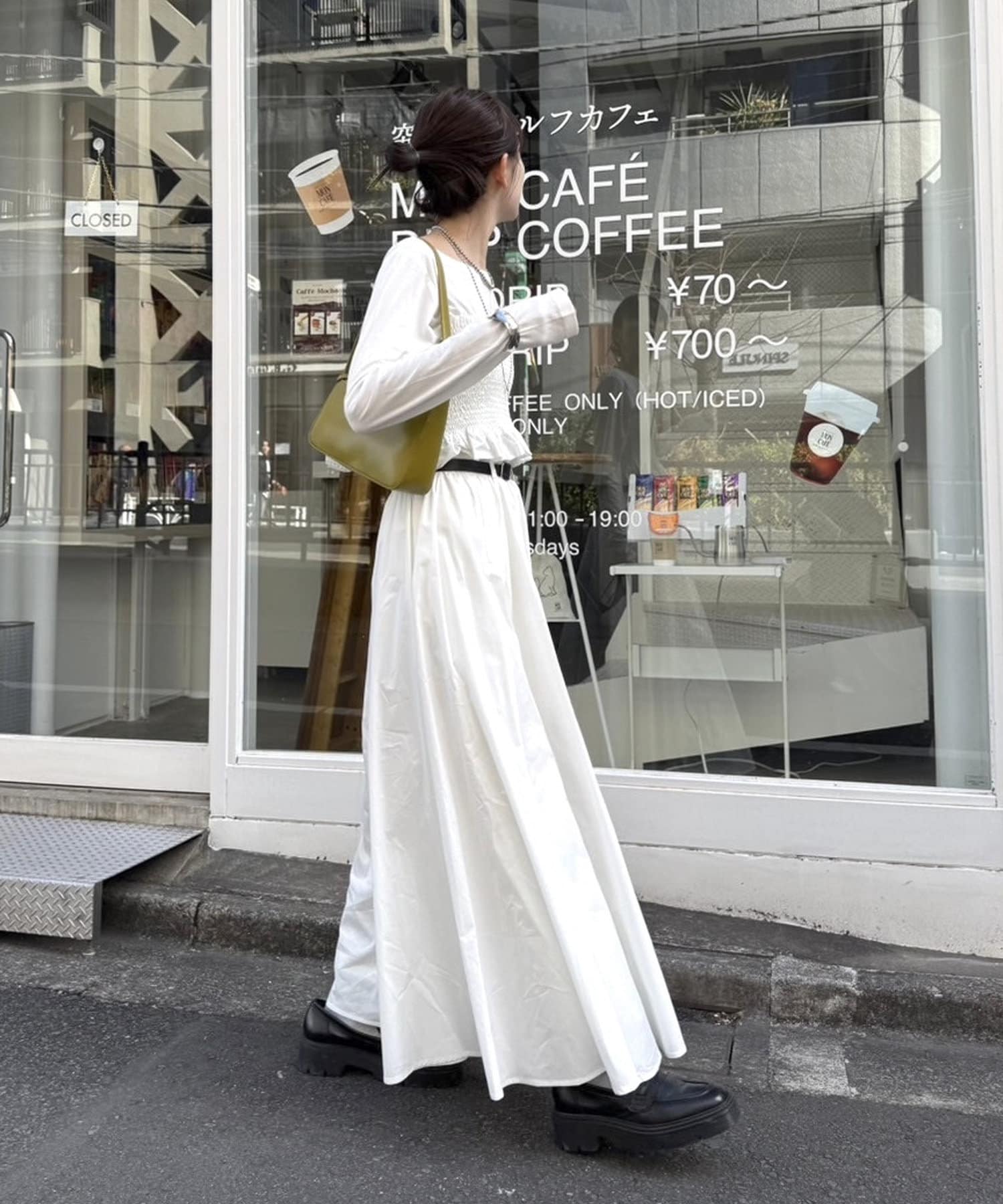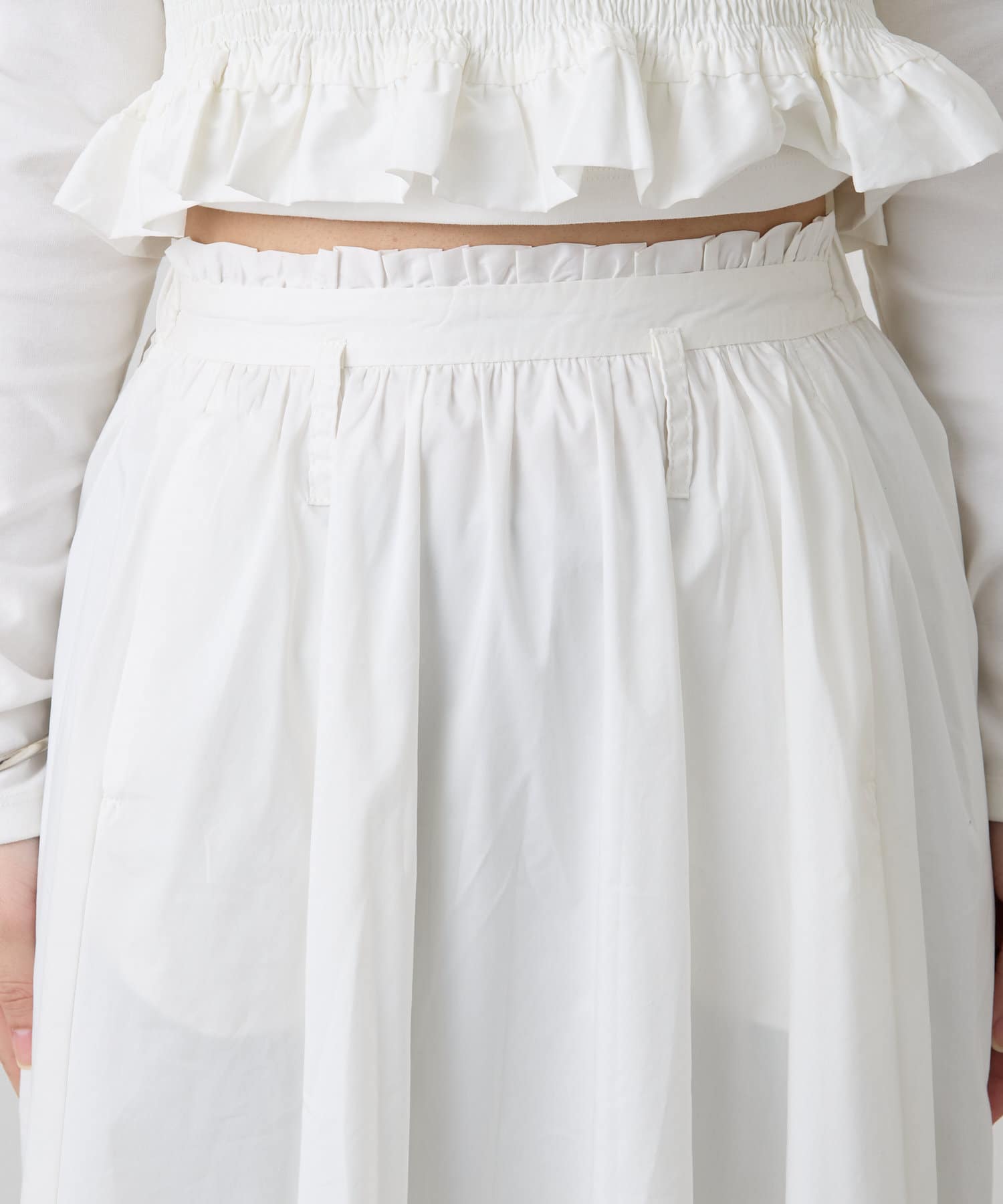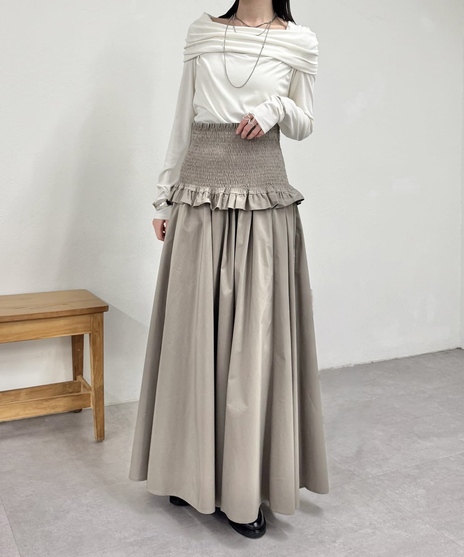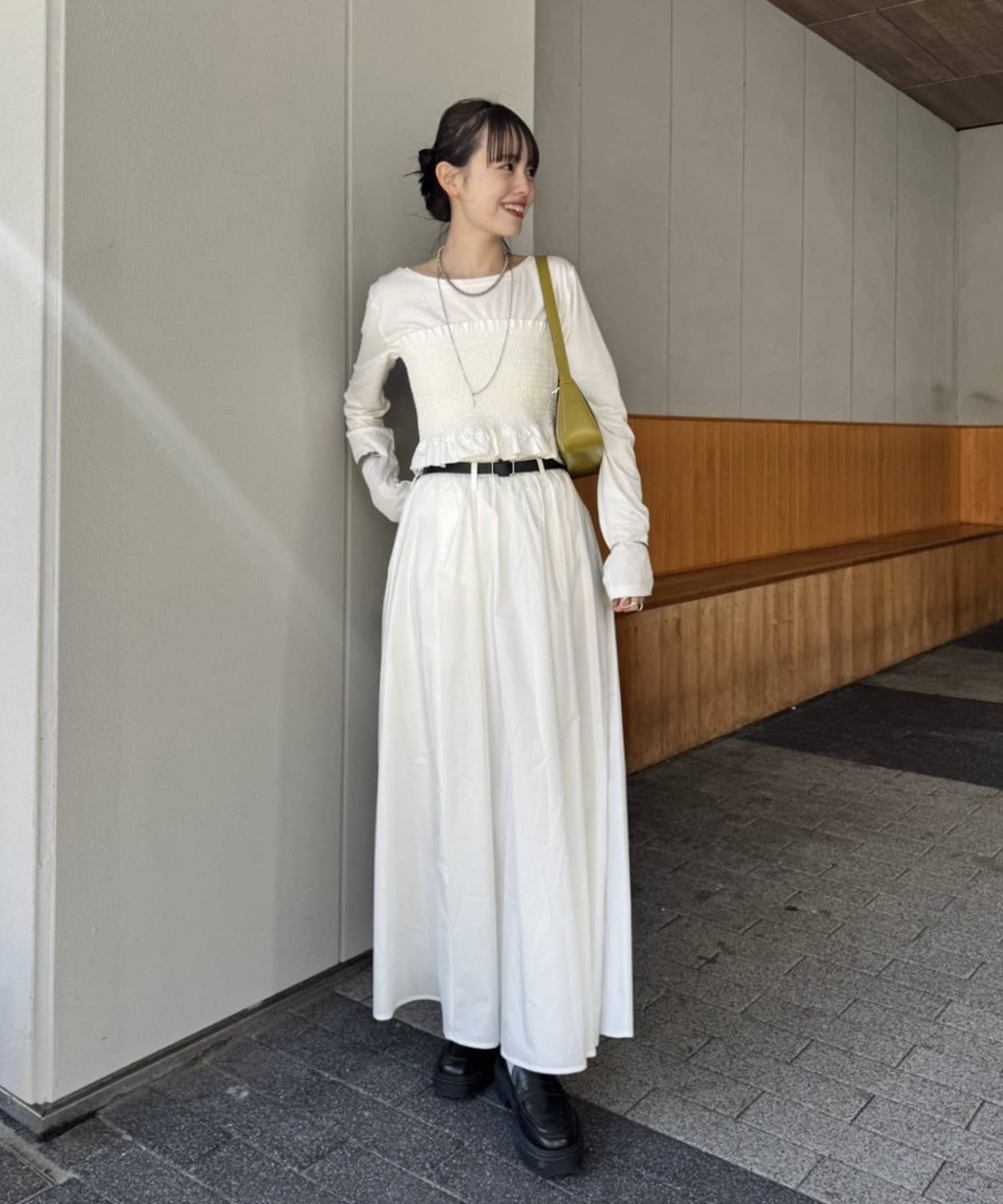 ・ビスチェをウエスト部分に付けてスカートの上から重ねるだけで変化のあるスタイリングに!