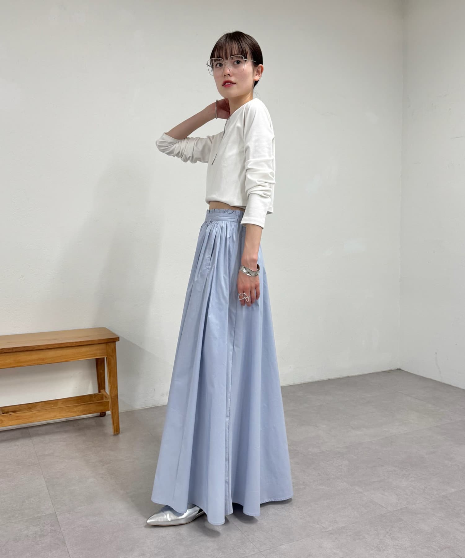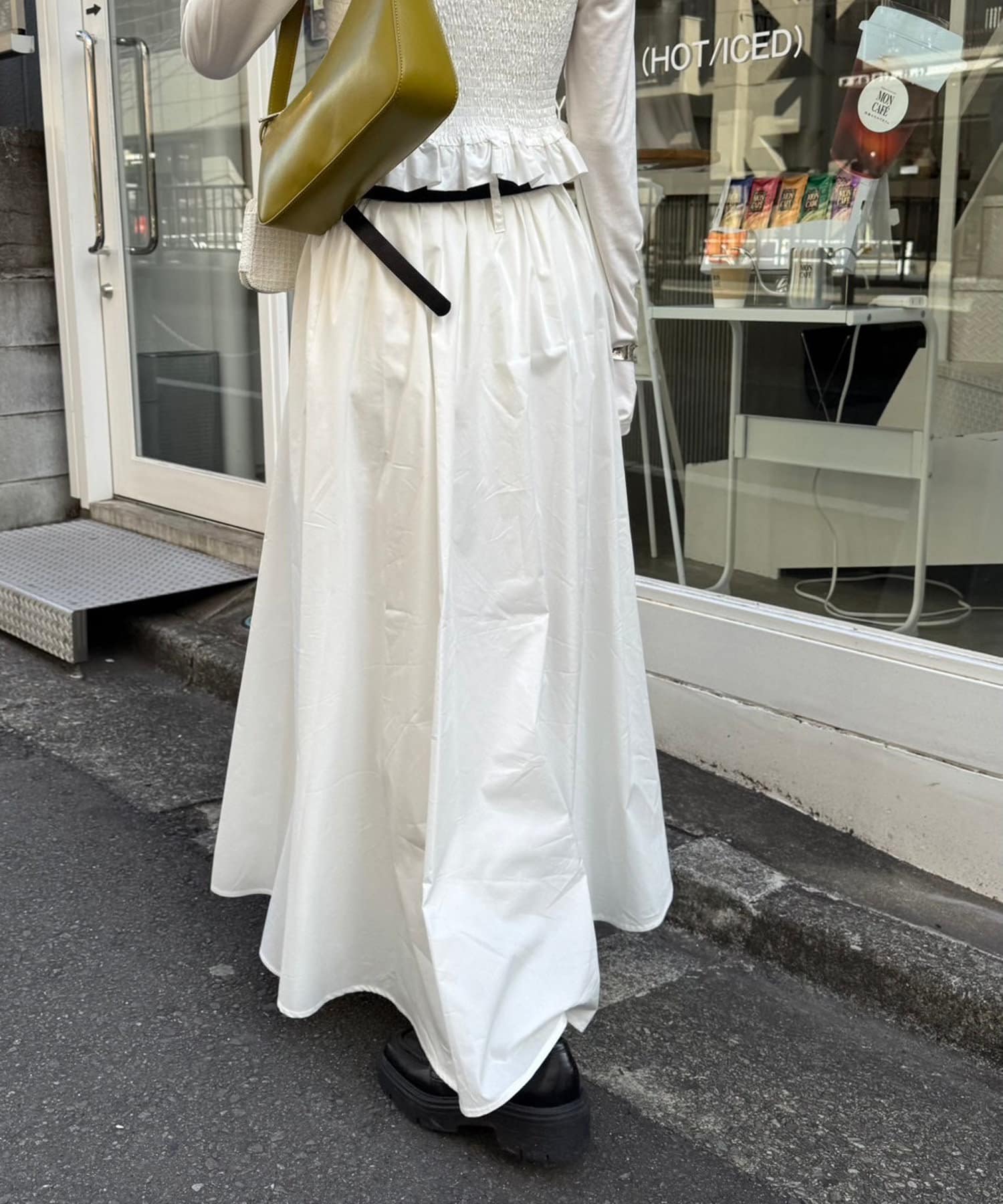 ・ベルトループが付いたAラインのスカートは程よく広がるシルエットで腰回りをすっきりと見せてくれます!