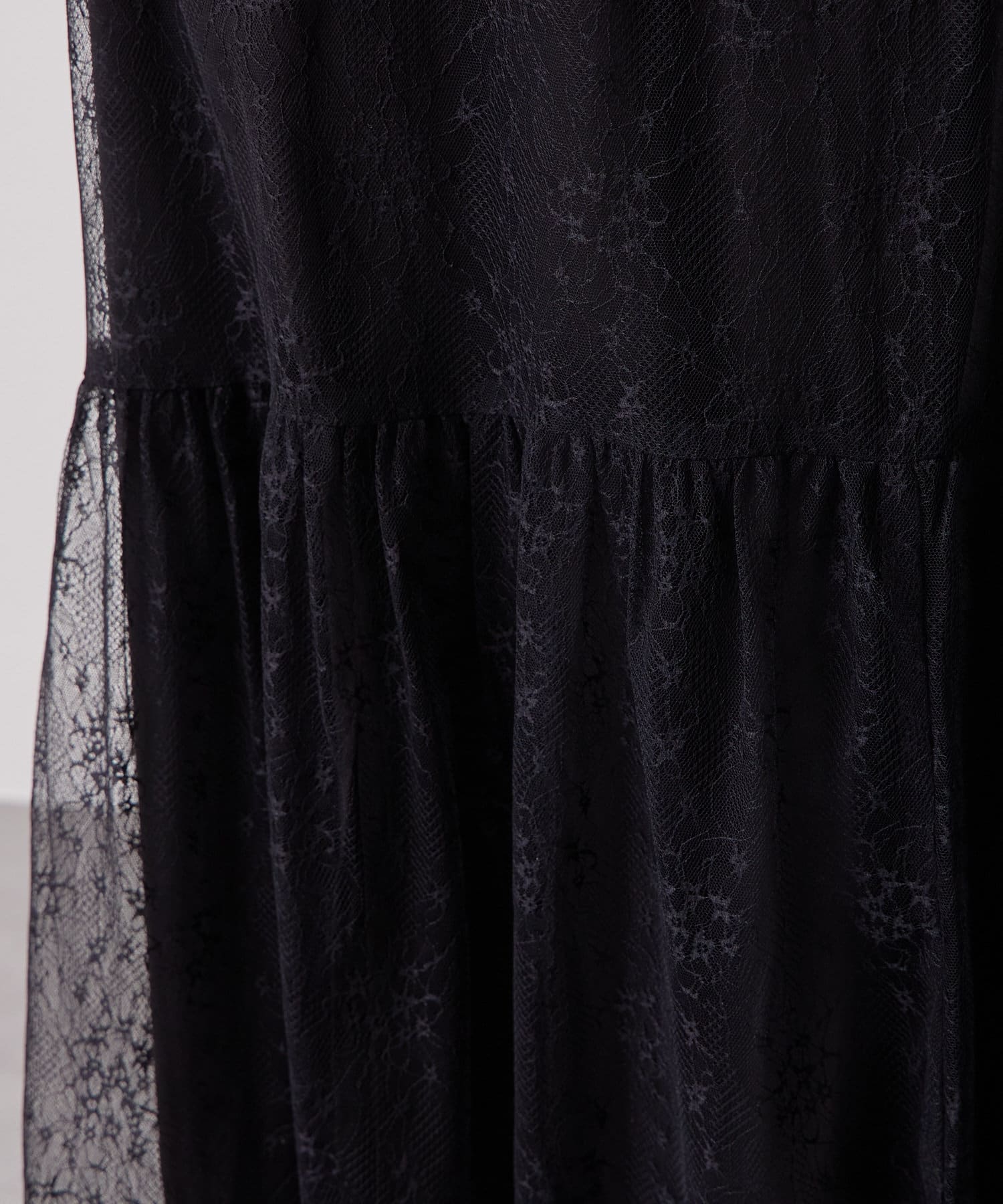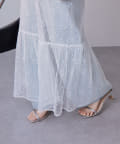 裾に向かって広がるティアードデザインが、軽やかで女性らしいシルエットを演出します。