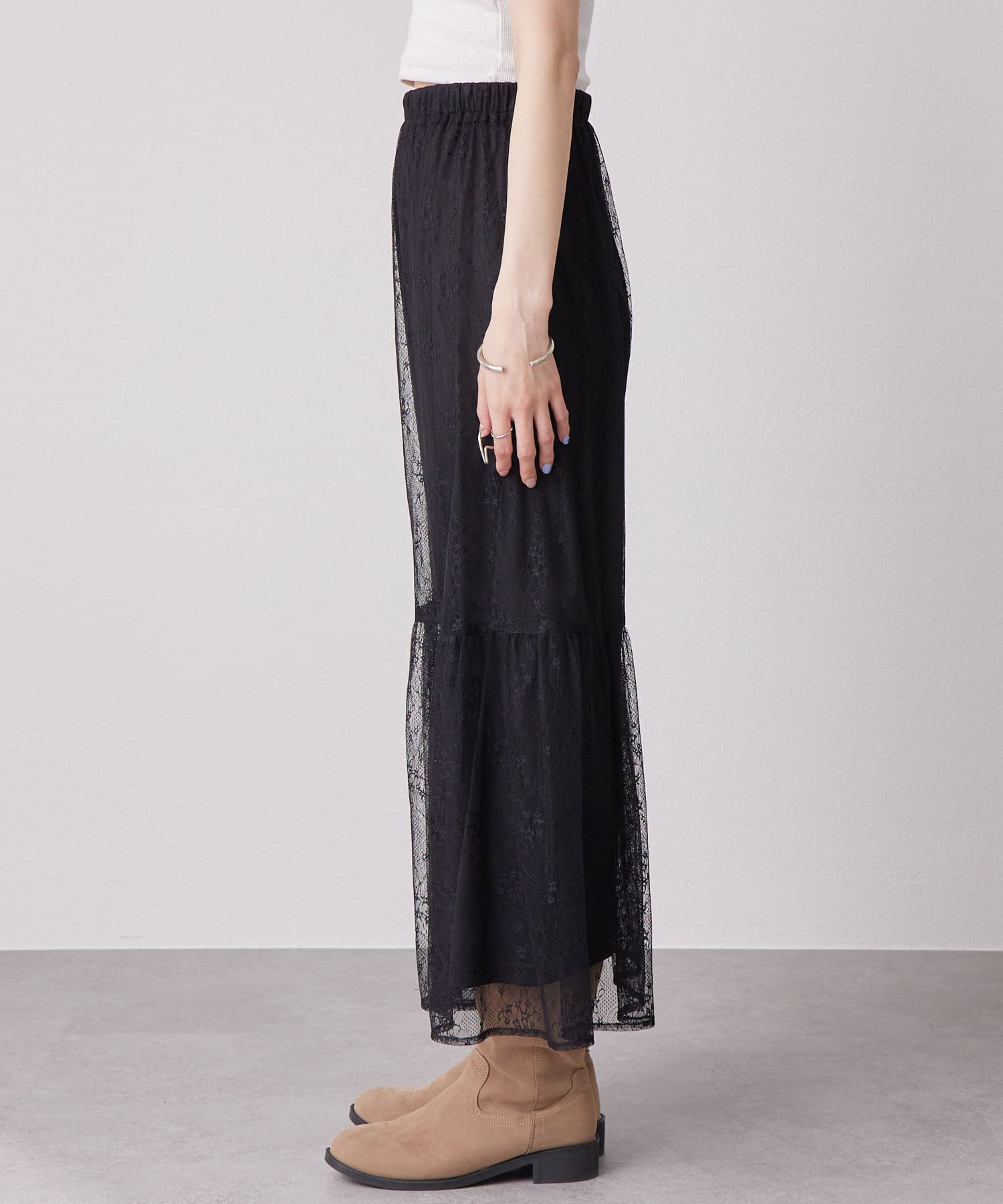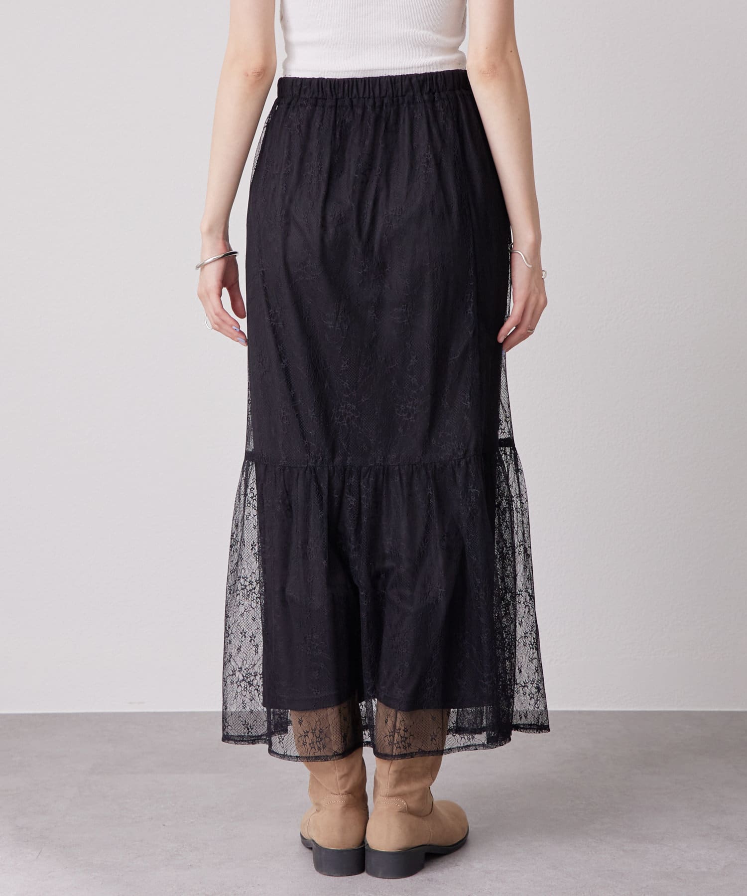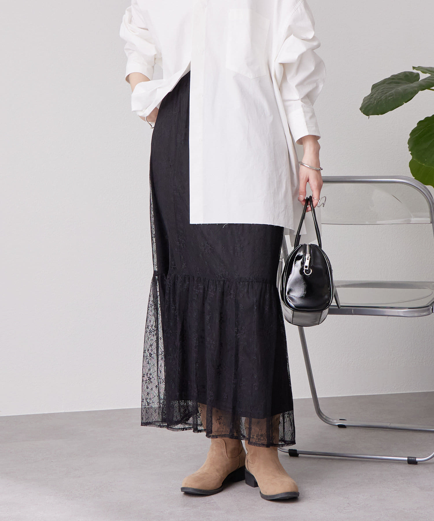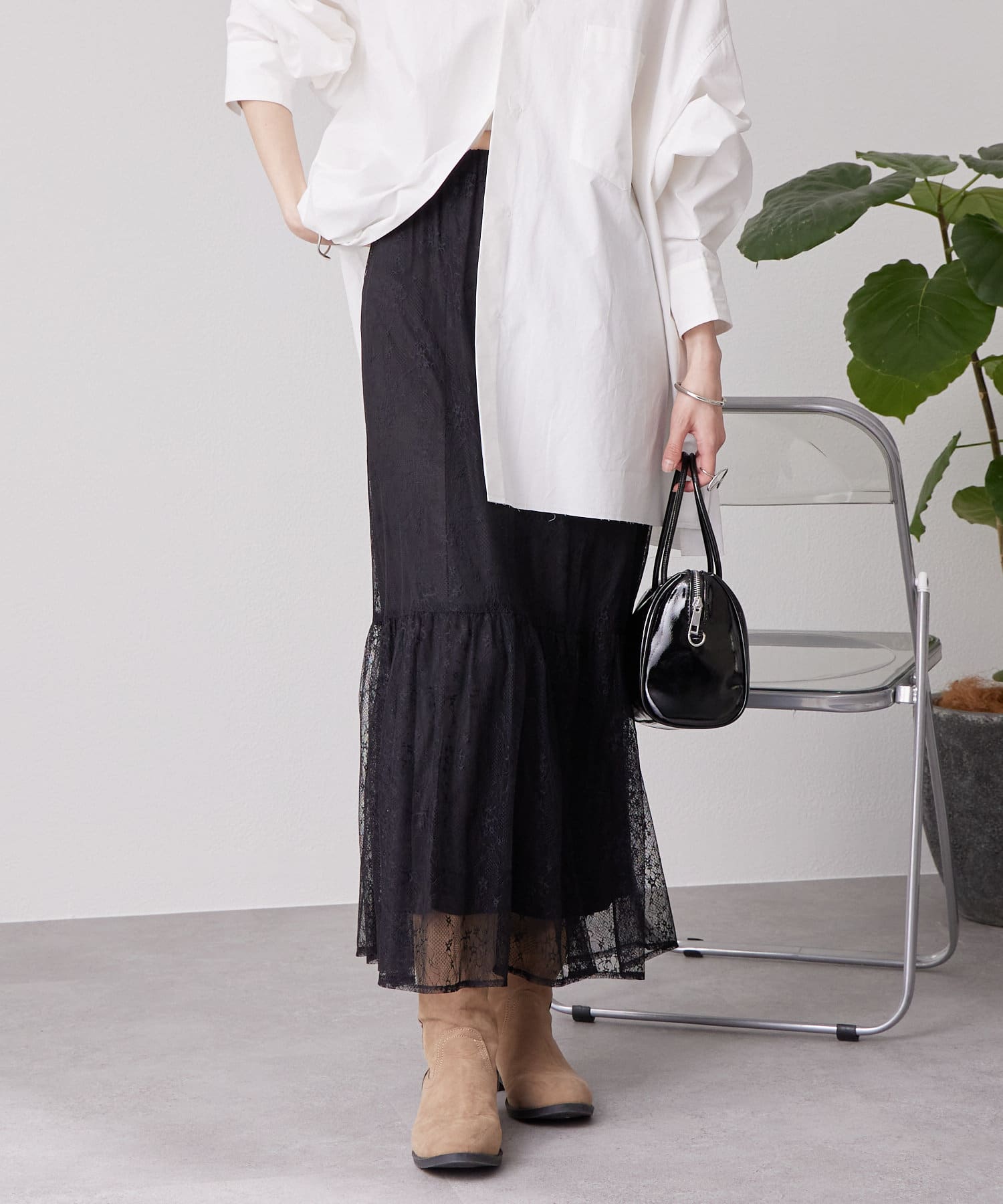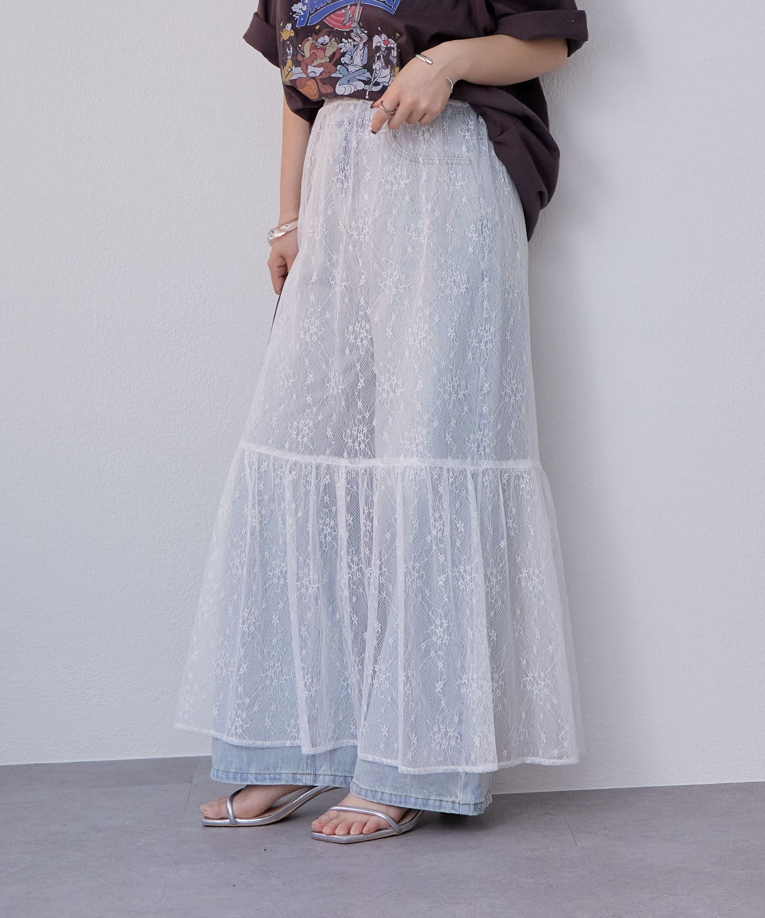 レイヤードにも◎切替えデザインのレースが可愛いロングスカートが登場!