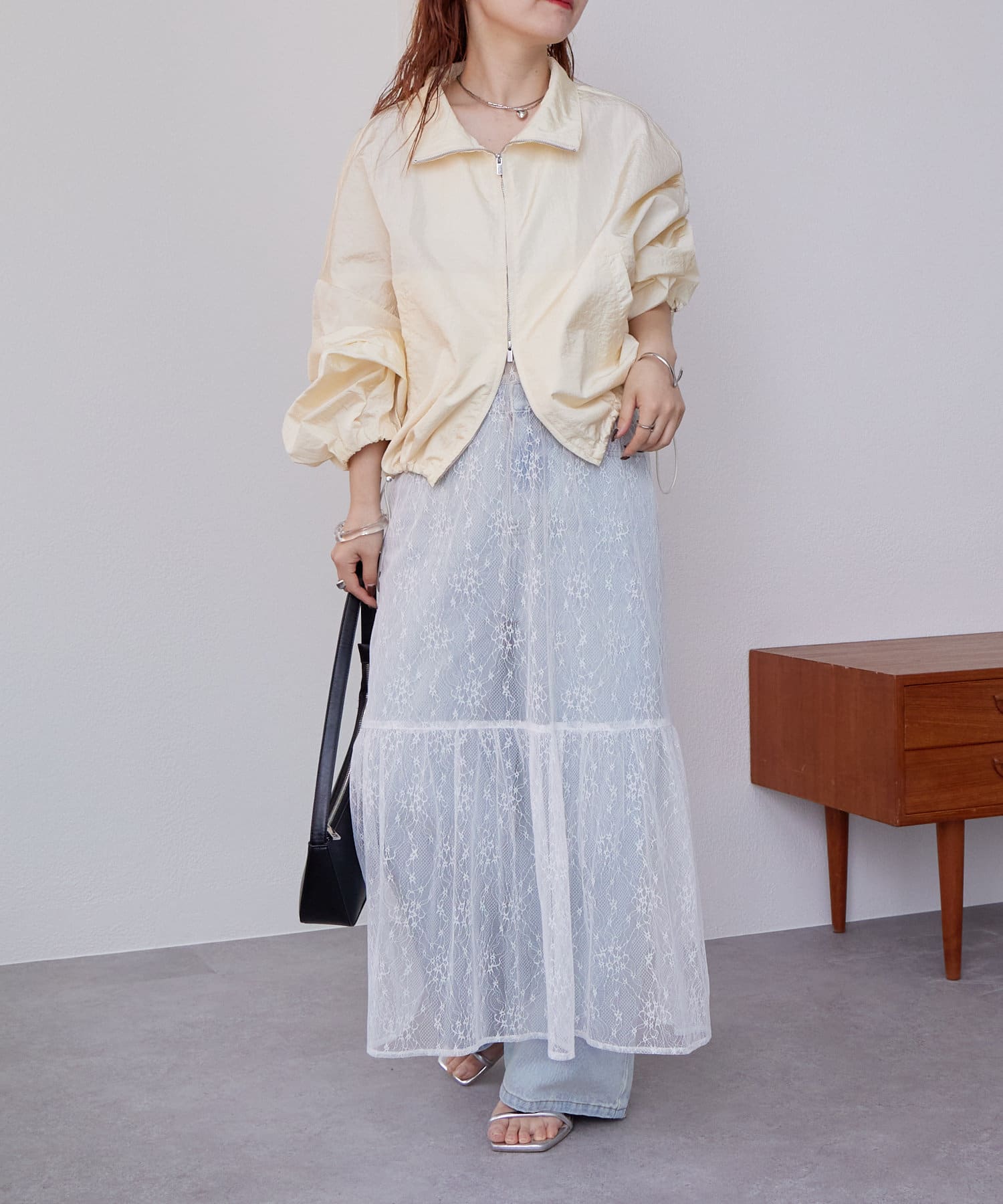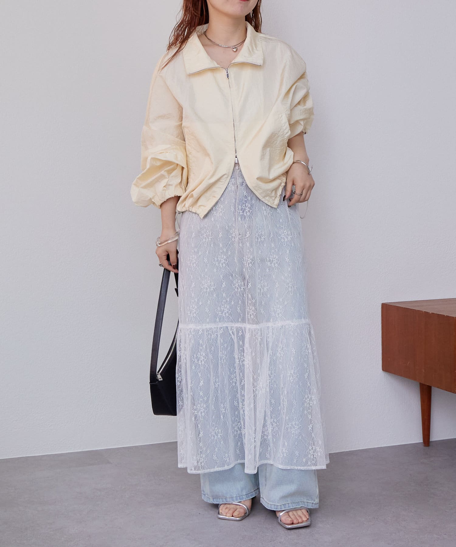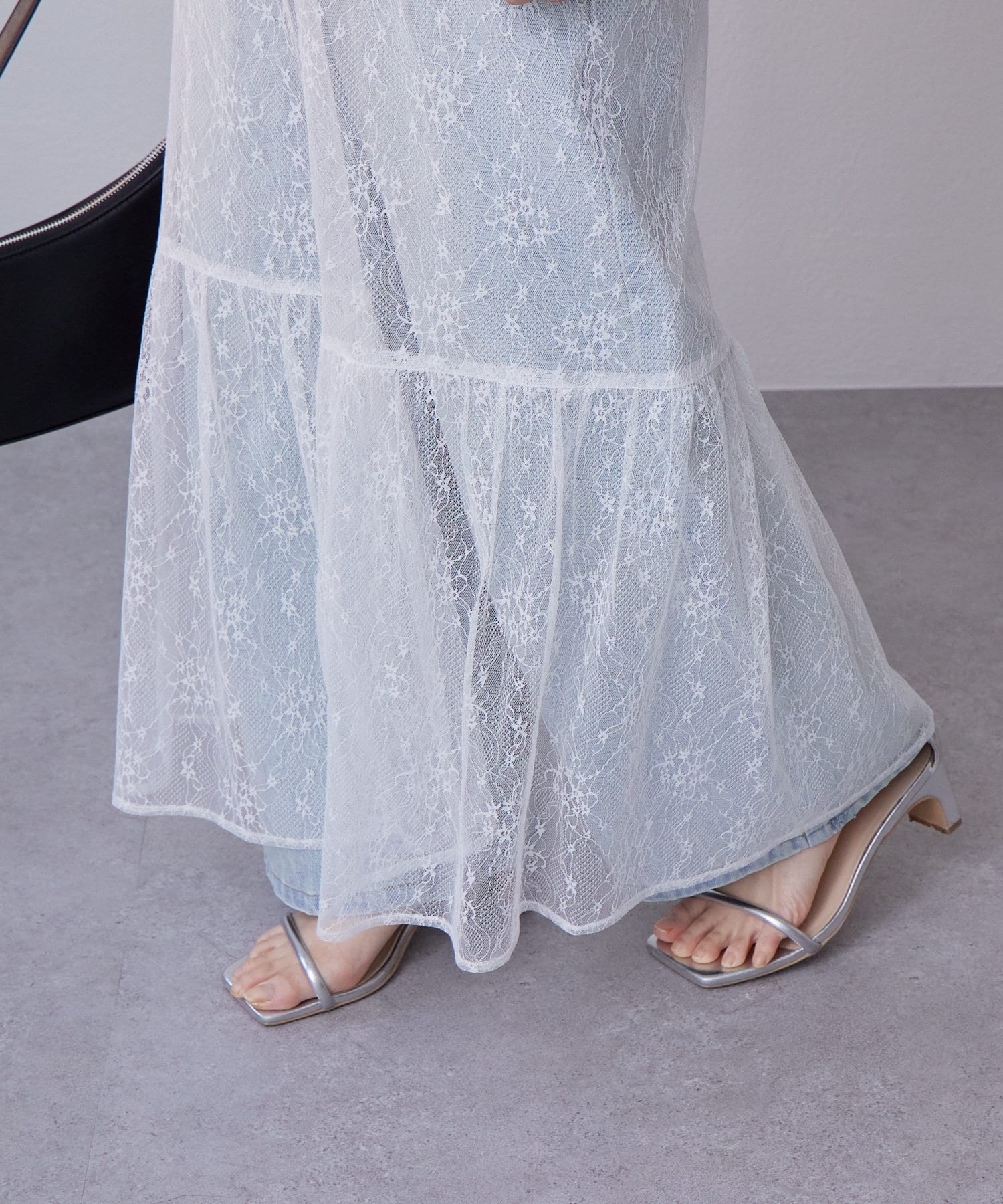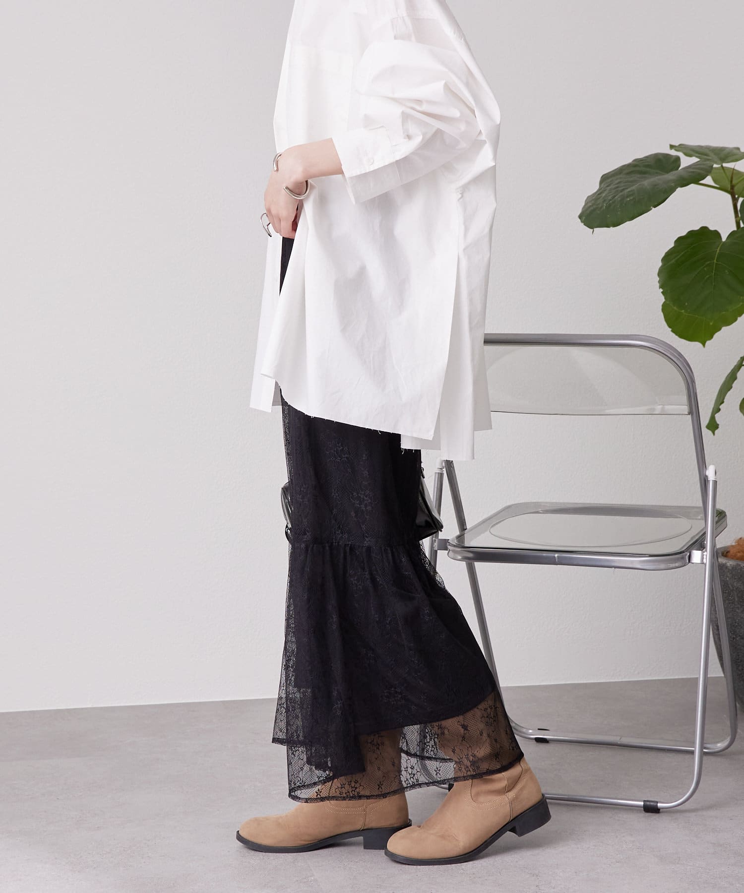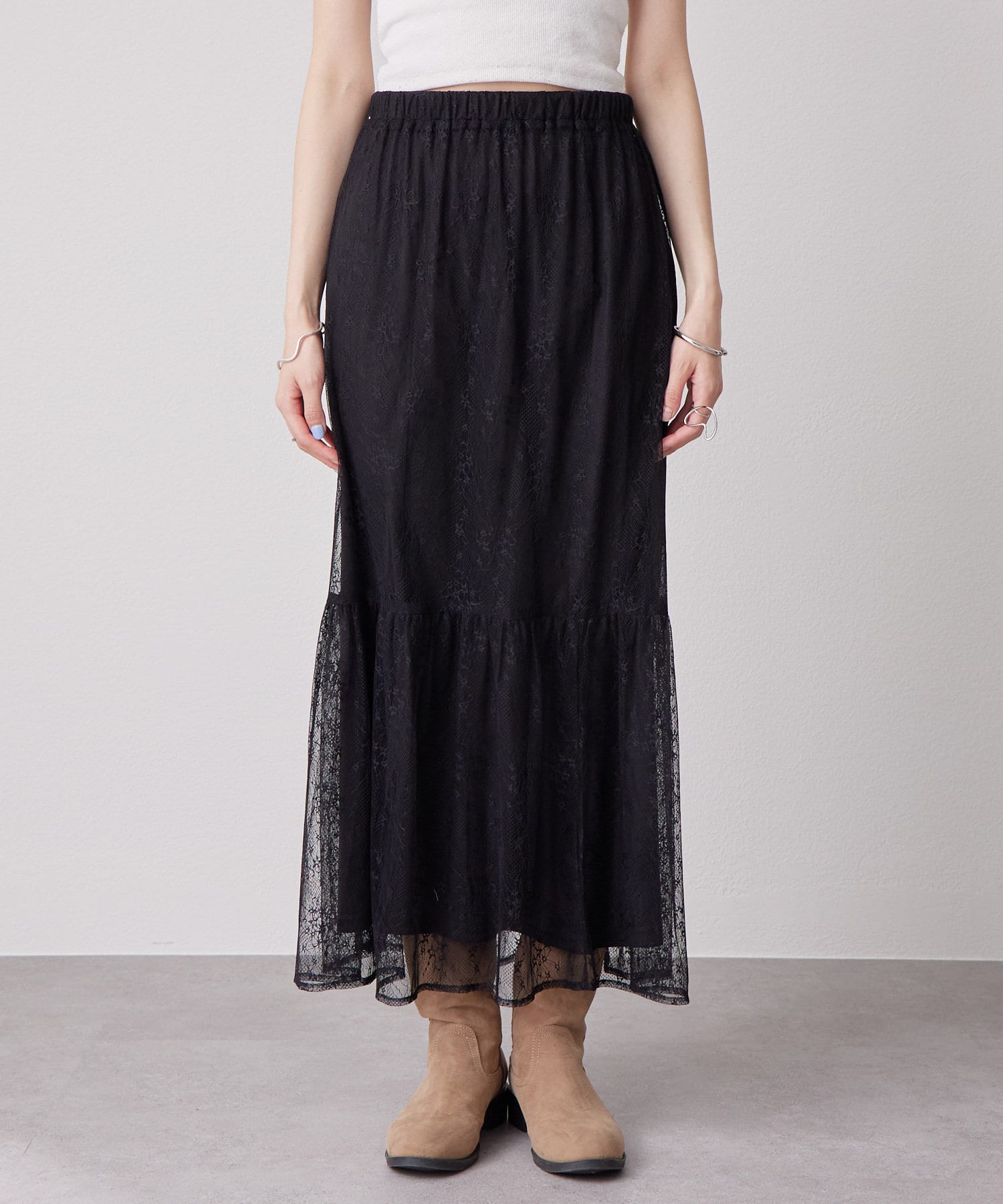 レイヤードにも◎切替えデザインのレースが可愛いロングスカートが登場!