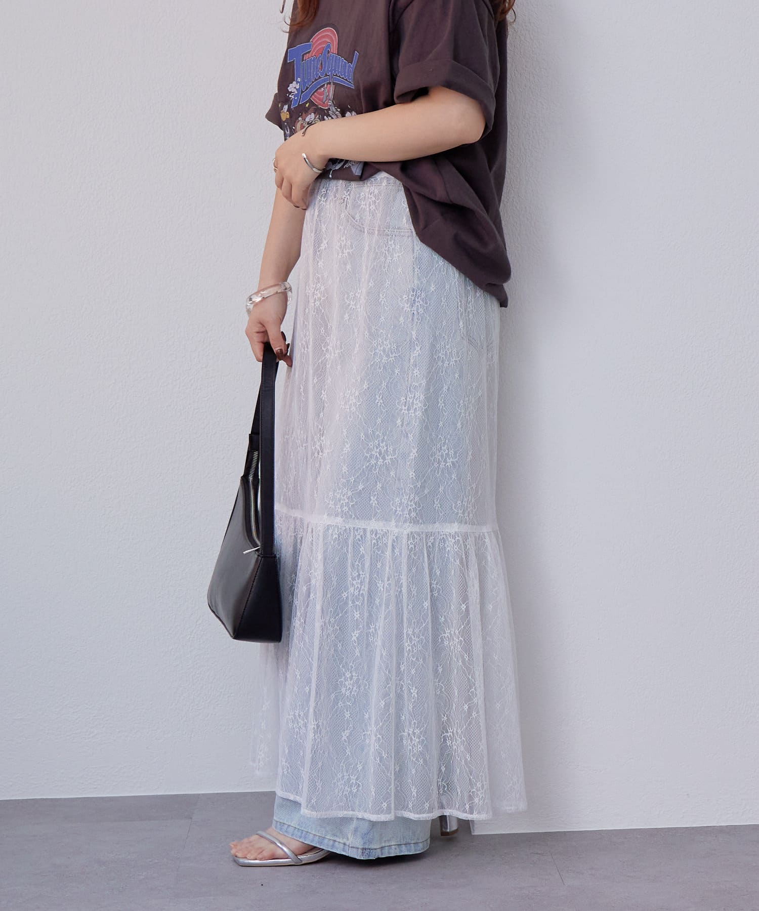 女性らしさとこなれ感を演出する上品なレーススカート。