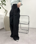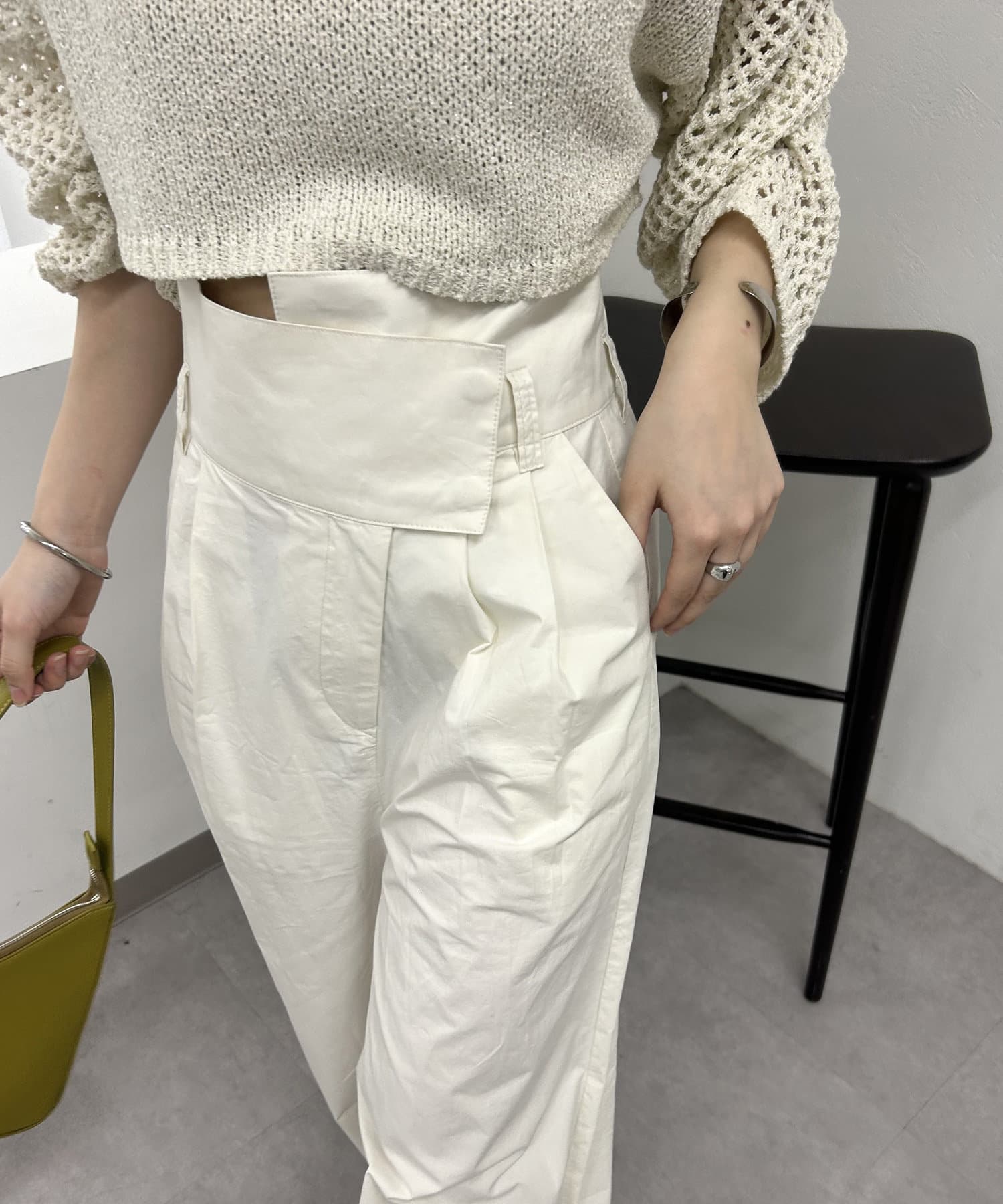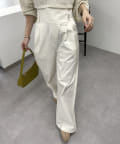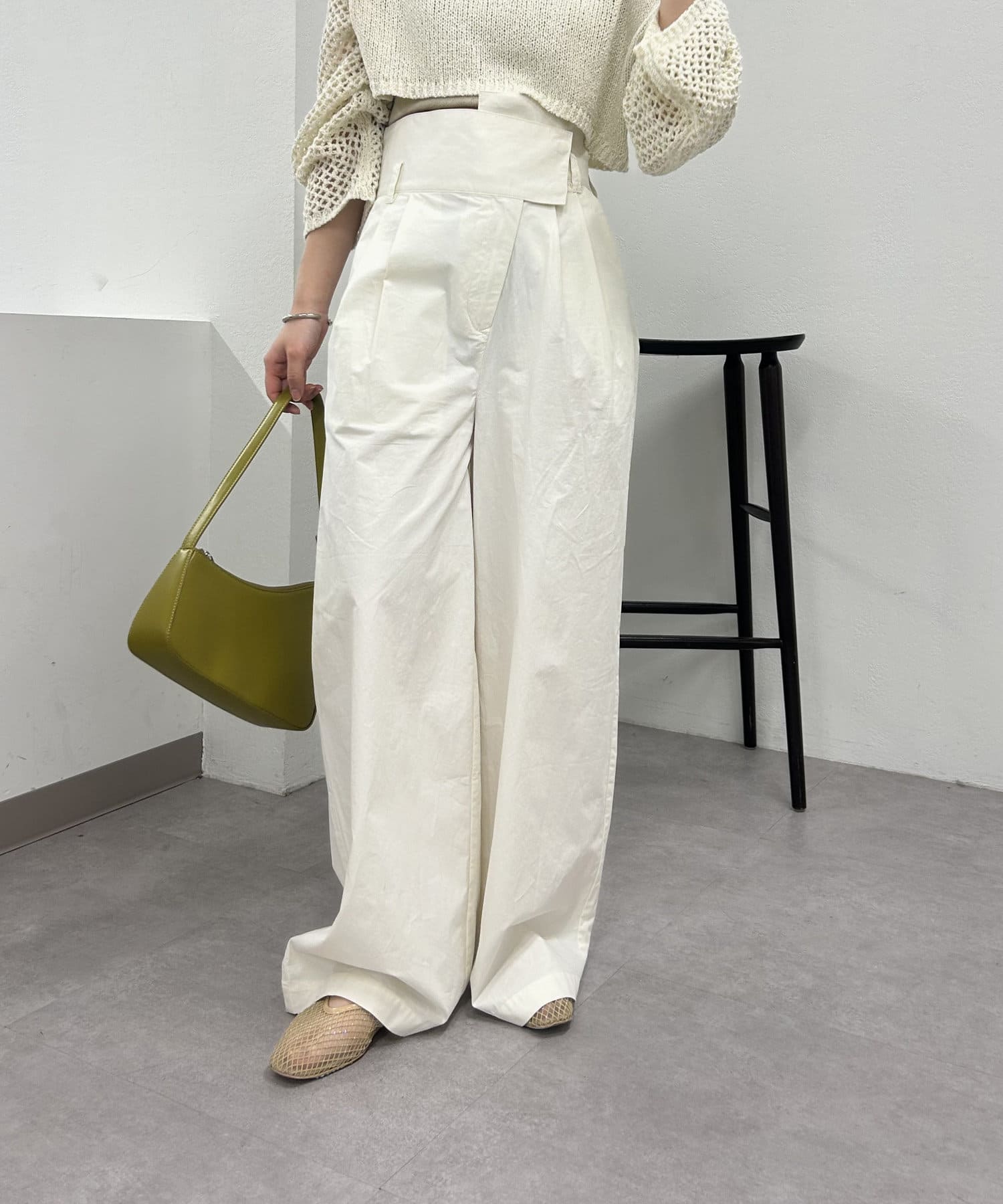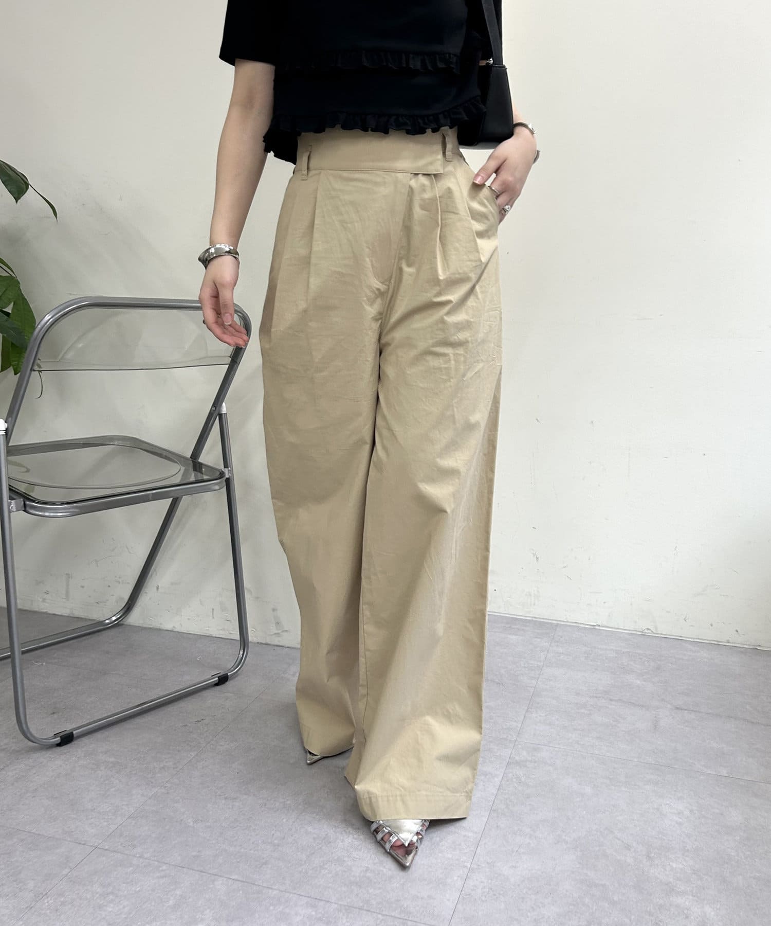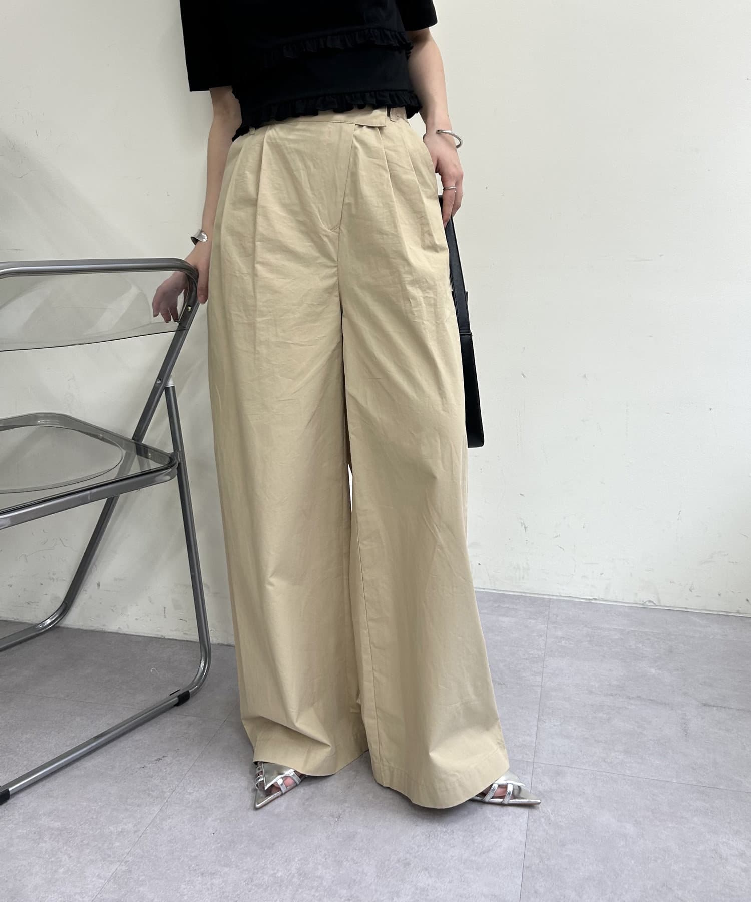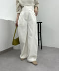 ・ウエストのタックデザインで腰回りをすっきりと見せてくれるパンツ。