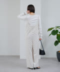 デコルテ周りが見えるトップス合わせで、抜け感のあるスタイリングに。