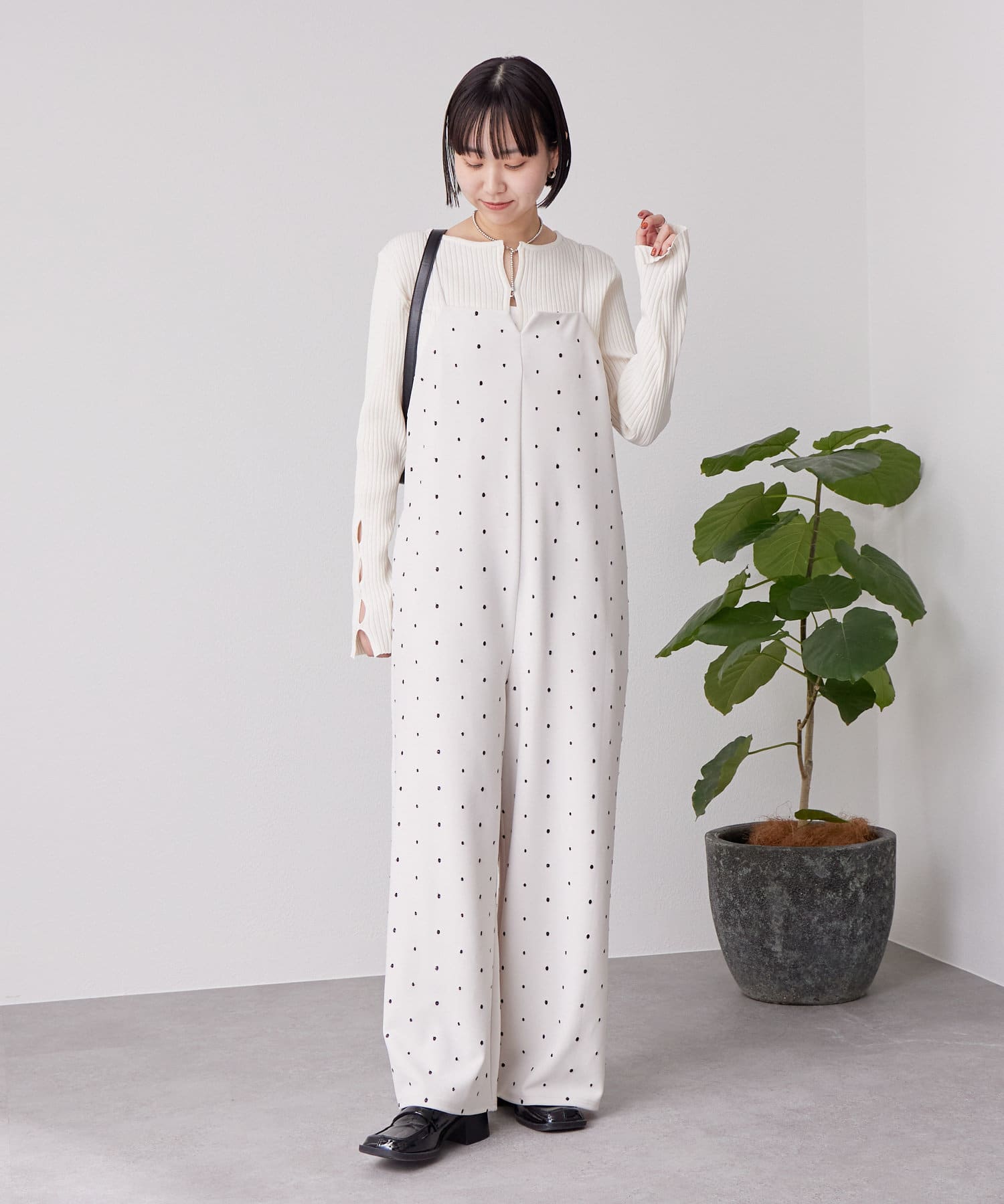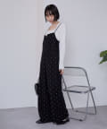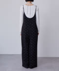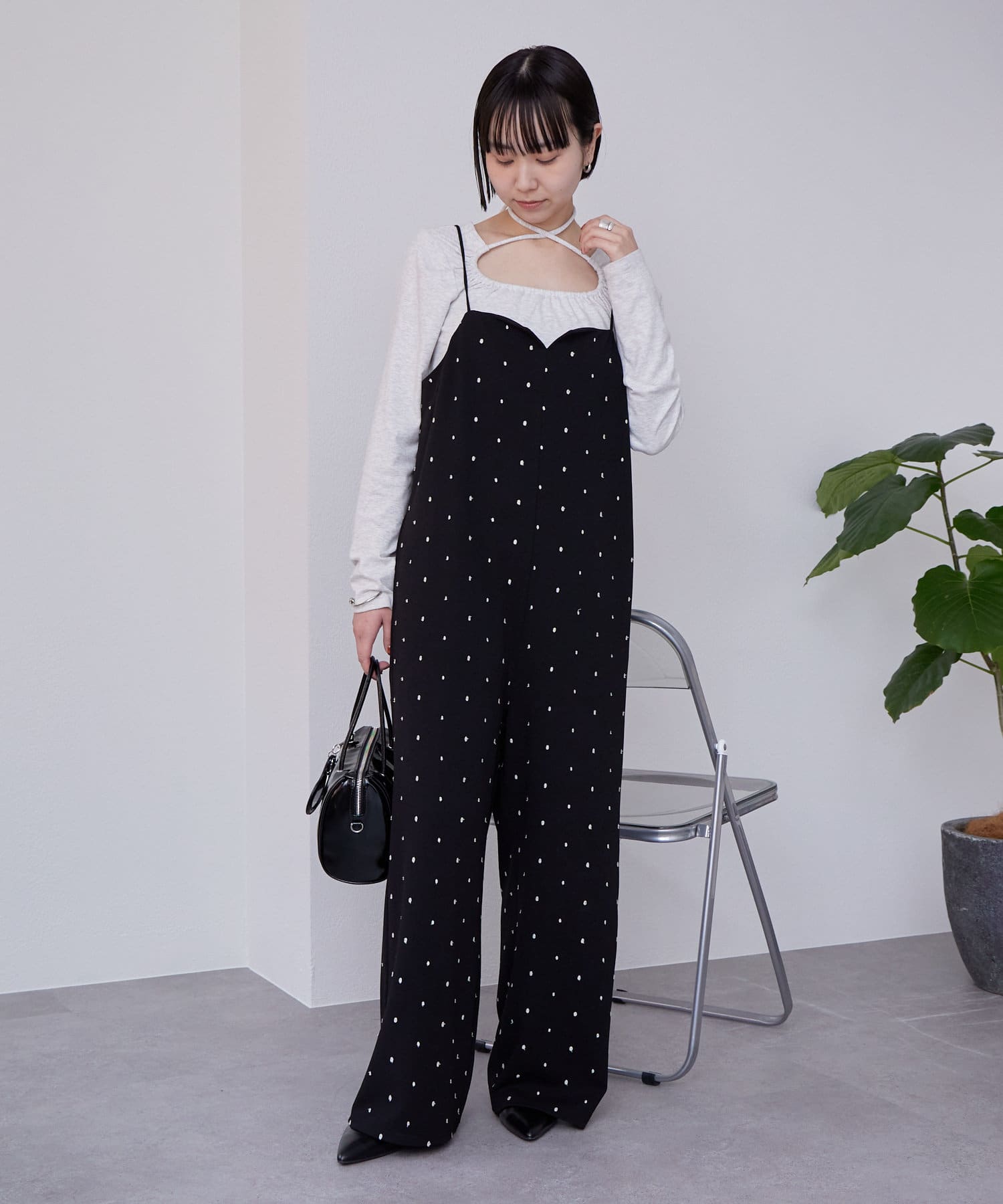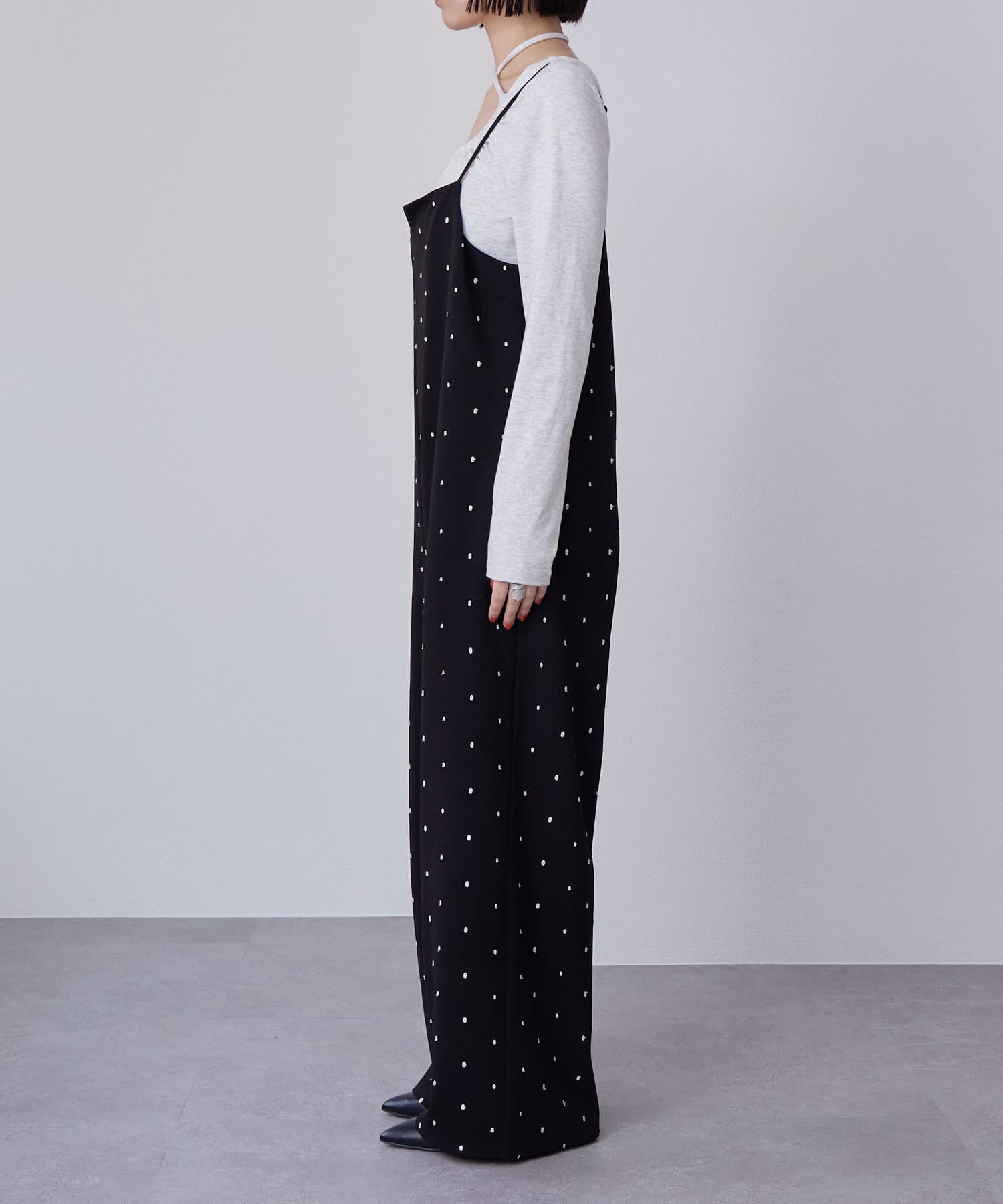 シンプルなデザインながら、華やかでドット柄の刺繍が魅力的なサロペット。