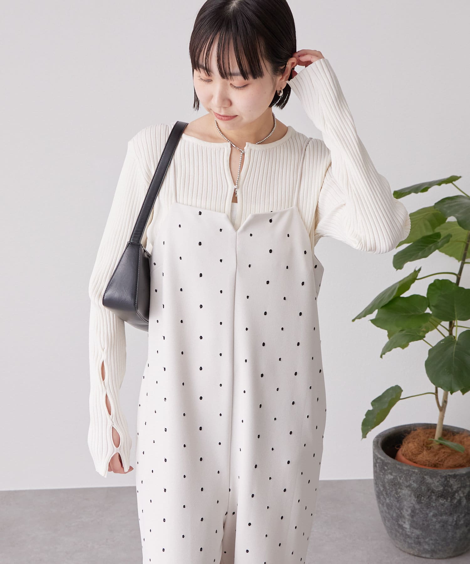 ドット柄の刺繍デザインが可愛いお洒落見えサロペットが登場!